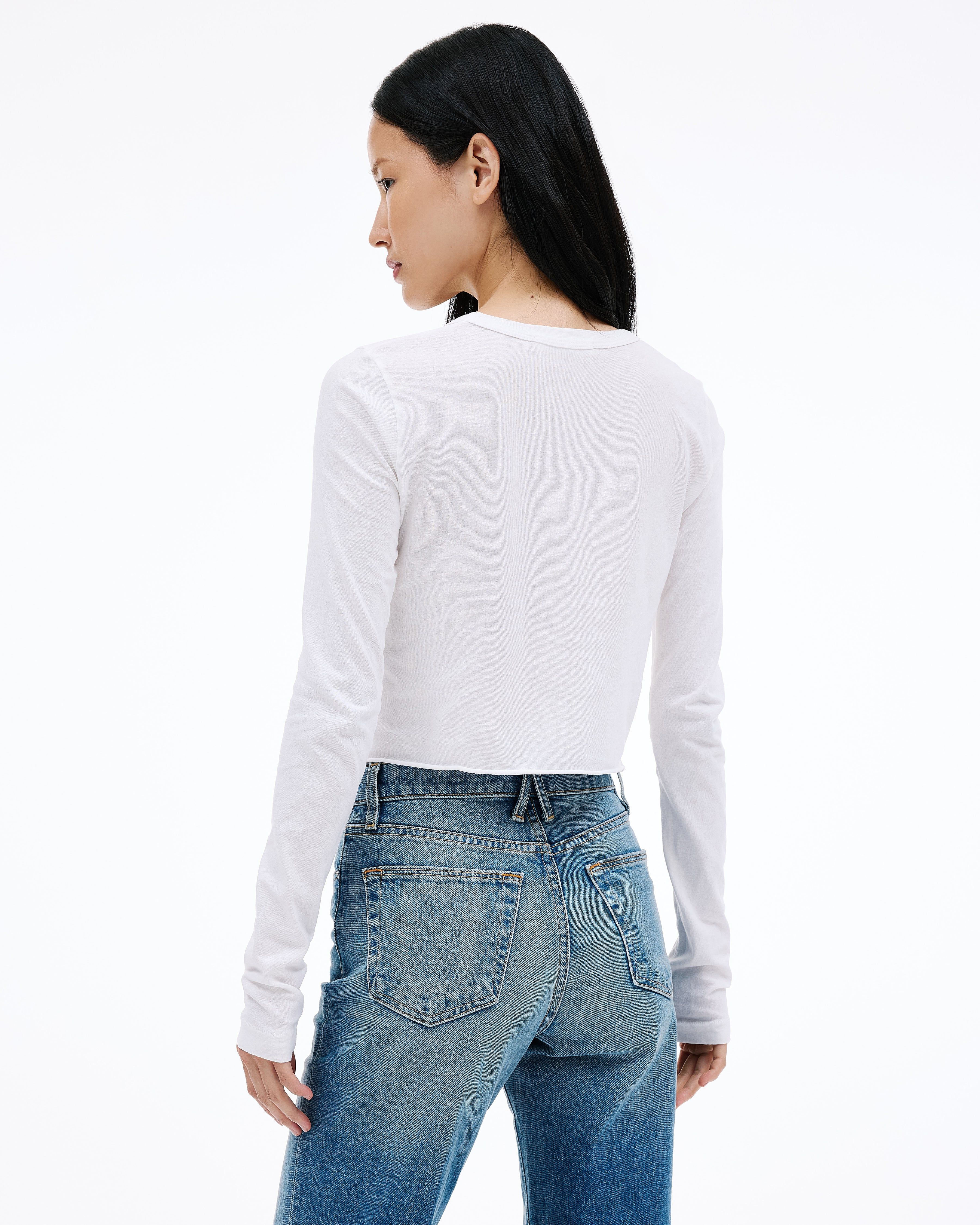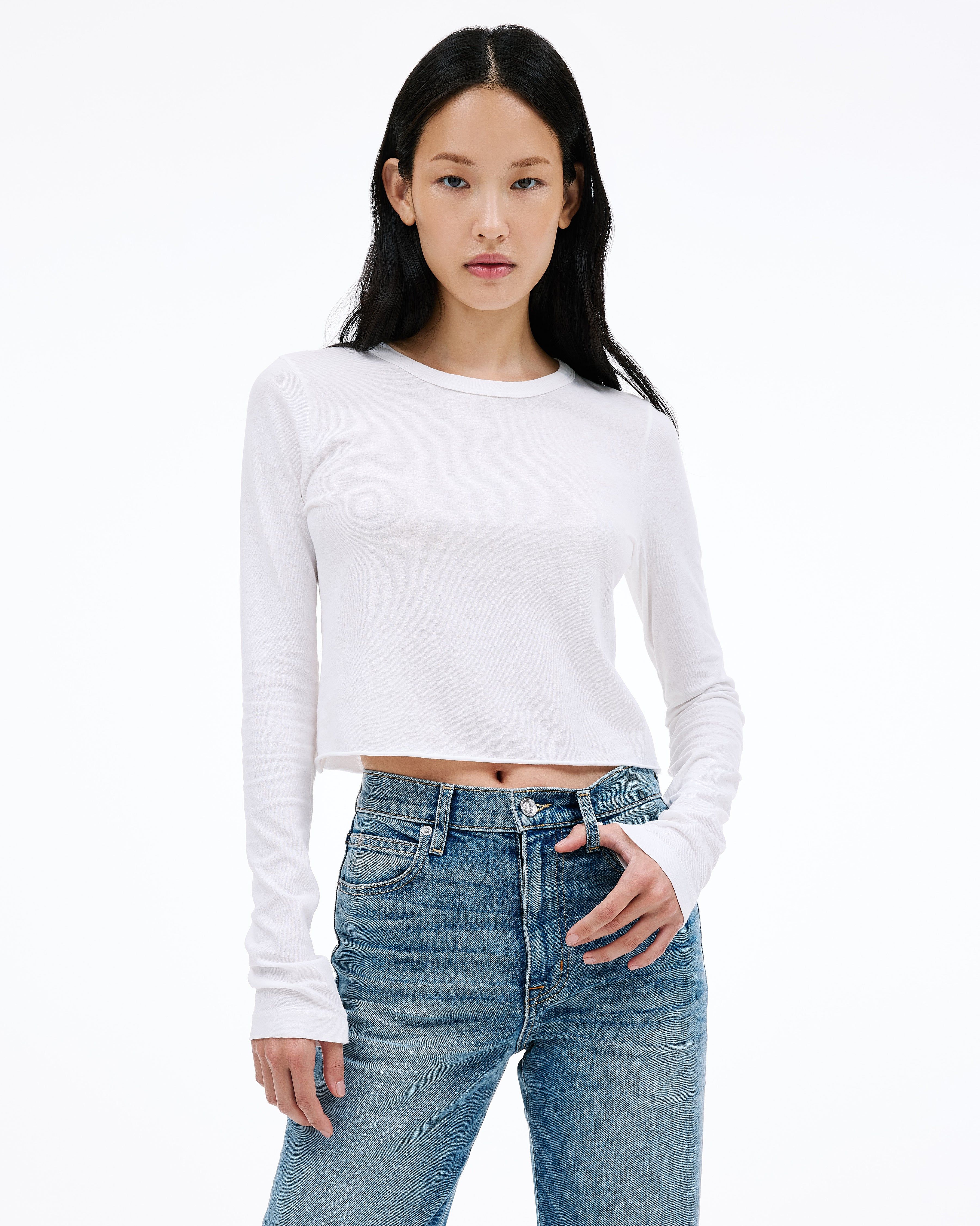 Baby Long Sleeve crafted from a unique light weight open-end fabric for an authentic vintage look and feel. Designed with a cropped length and hand finished with a raw hem detail.
