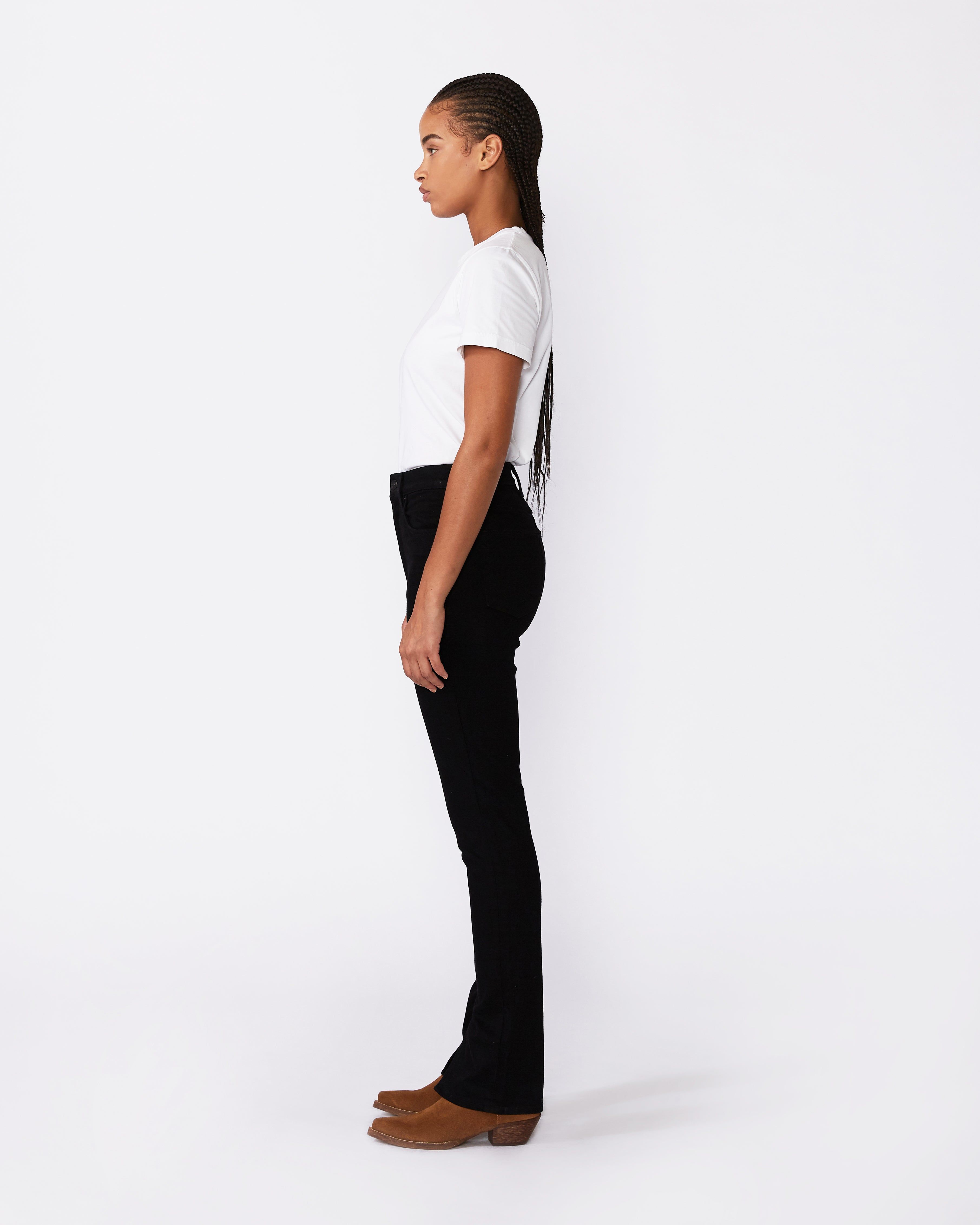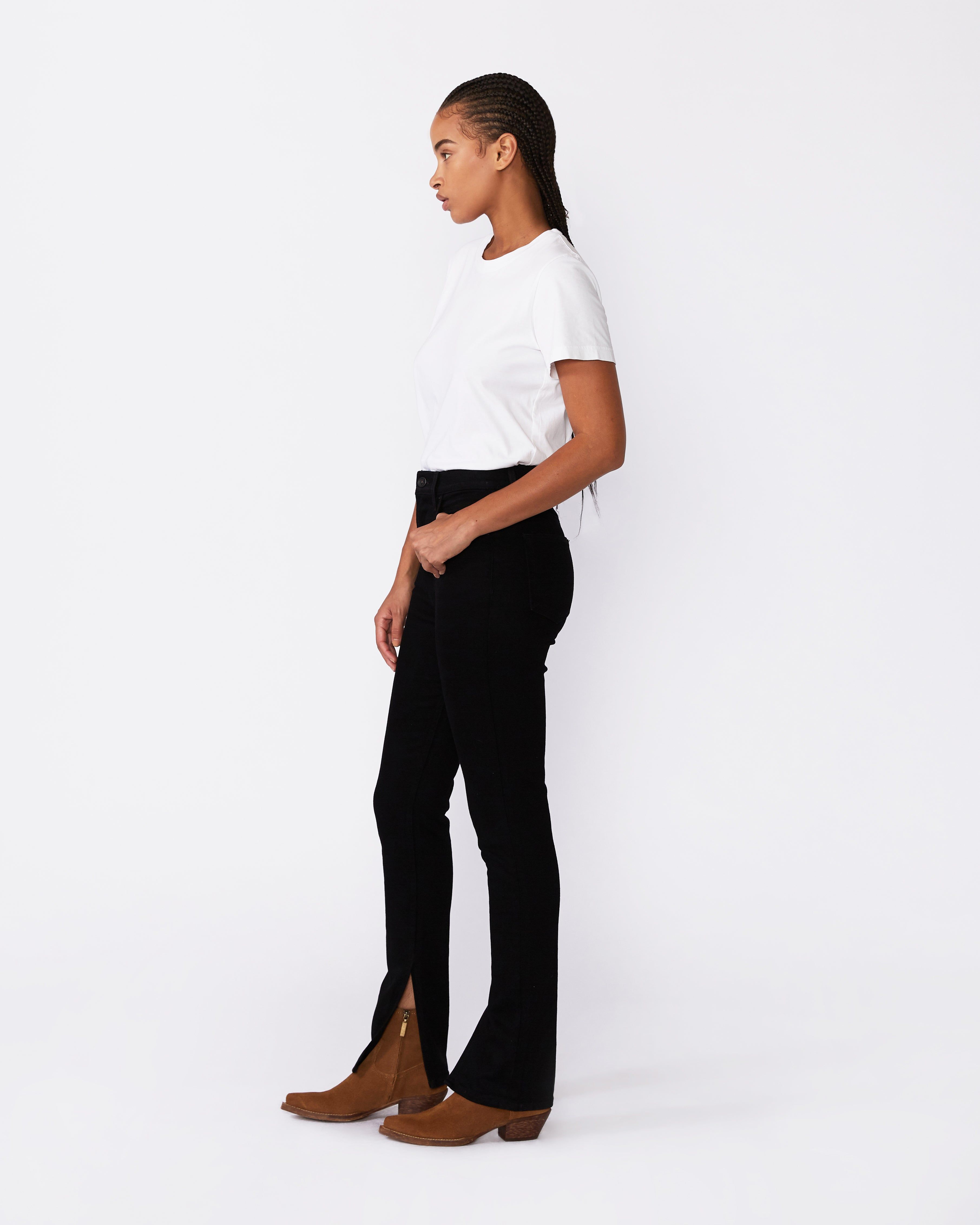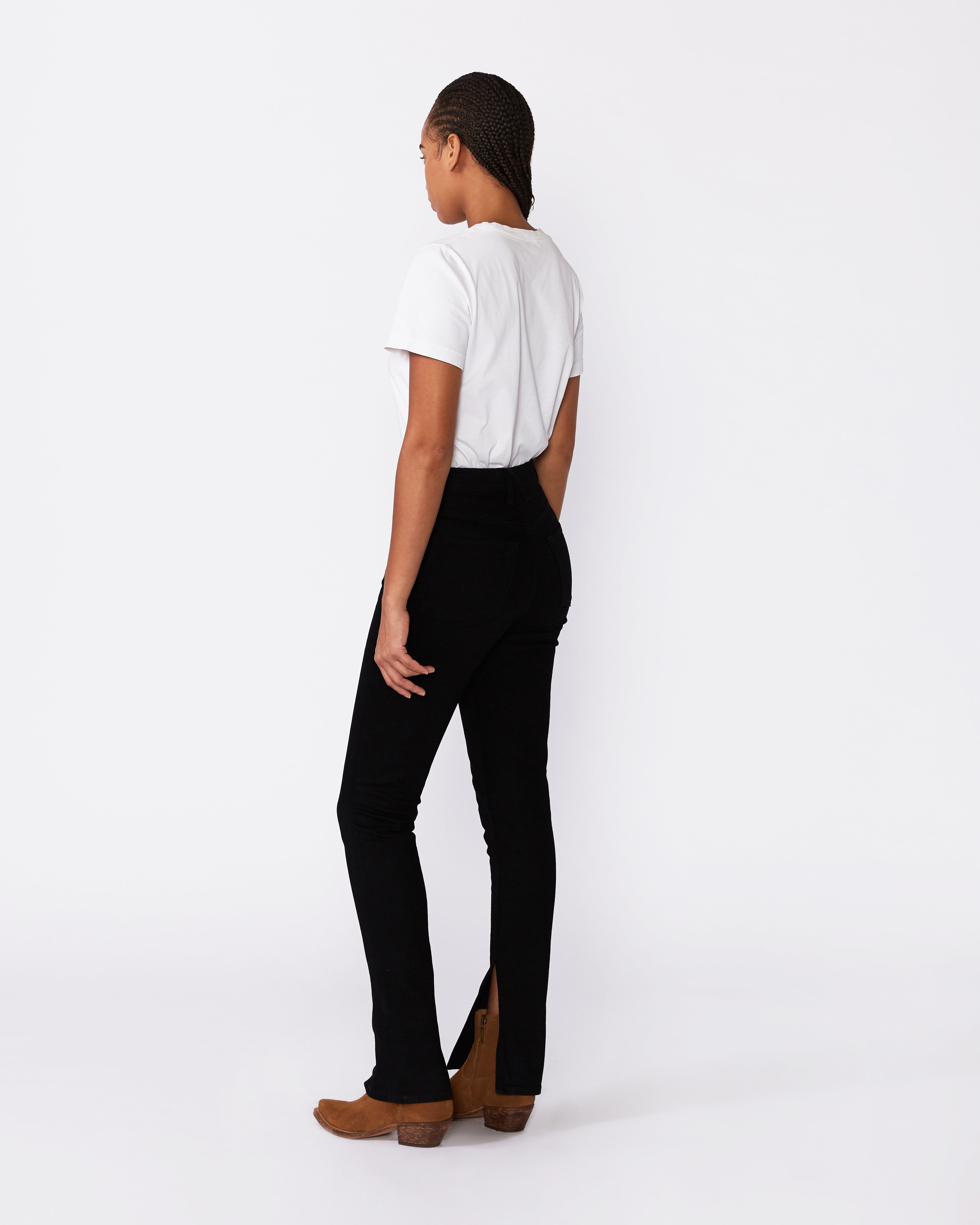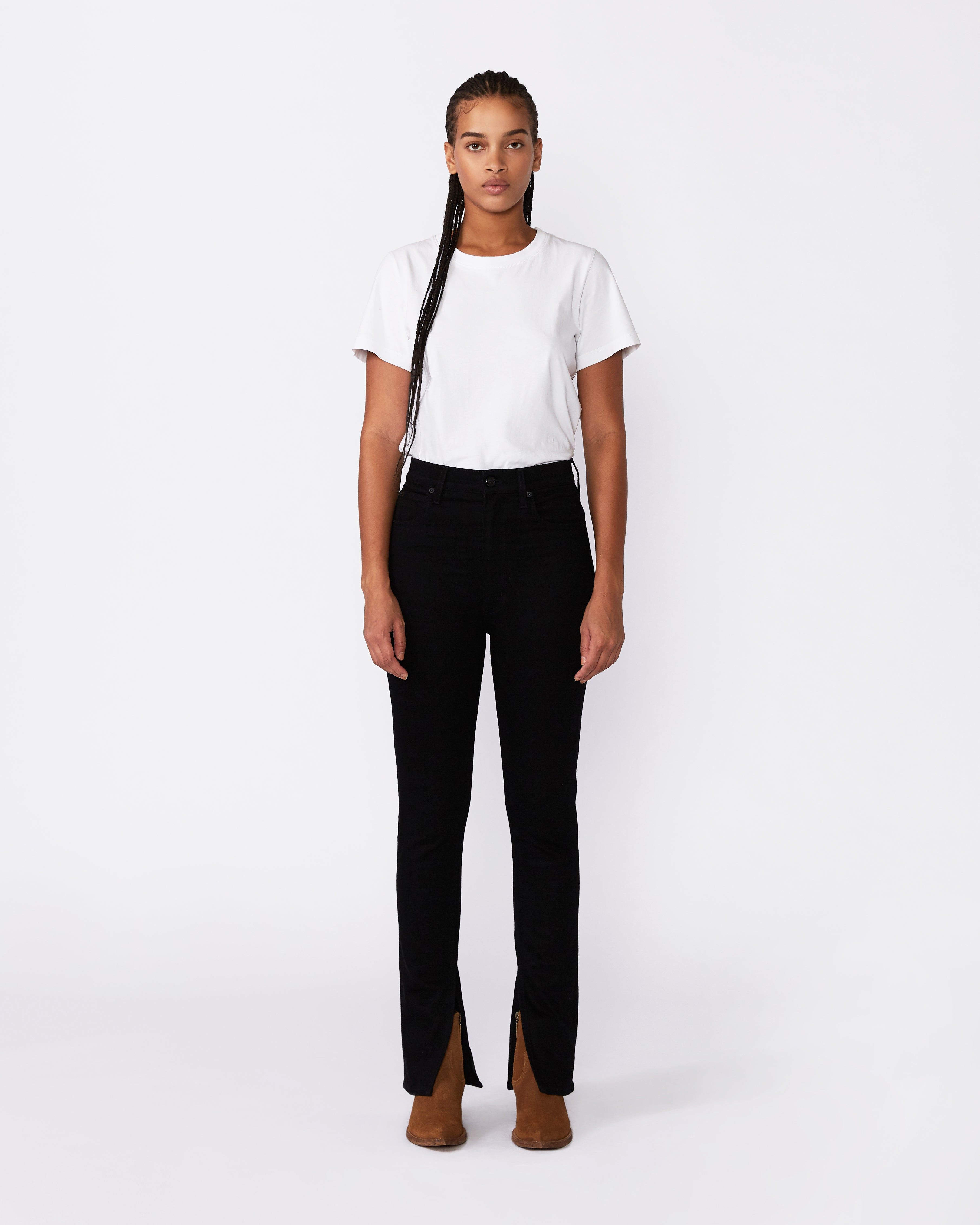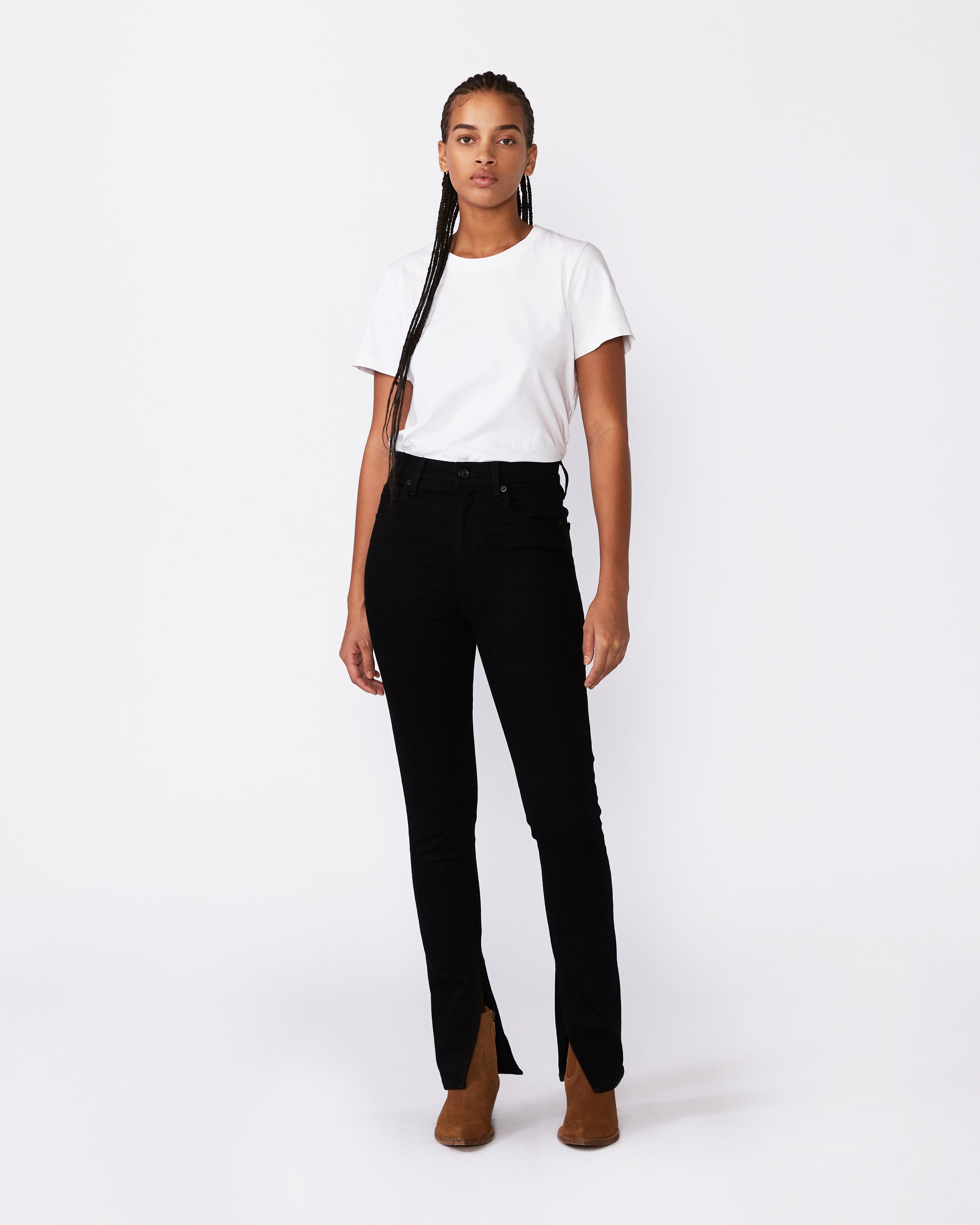 Beatnik Split hem offers an especially high-waist. Crafted from a luxuriously soft pure cotton fabric, this slim silhouette is designed to fit and flatter while elongating the legs.