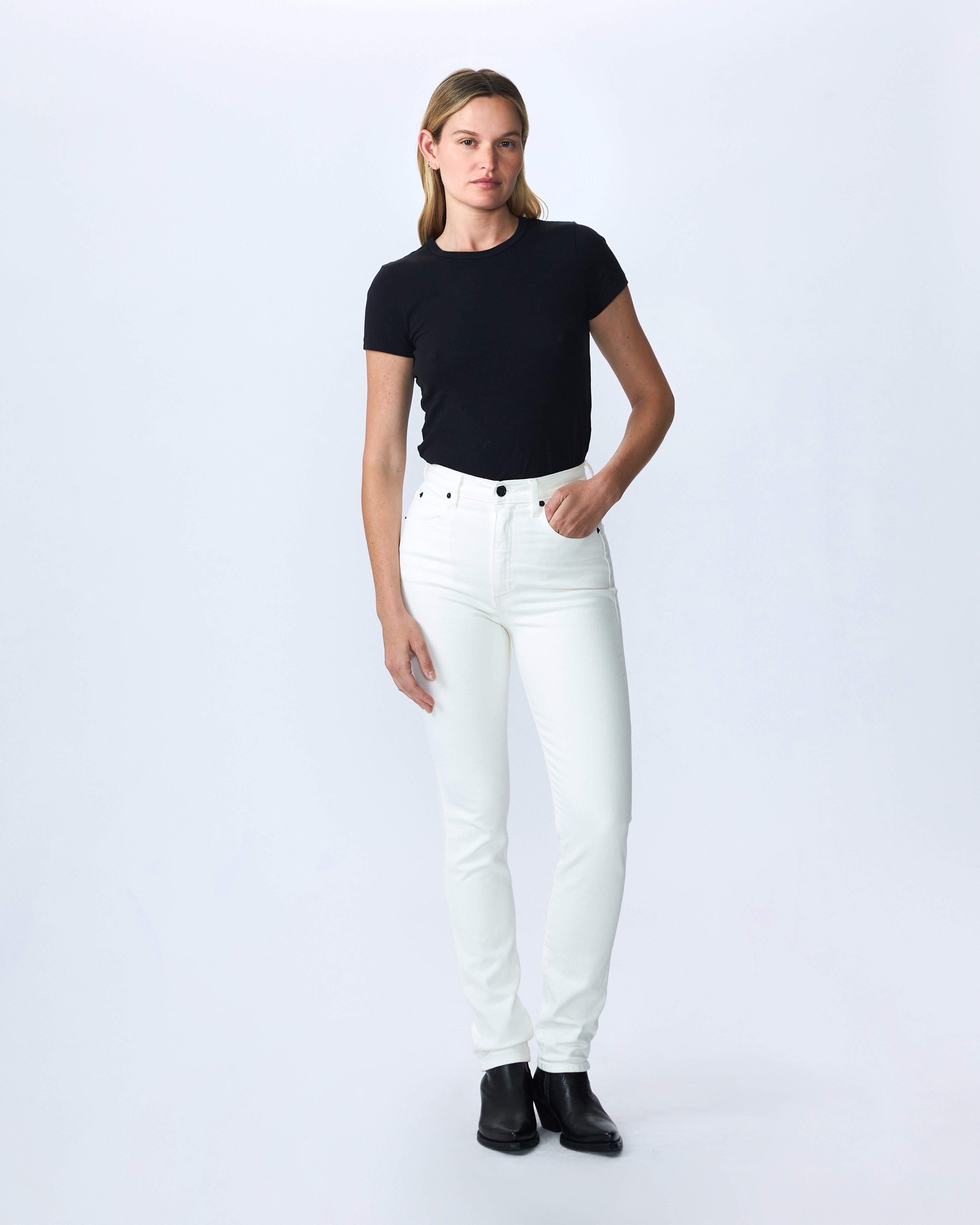 Beatnik offers an especially high-waist. This slim silhouette is designed to fit and flatter while elongating the legs. Quality and craftsmanship are at the heart of SLVRLAKE.