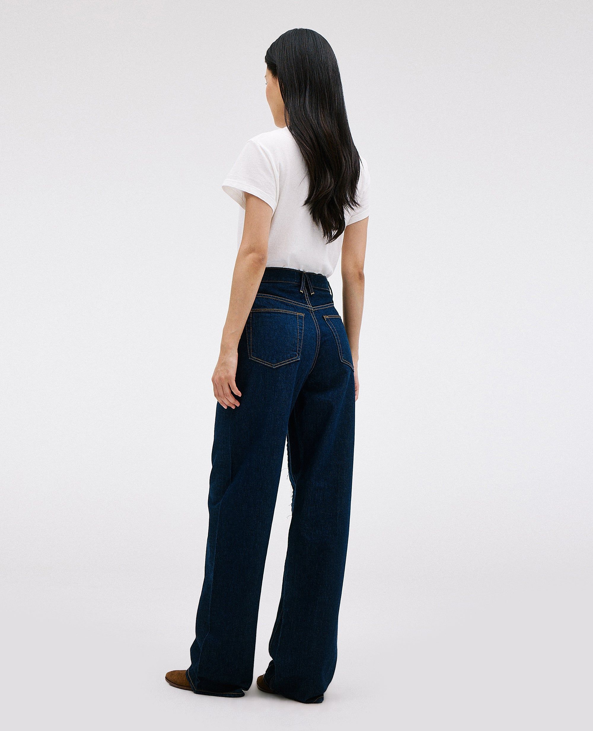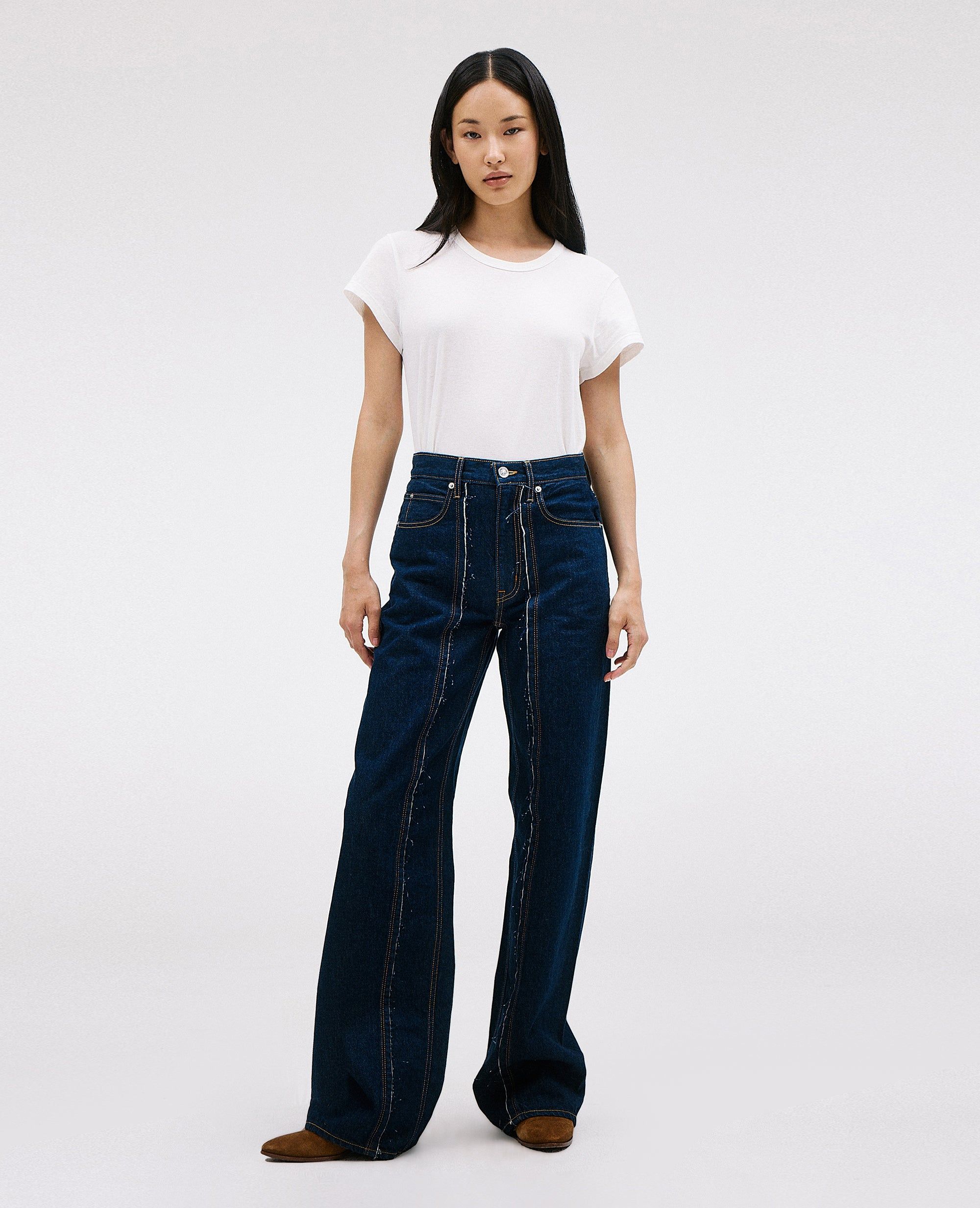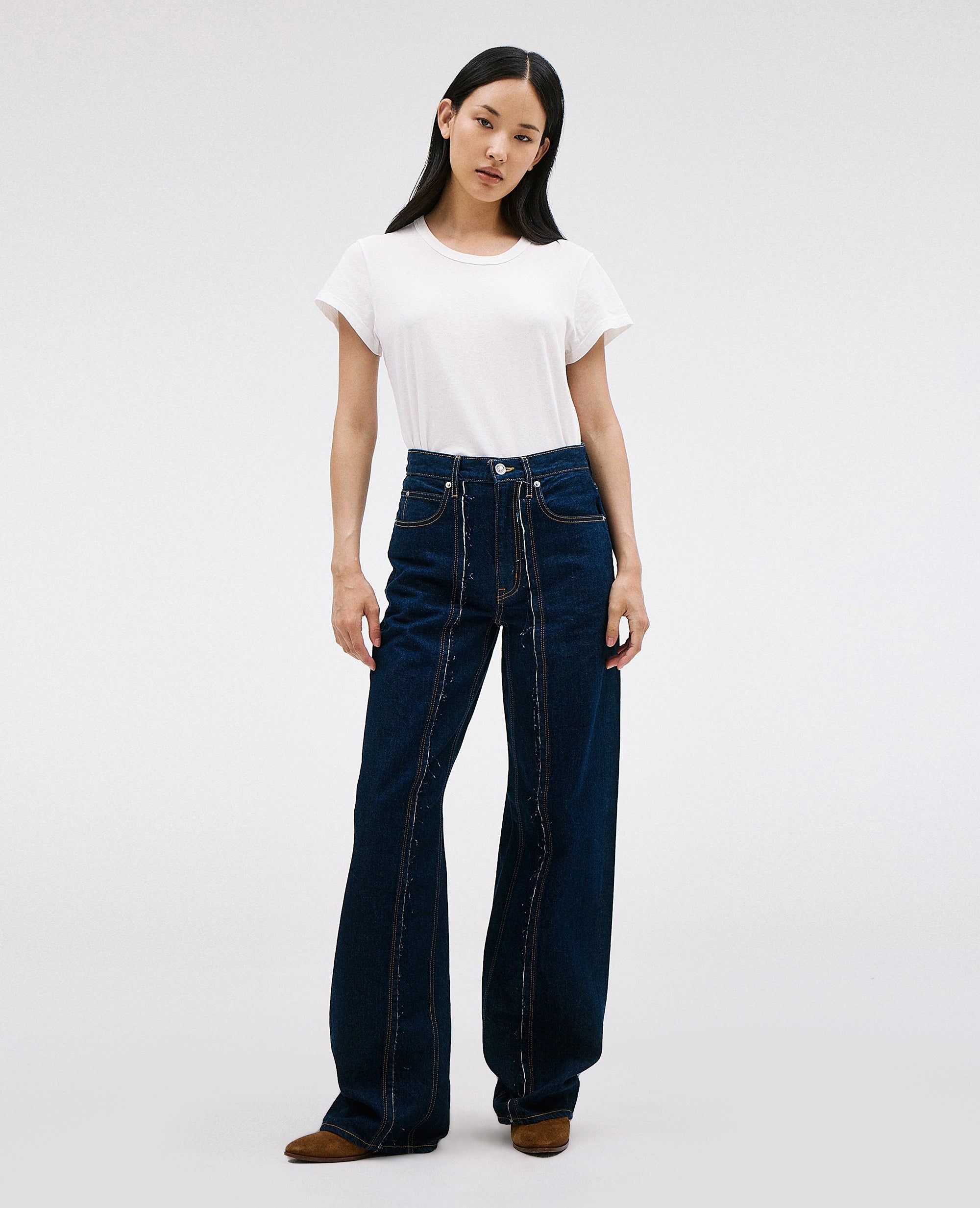 Cassie Raw Edge features a high-rise waist and barrel-wide leg with a full-length inseam, combining effortless and refined style with 100% regenerative cotton craftsmanship.