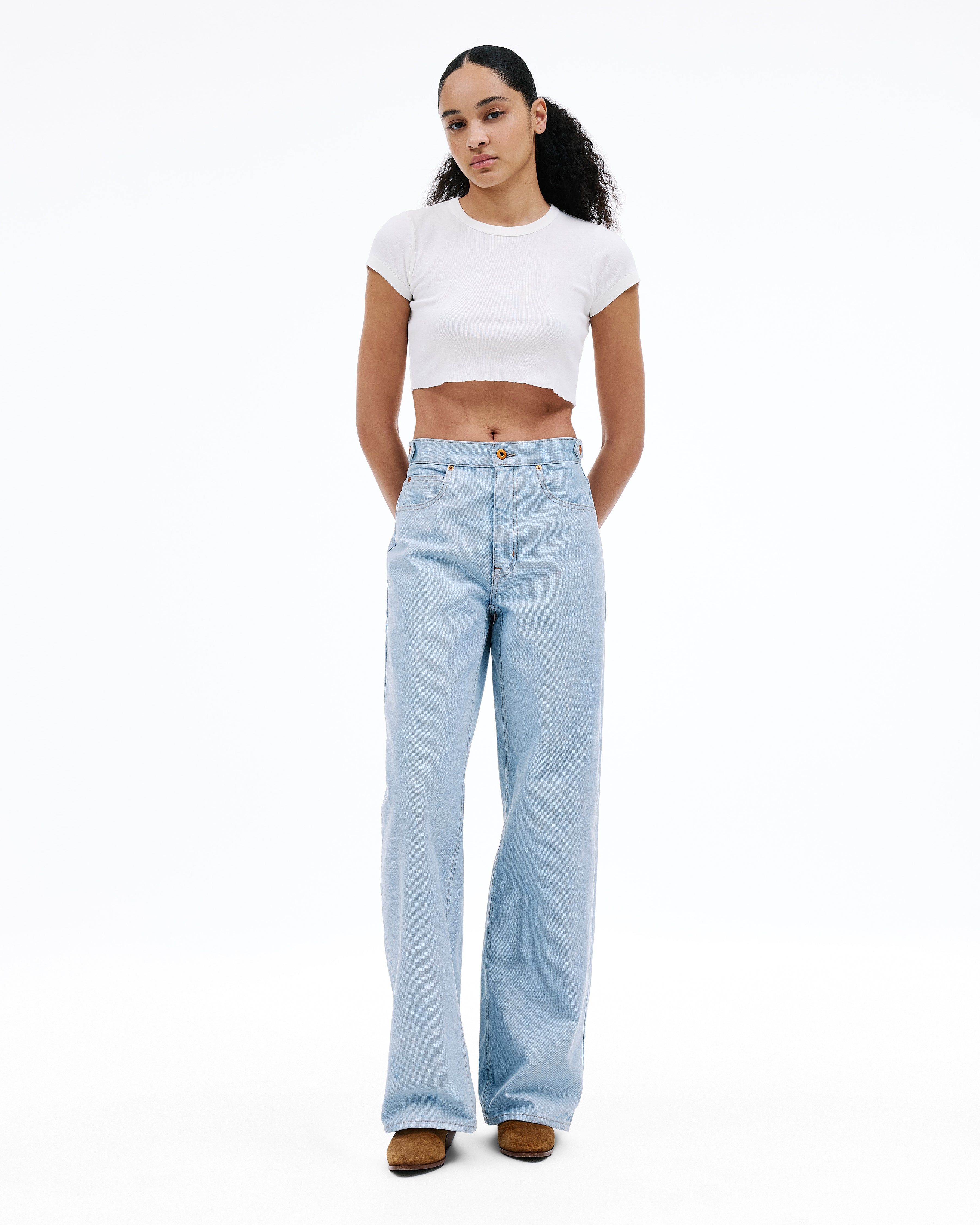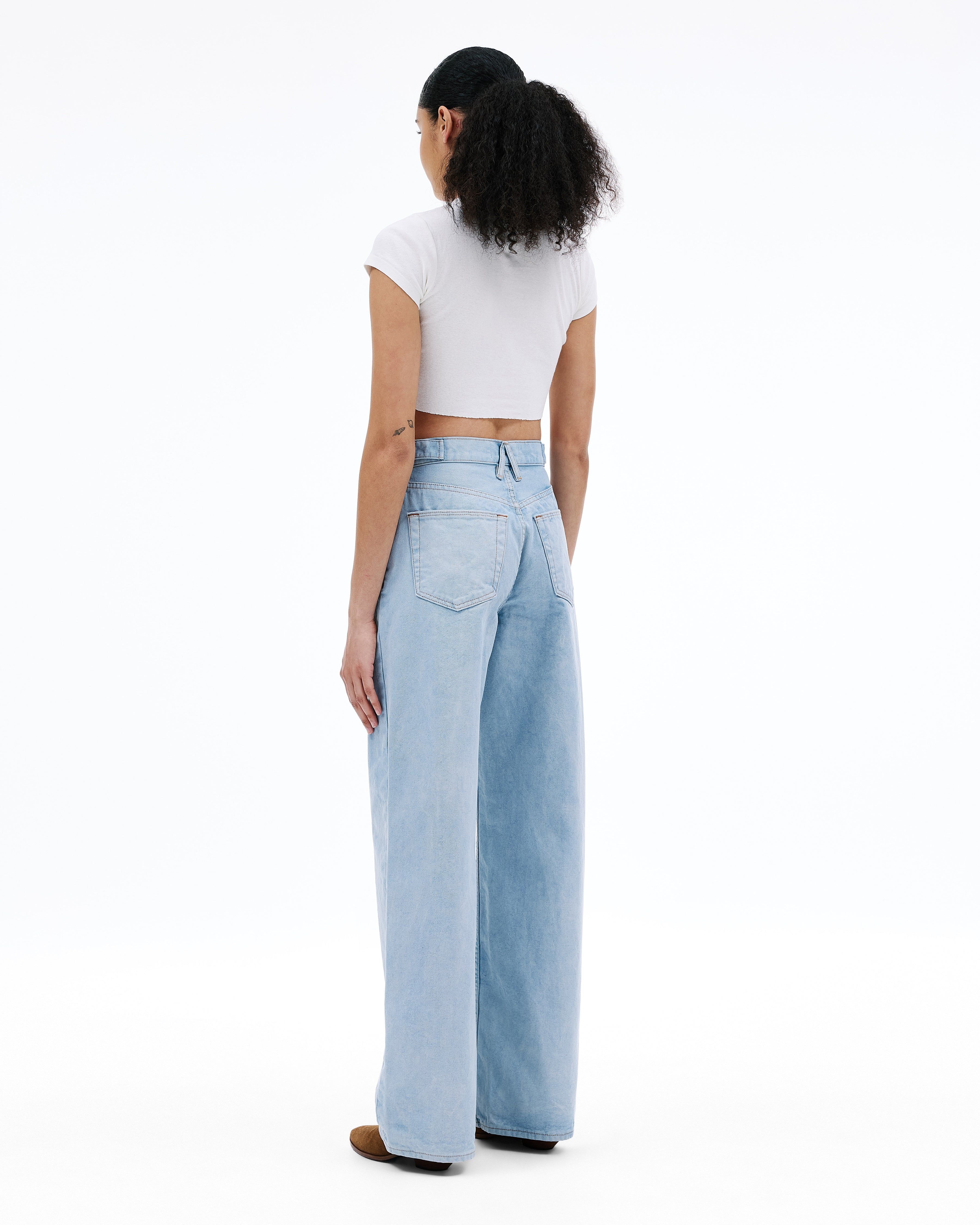 Cassie with Tabs features a high-rise waist and a full-length barrel-wide leg, blending relaxed ease with a refined finish.