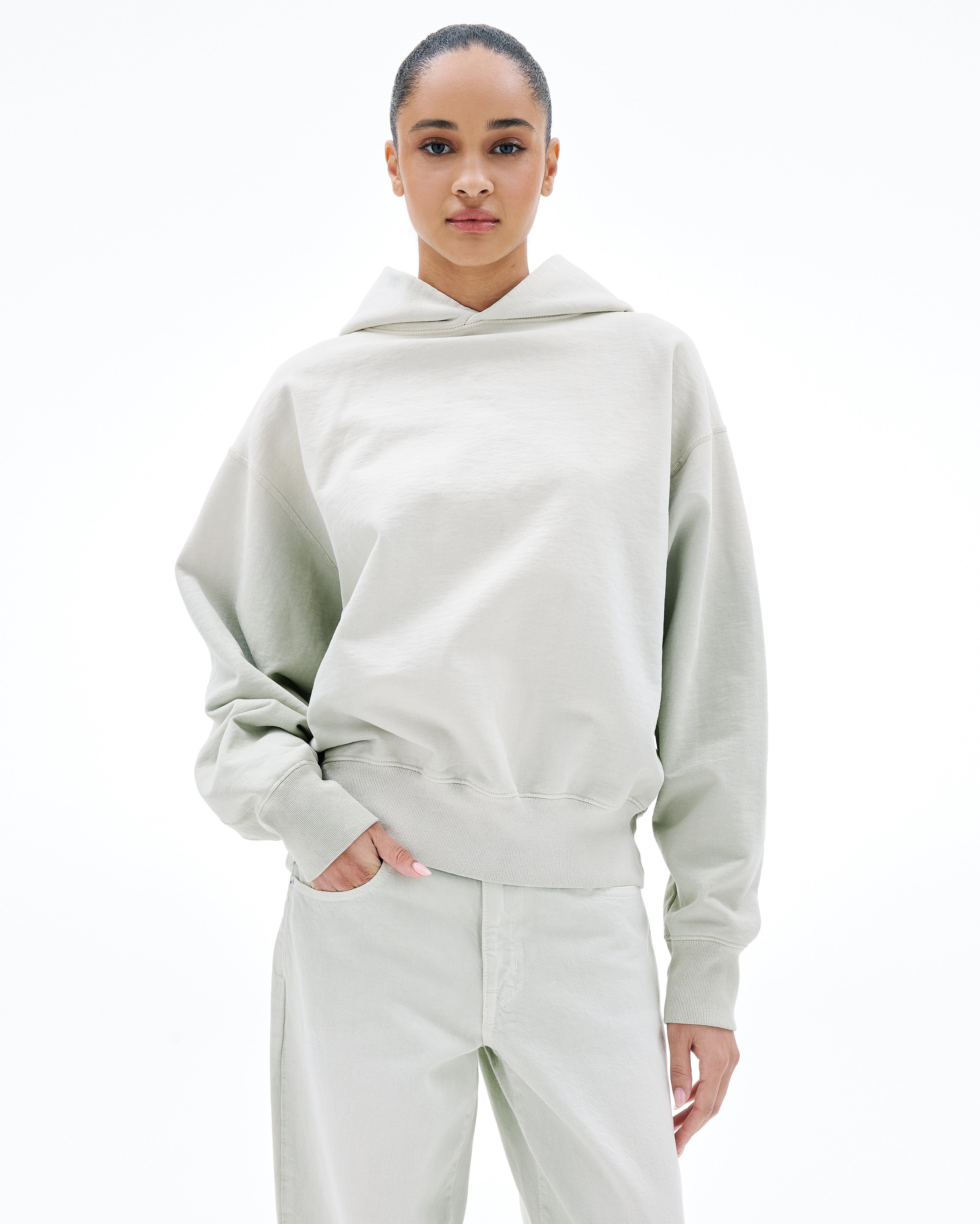 The Cinch Hoodie is garment-dyed and crafted from premium heavy fleece knit cotton. Designed with a relaxed silhouette, hood, and cinched waist. Made in the USA.