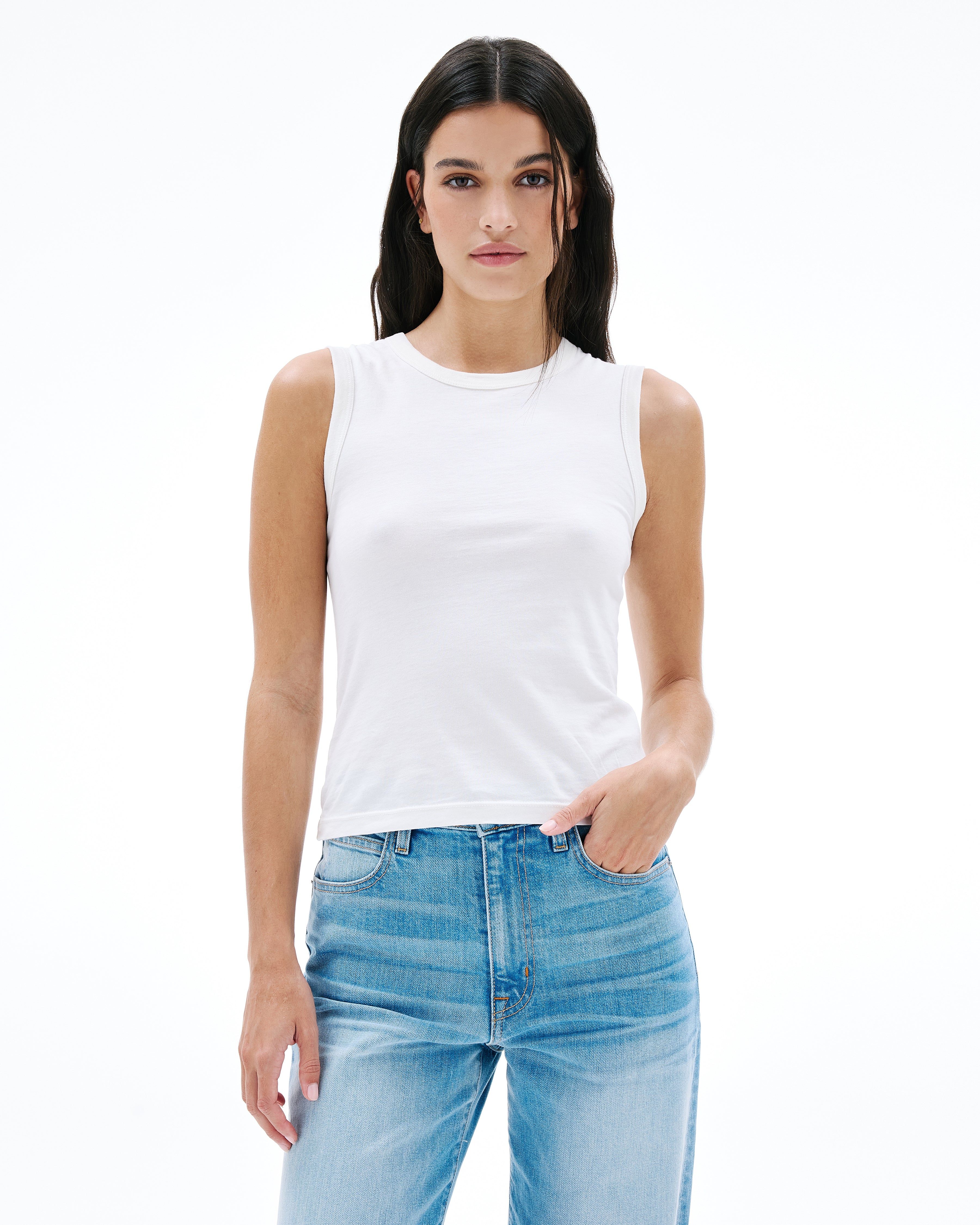 An essential tank designed with a classic crew neckline and crafted from lightweight cotton, offering a refined, timeless look.