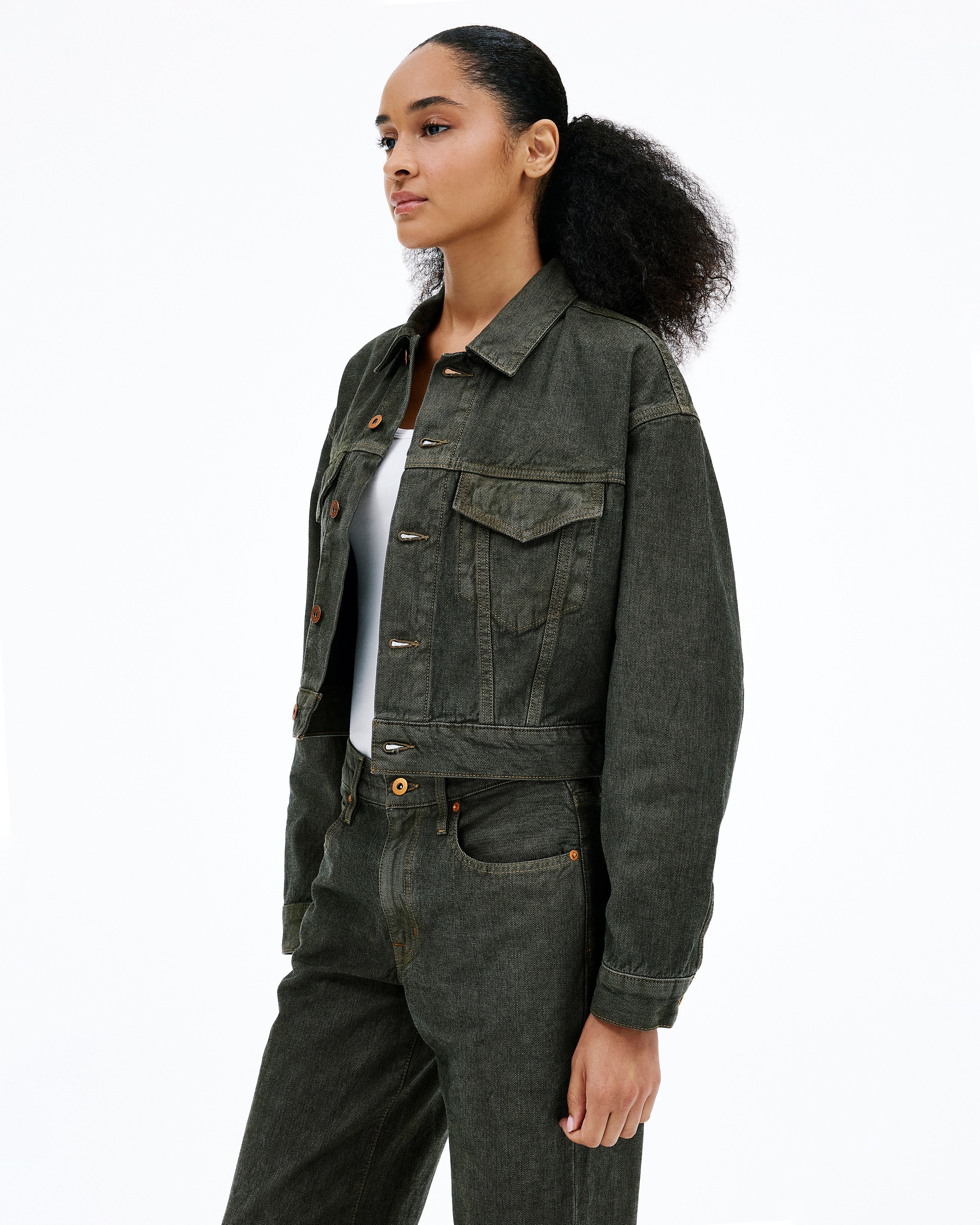 Davis Trucker reimagines the classic trucker jacket with a modern, cropped silhouette. Crafted from 100% organic cotton, it’s designed with front pocket detailing, contrast orange button hardware, and back tabs. Can be paired as a set with the Jazmine | Blackwood Forest.