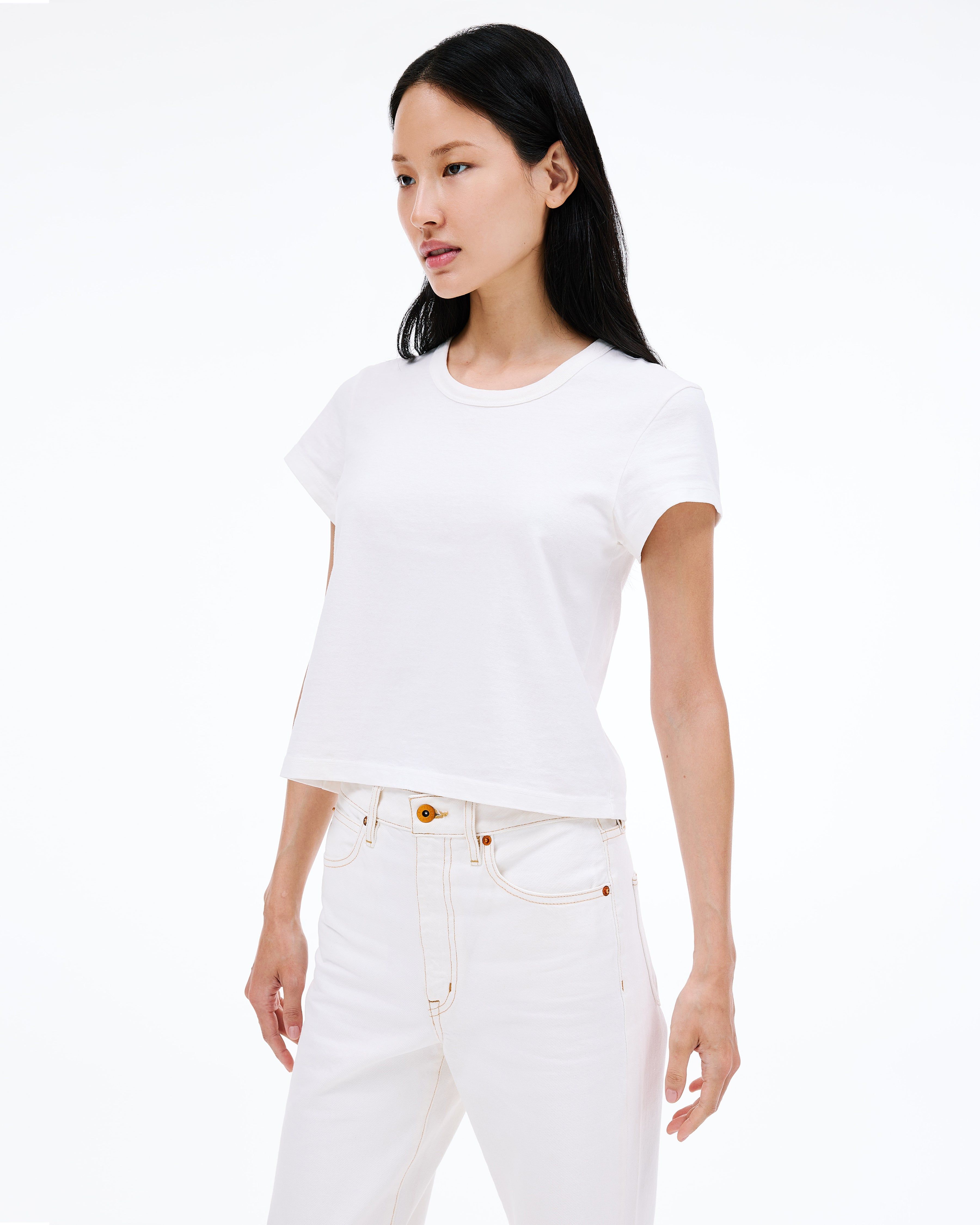 Crafted from a mid weight open-end fabric for an authentic vintage look and feel. This modern silhouette features a cap sleeve.