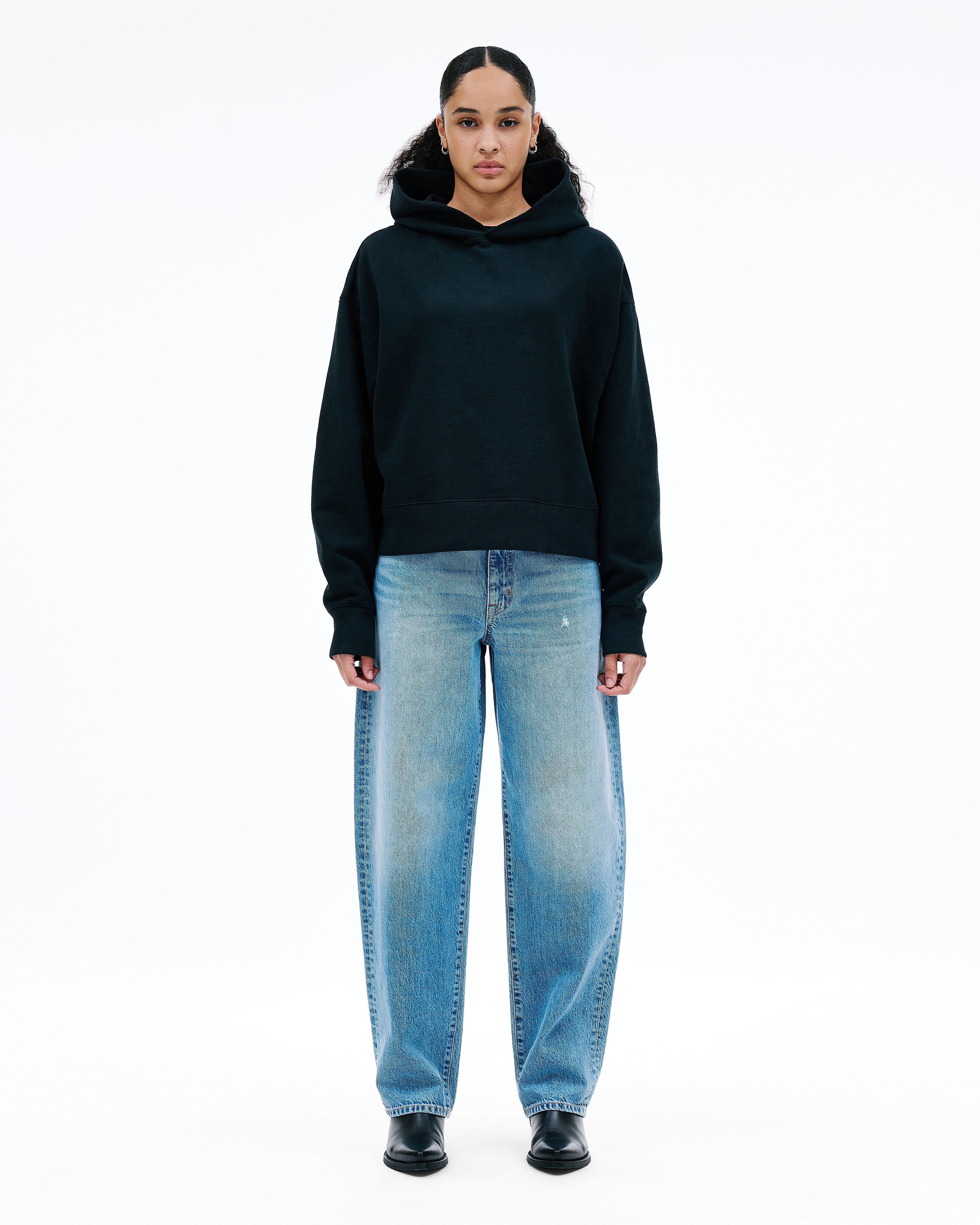 Ella features a relaxed body and curved leg with a mid-rise waist, offering an effortless yet refined fit.