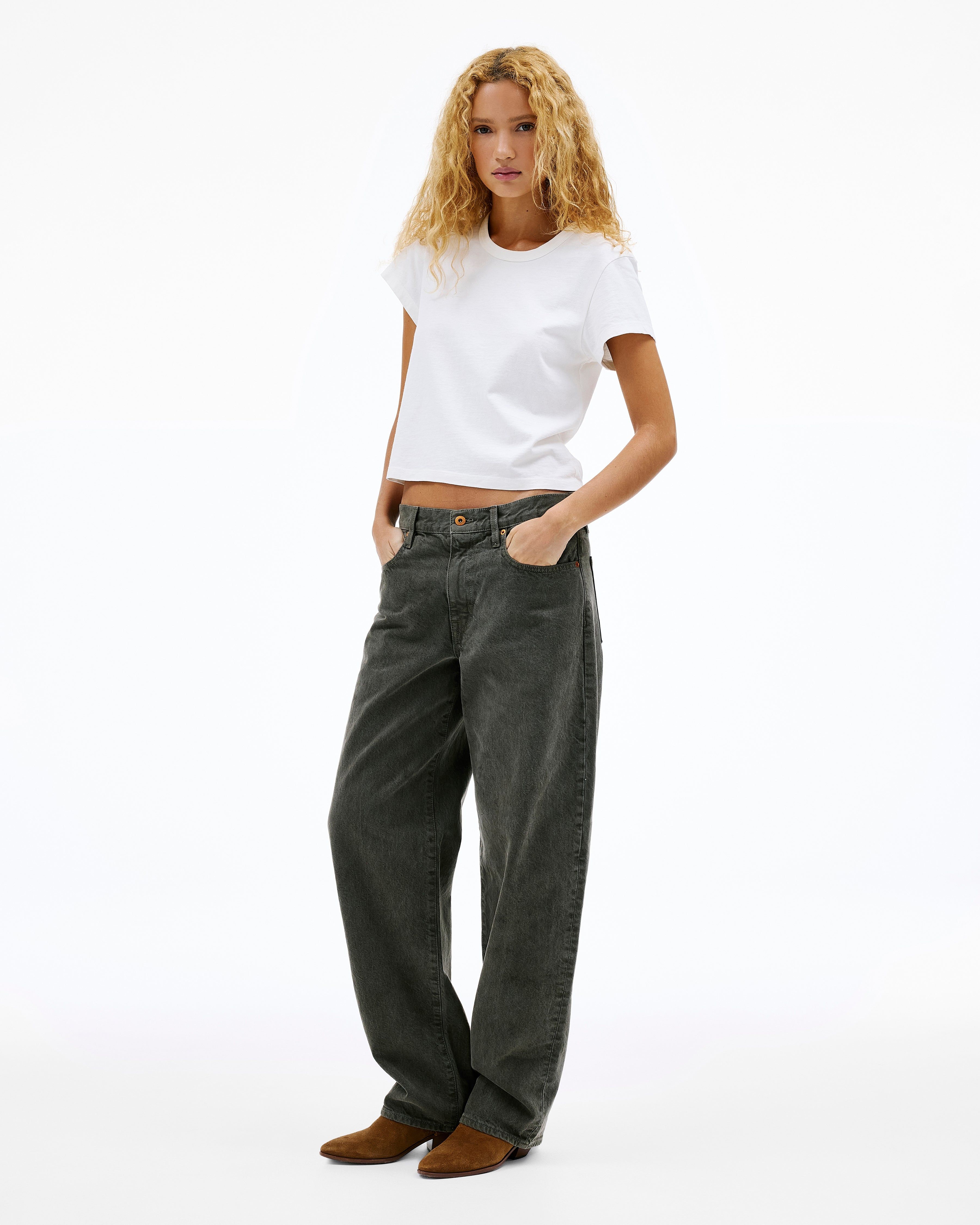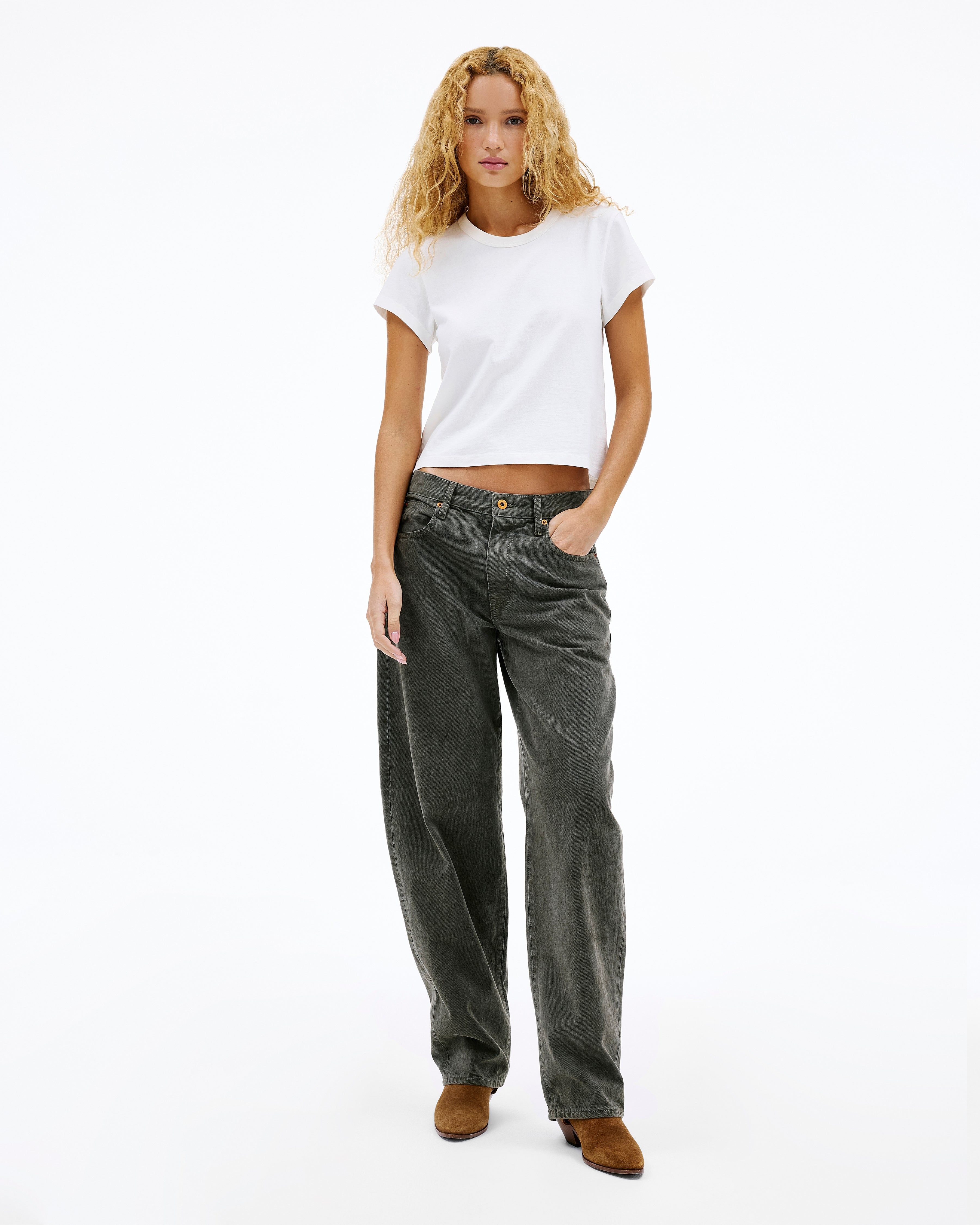 Ella features a relaxed body and curved leg with a mid-rise waist, offering an effortless yet refined fit.