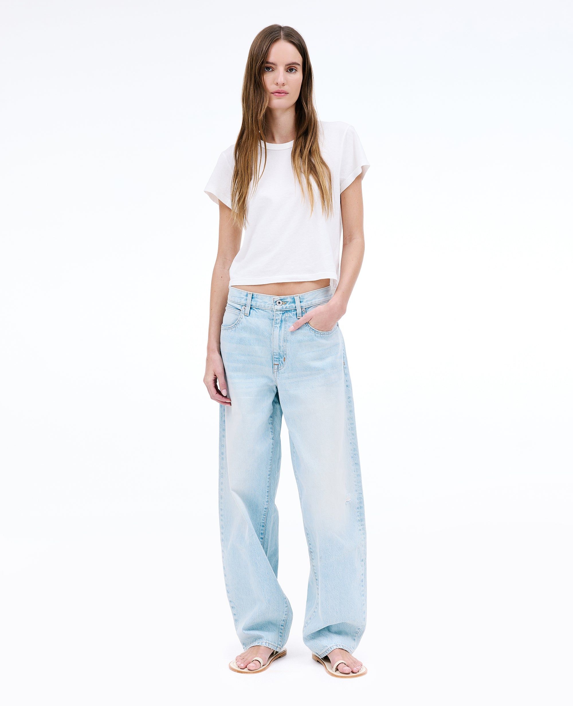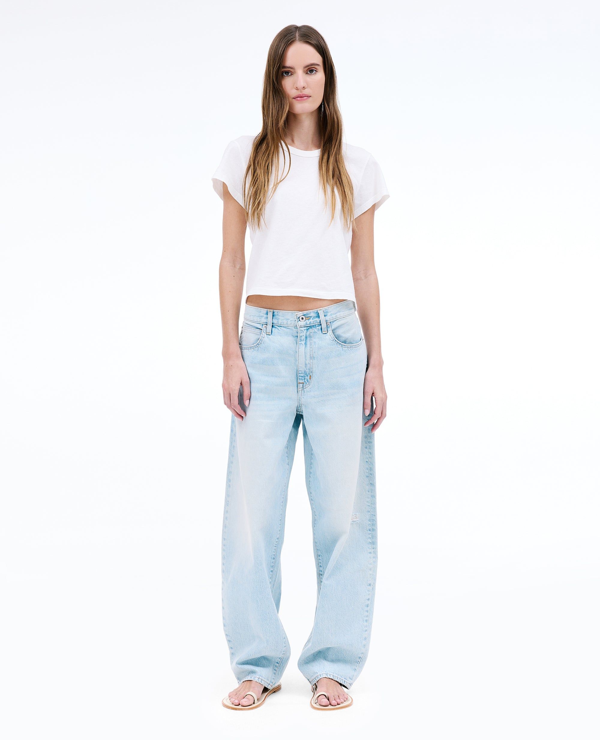 Ella features a relaxed body and curved leg with a mid-rise waist, offering an effortless yet refined fit.