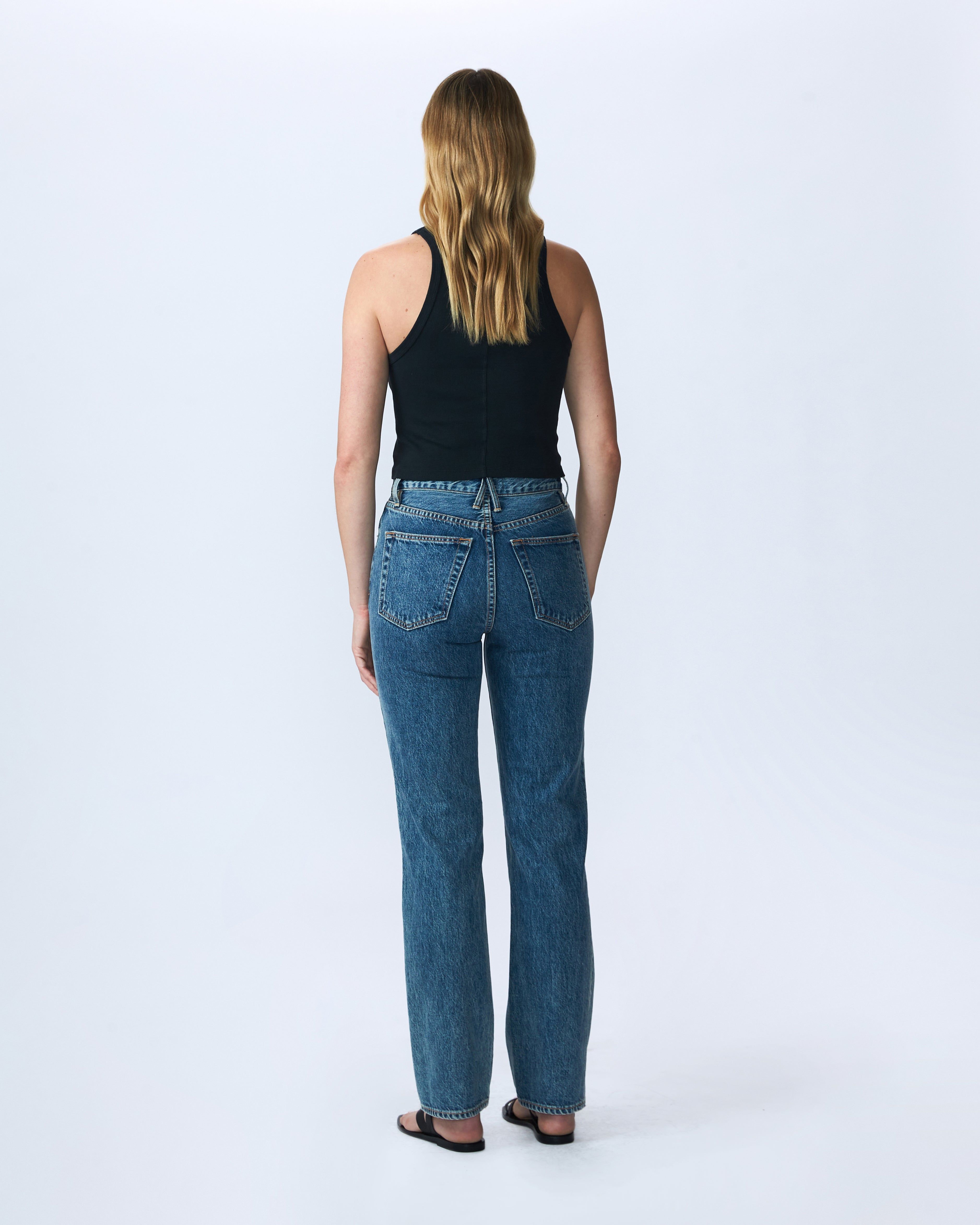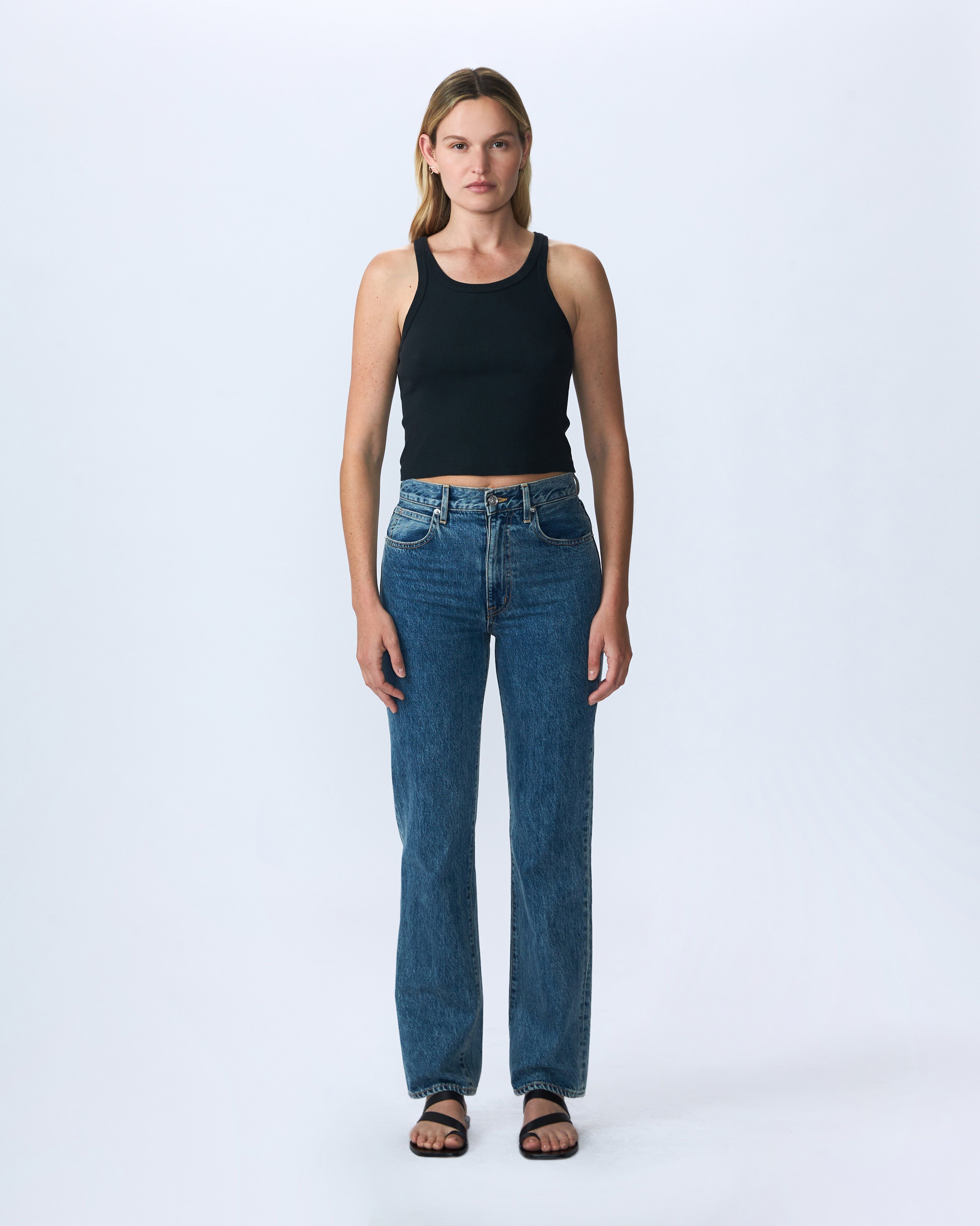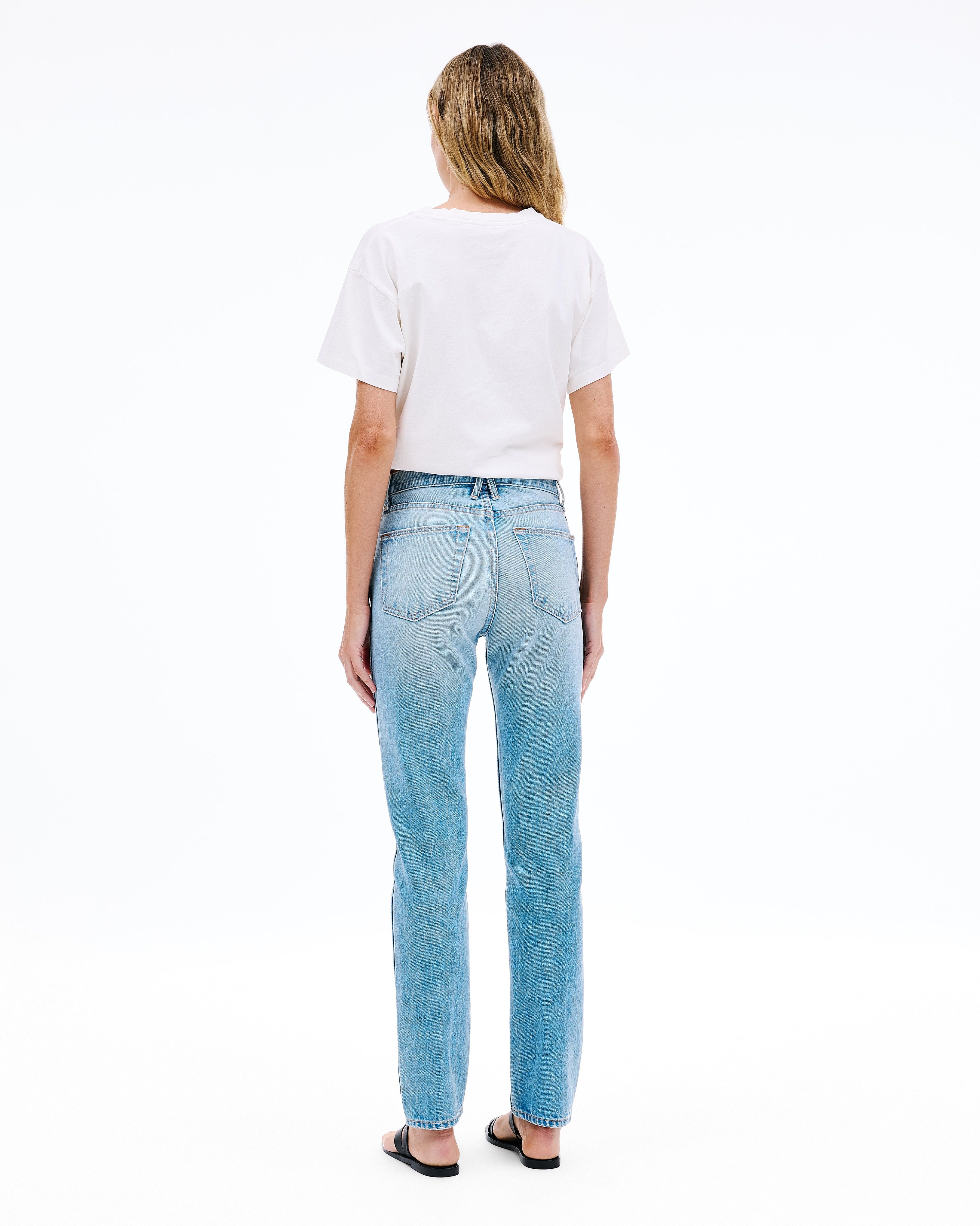 Ella features a relaxed body and curved leg with a mid-rise waist, offering an effortless yet refined fit.