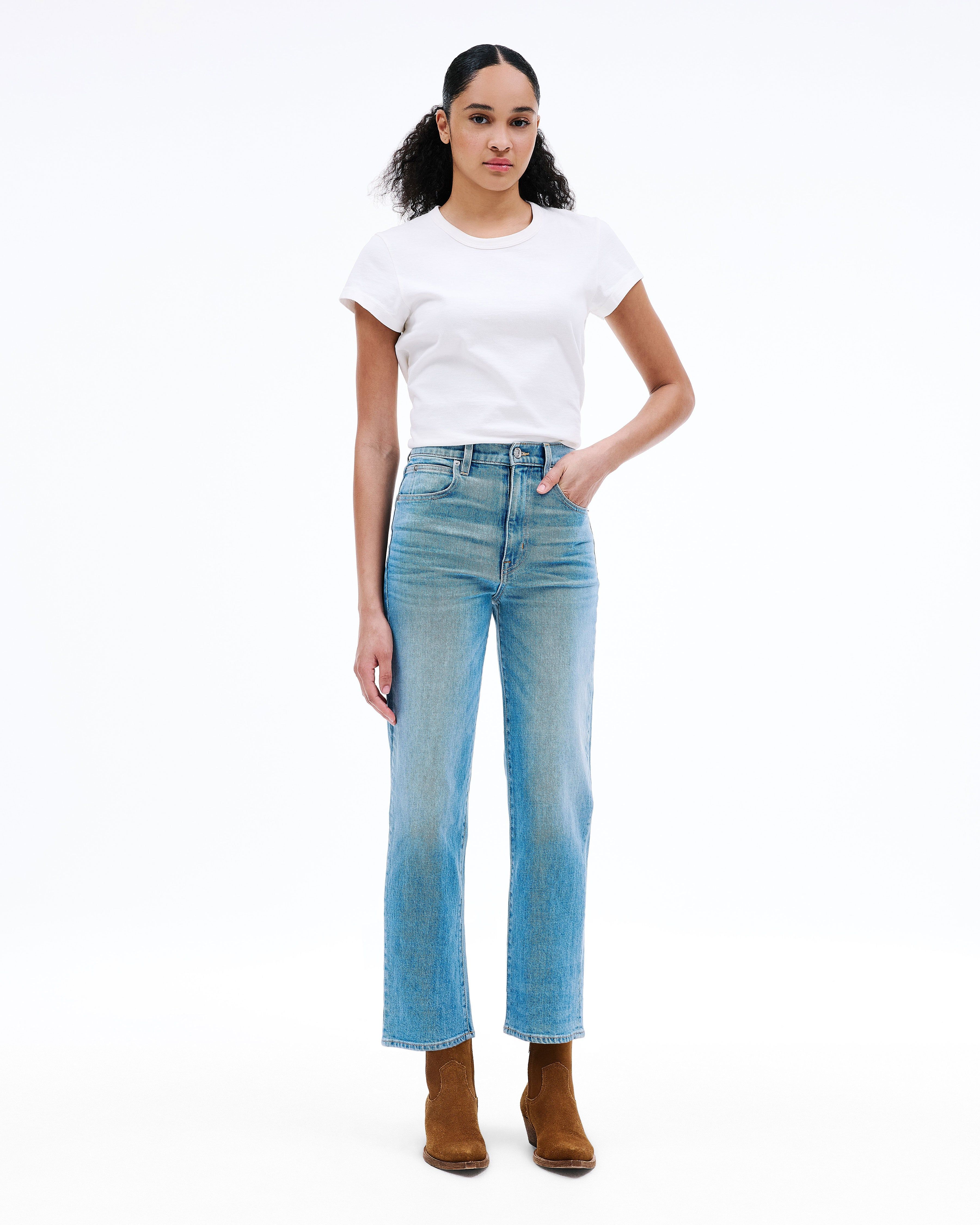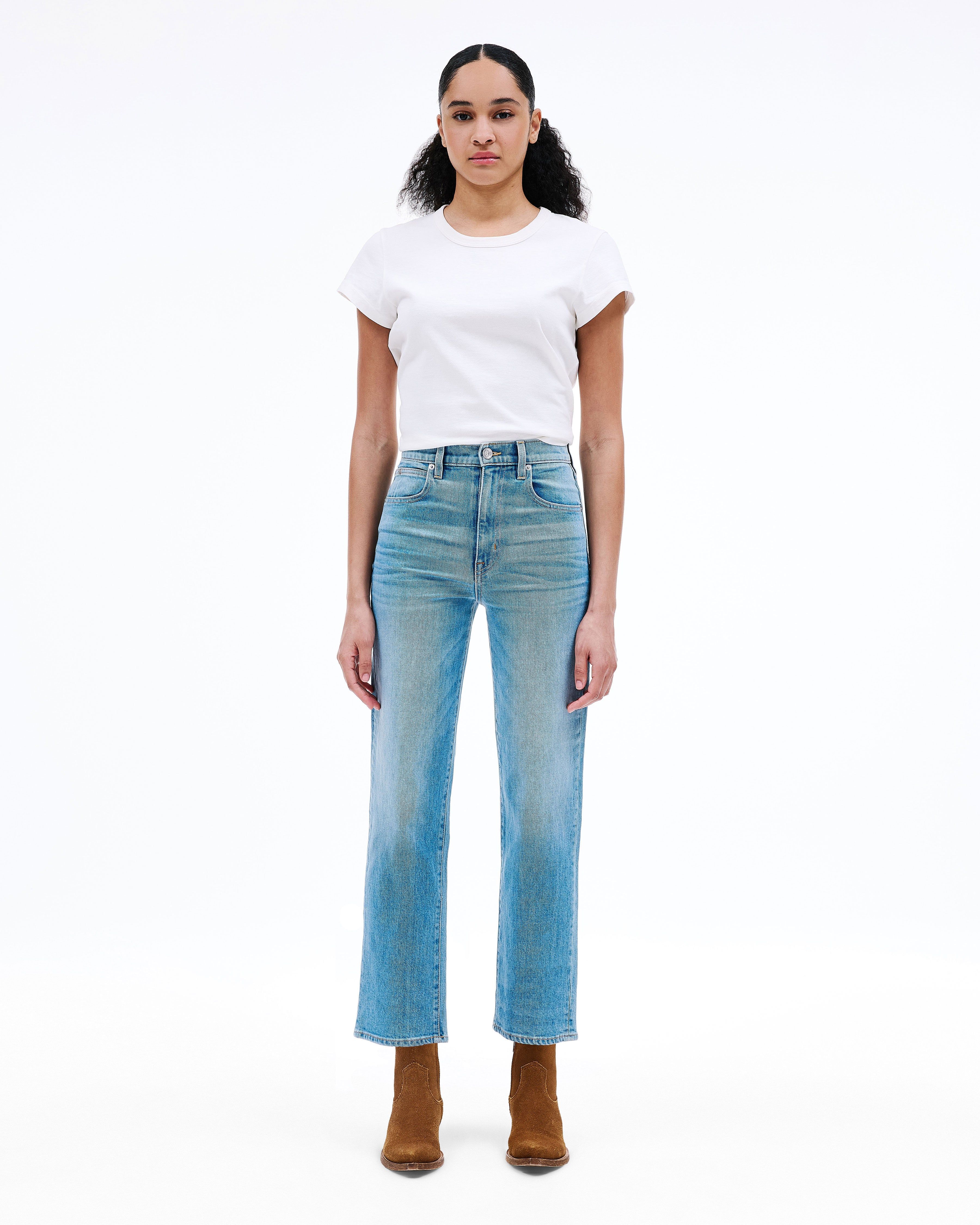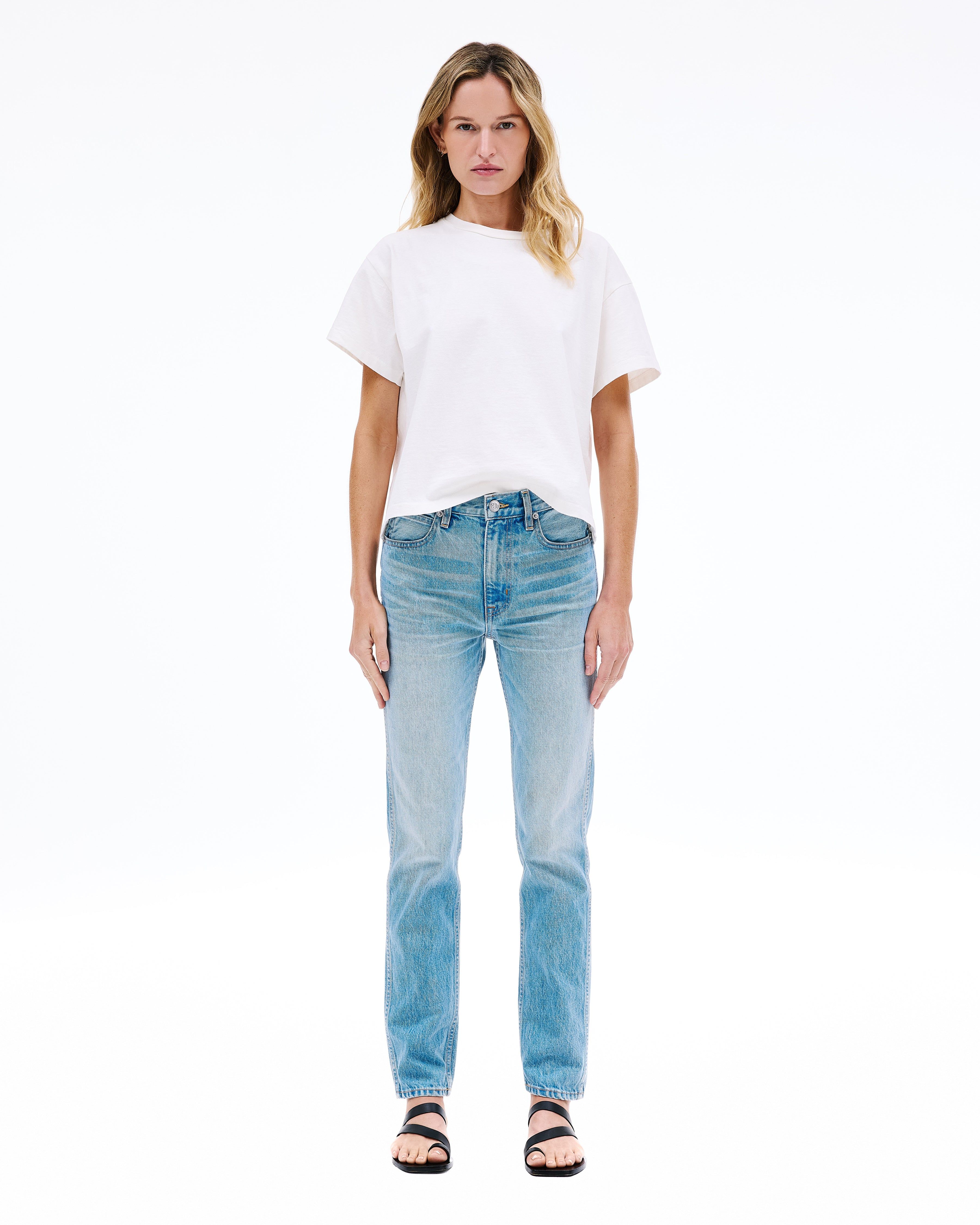 Ella features a relaxed body and curved leg with a mid-rise waist, offering an effortless yet refined fit.