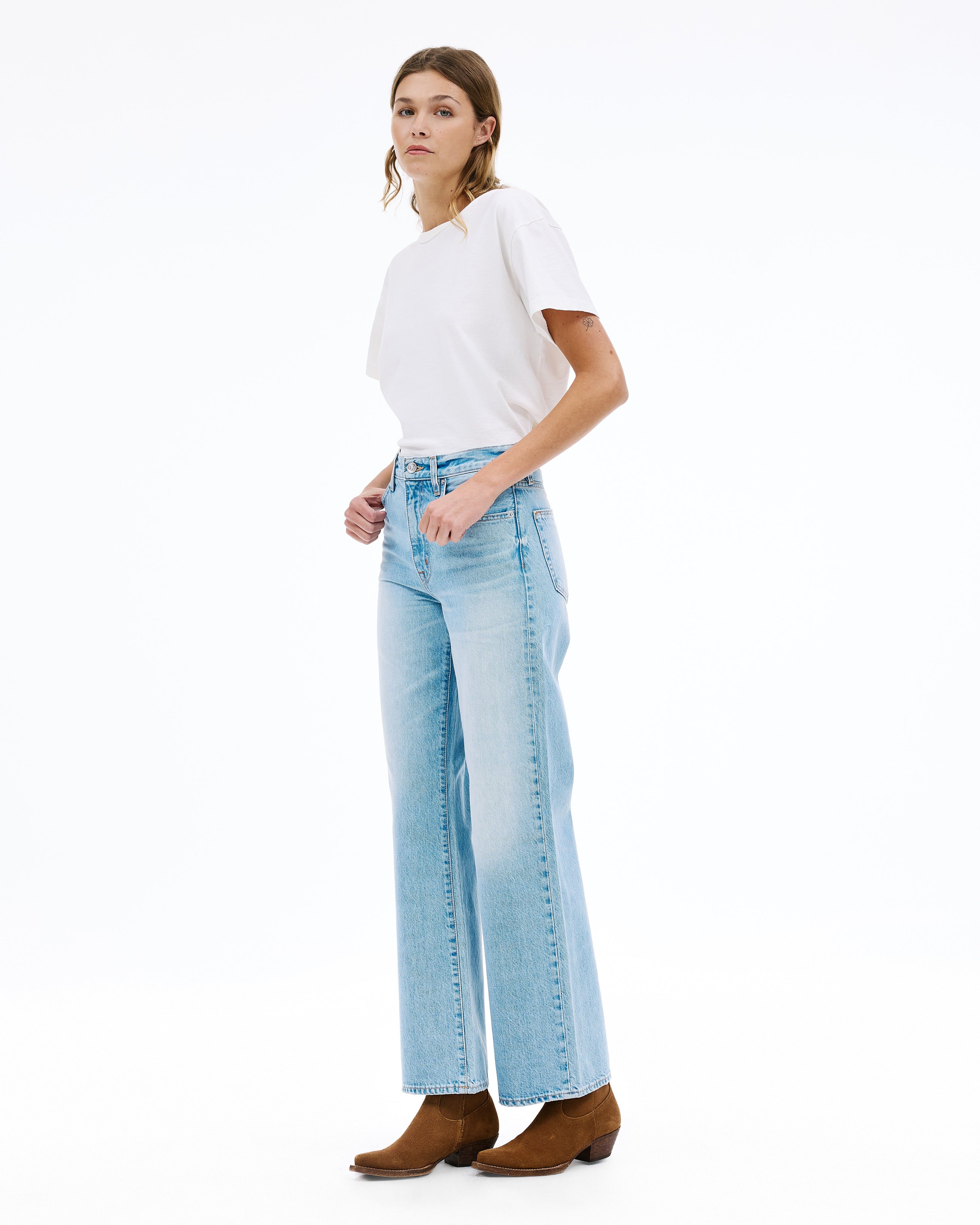 Country Skies is crafted from 100% Regenerative Cotton and featured in a classic light stone wash with hand-detailed subtle whiskering for a vintage inspired finish.