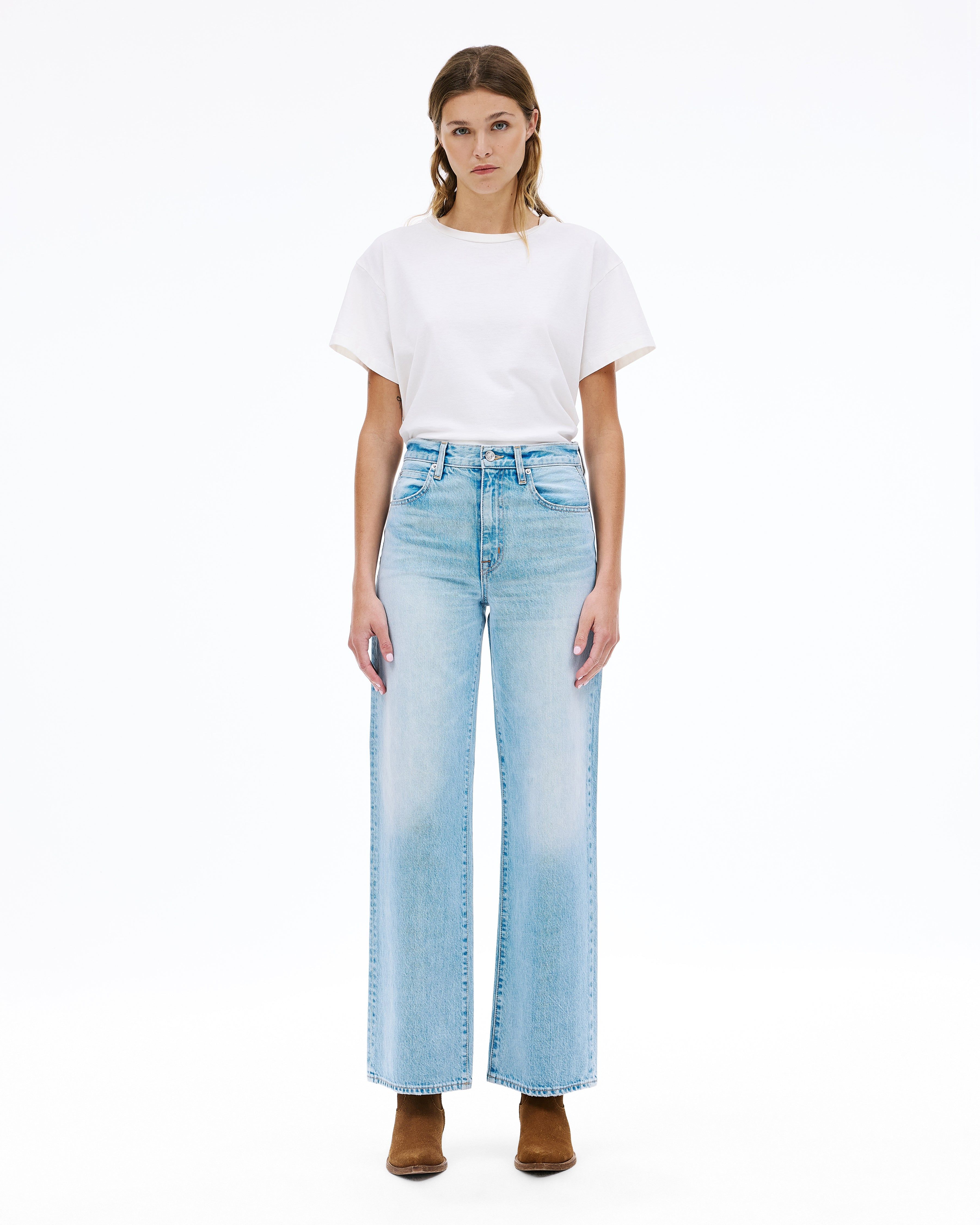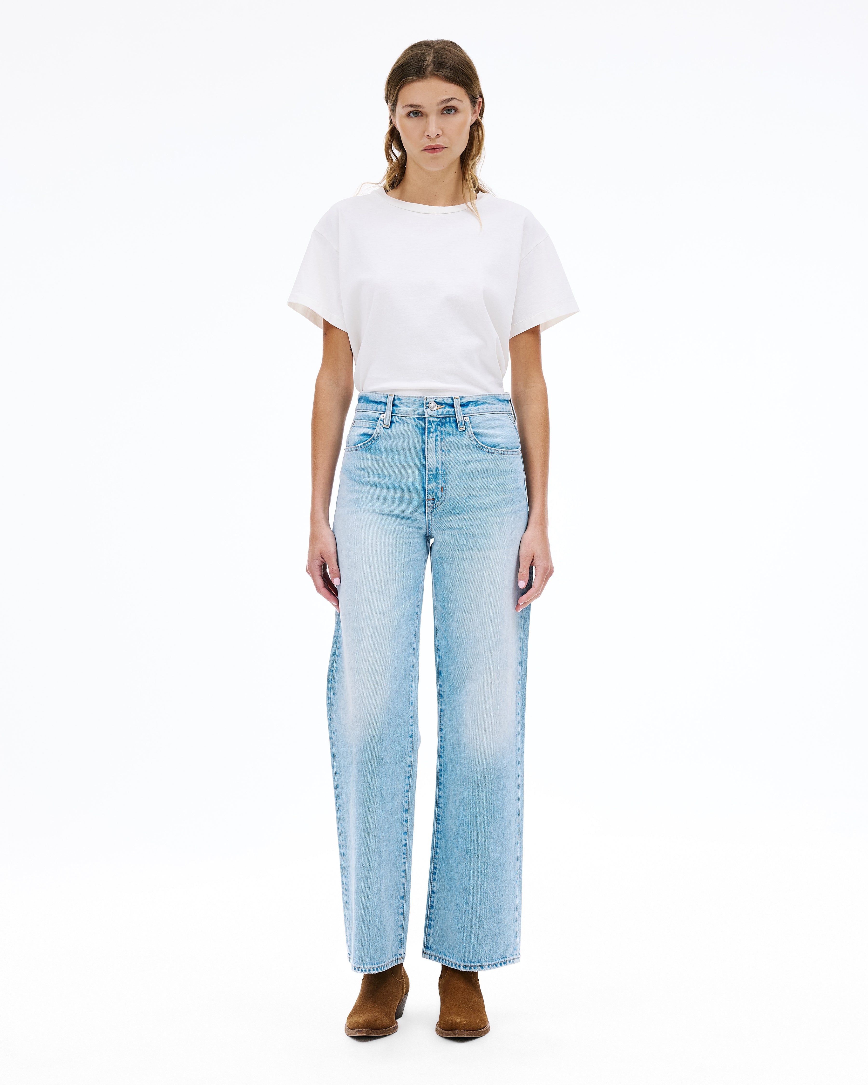 Grace is a SLVRLAKE signature style designed to elongate the leg. Featuring a high-rise waist and wide-leg silhouette, it fits close through the waist and hip before flowing through the leg, finished with a raw hem. An essential style offering versatile styling options.