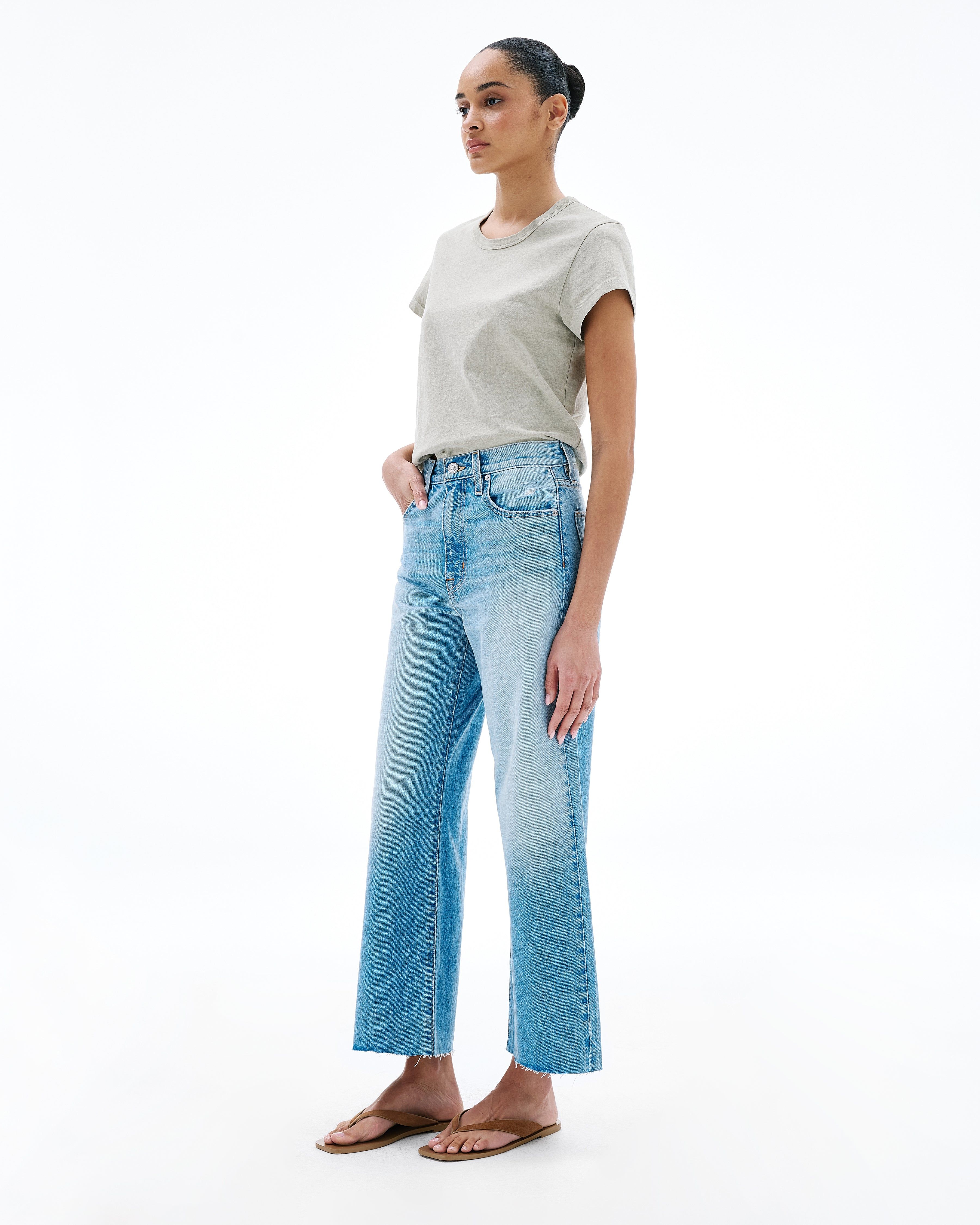 Grace is a SLVRLAKE signature style, offered in a cropped length designed to elongate the leg. Featuring a high-rise waist and wide-leg silhouette, it fits close through the waist and hip before flowing through the leg, finished with a raw hem. An essential style offering versatile styling options.