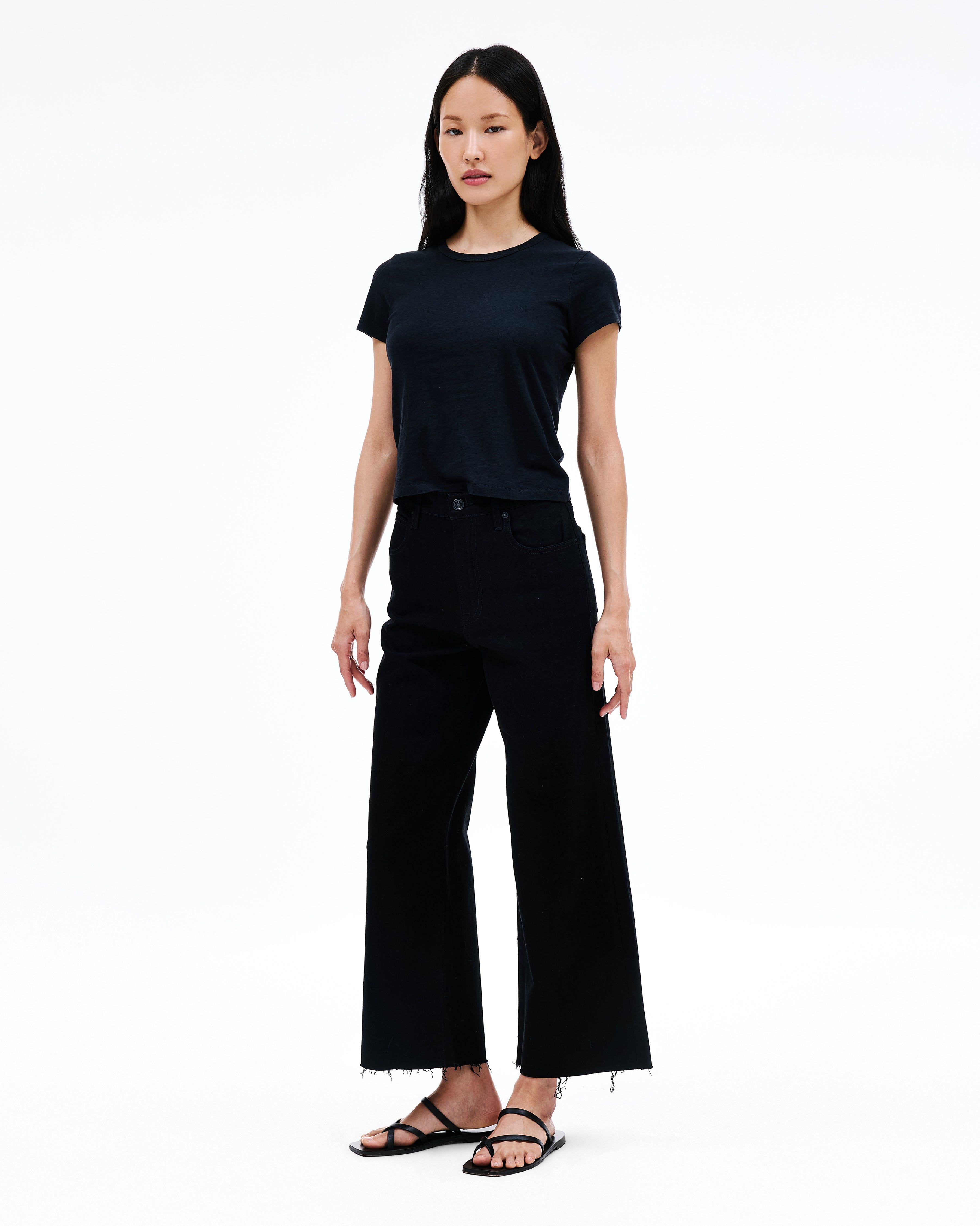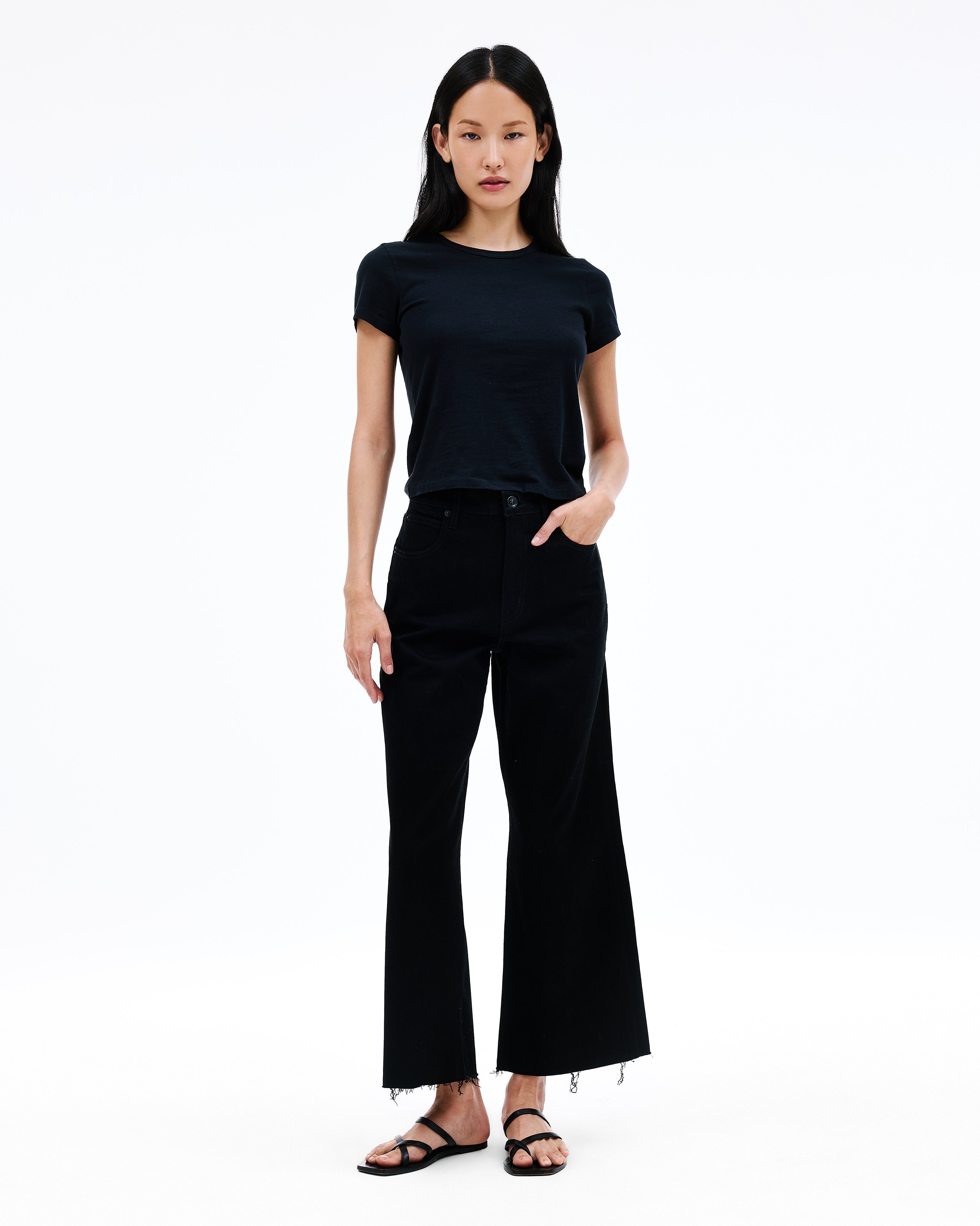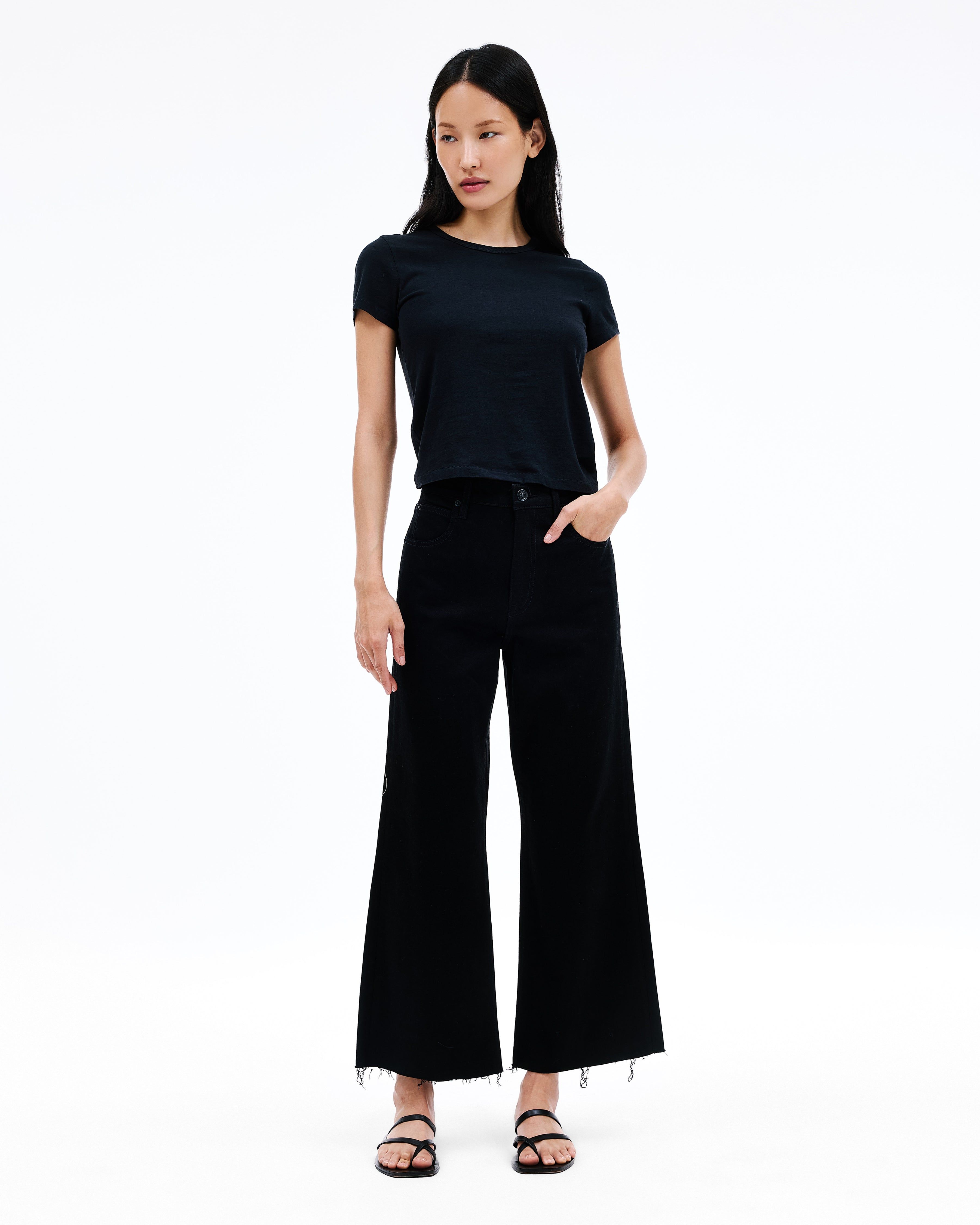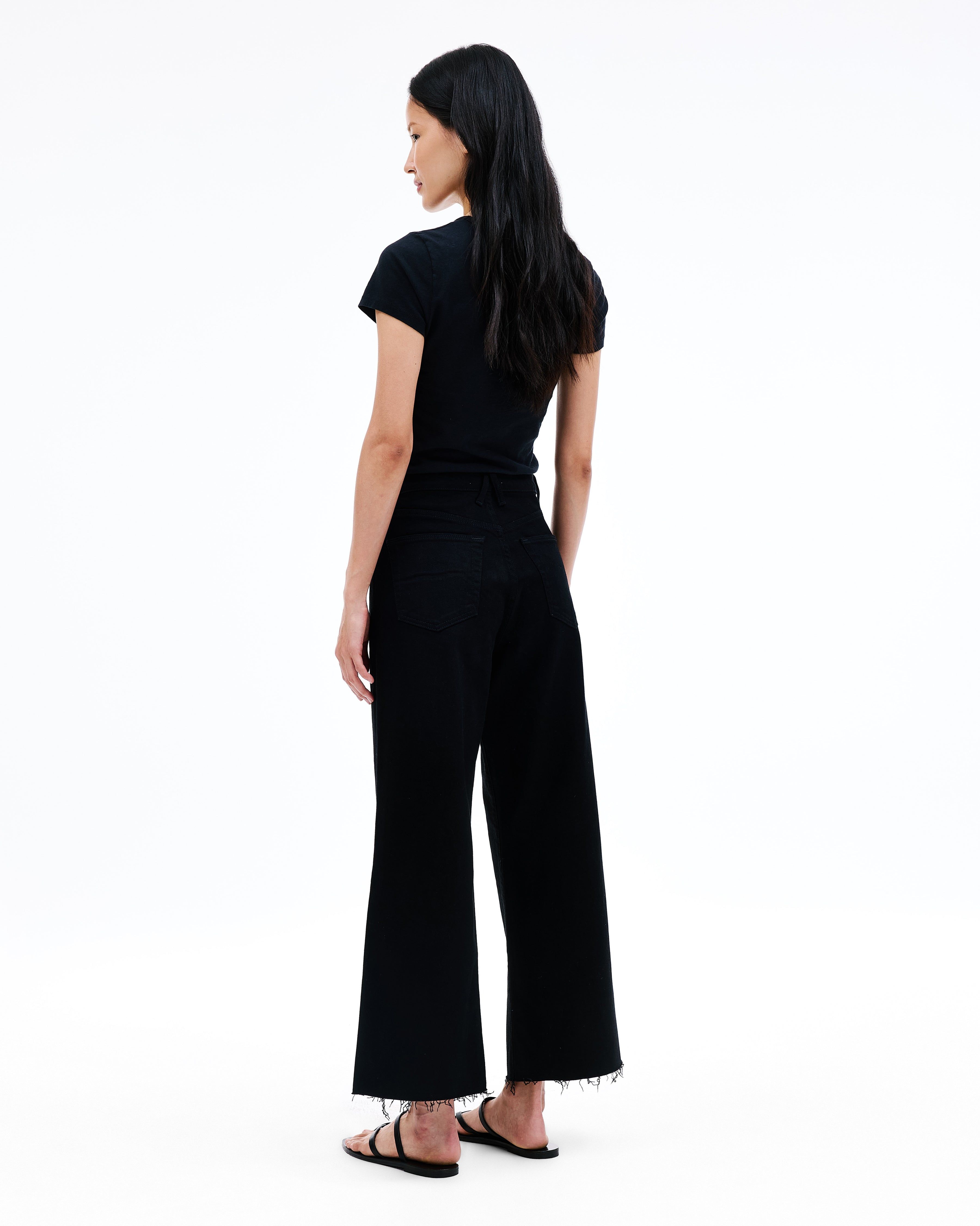 Grace is a SLVRLAKE signature style, offered in a cropped length designed to elongate the leg. Featuring a high-rise waist and wide-leg silhouette, it fits close through the waist and hip before flowing through the leg, finished with a raw hem. An essential style offering versatile styling options.