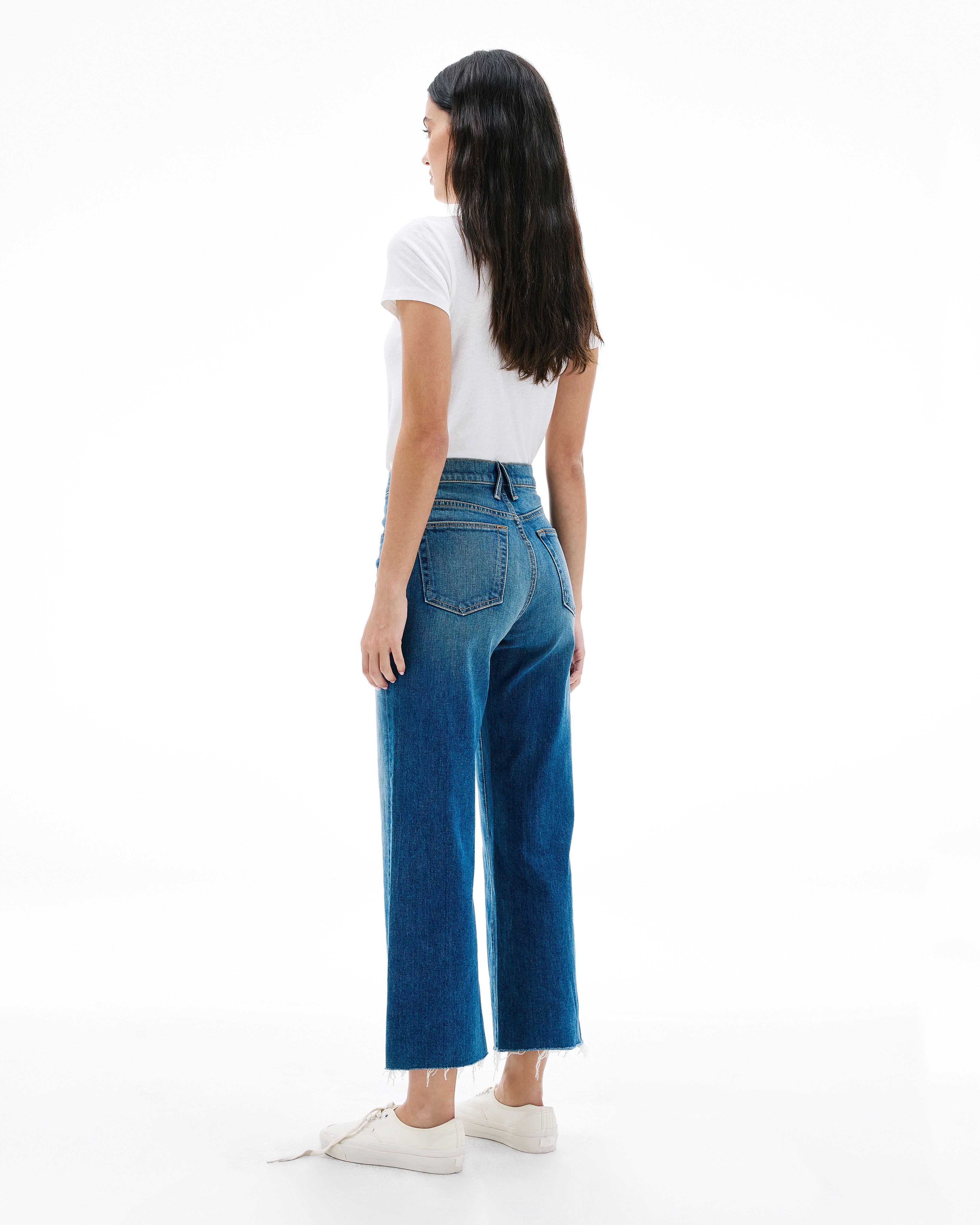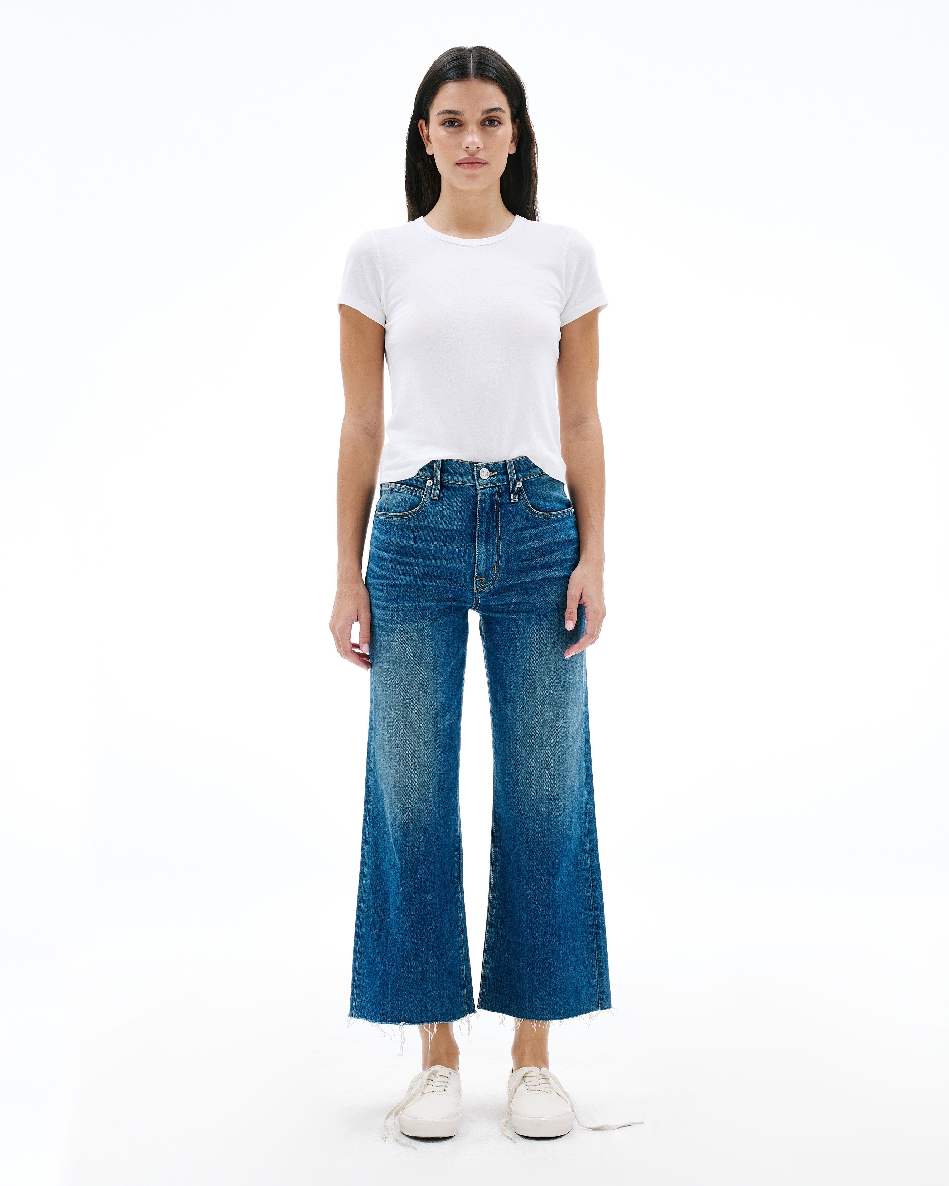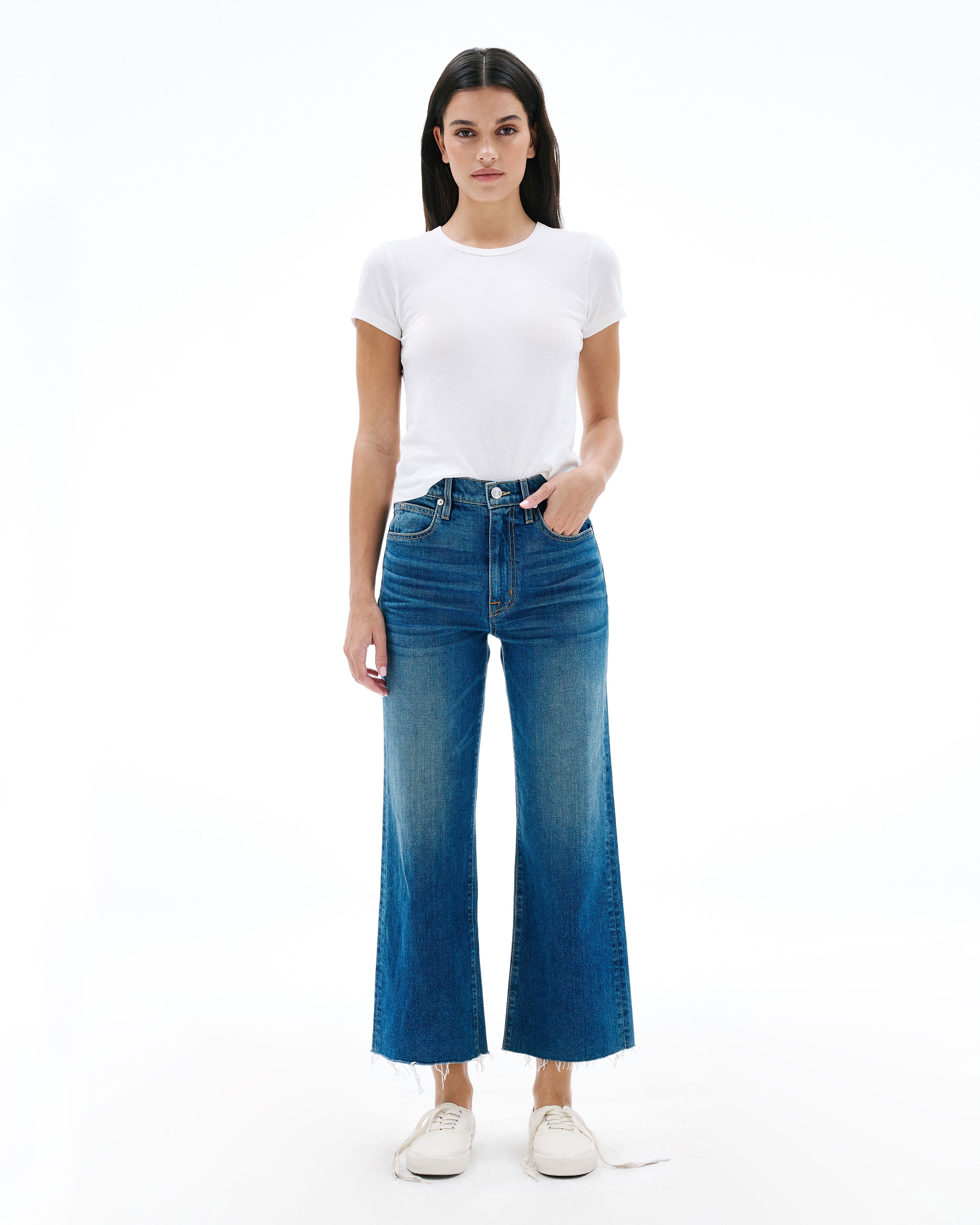 Grace is a SLVRLAKE signature style, offered in a cropped length designed to elongate the leg. Featuring a high-rise waist and wide-leg silhouette, it fits close through the waist and hip before flowing through the leg, finished with a raw hem. An essential style offering versatile styling options.