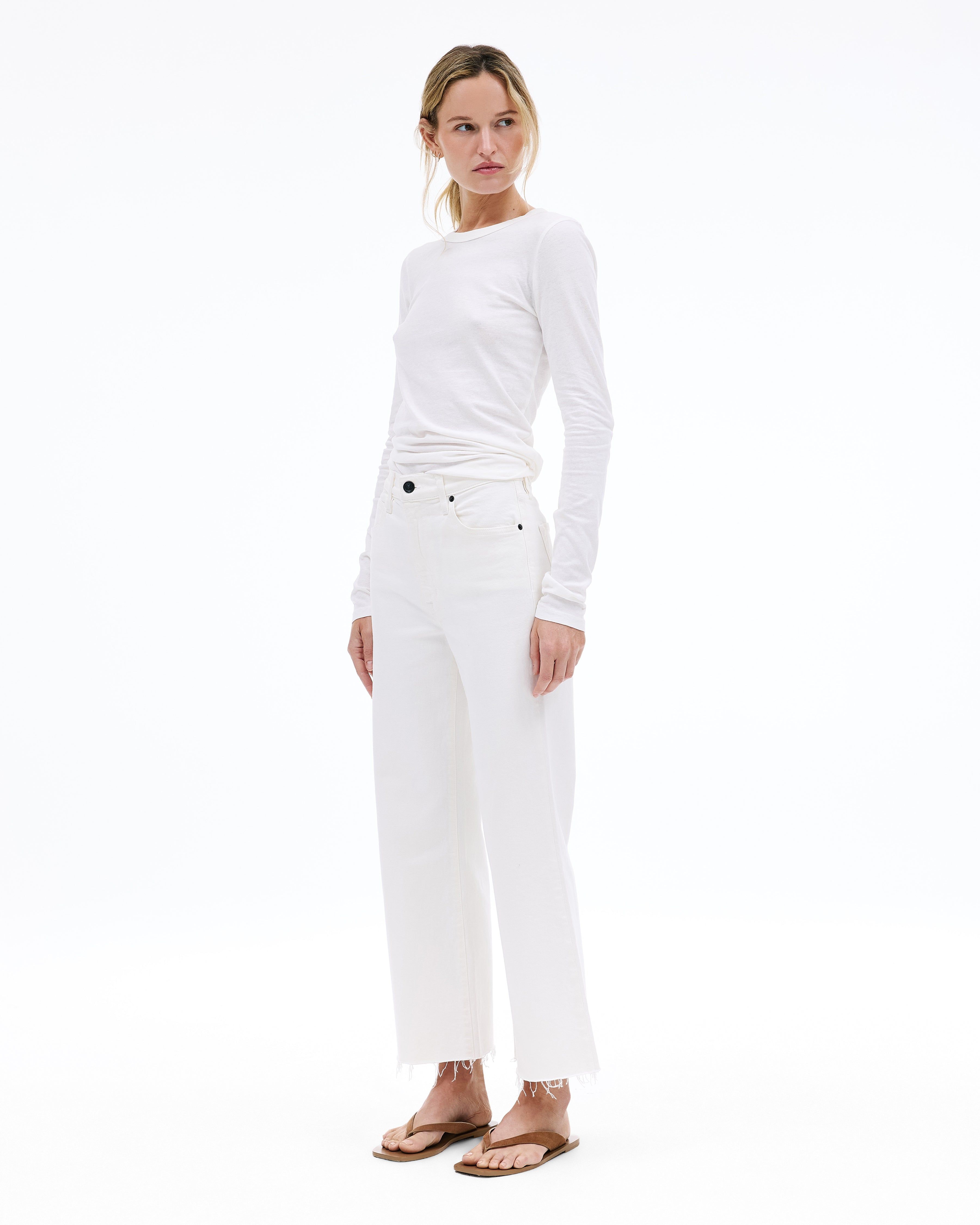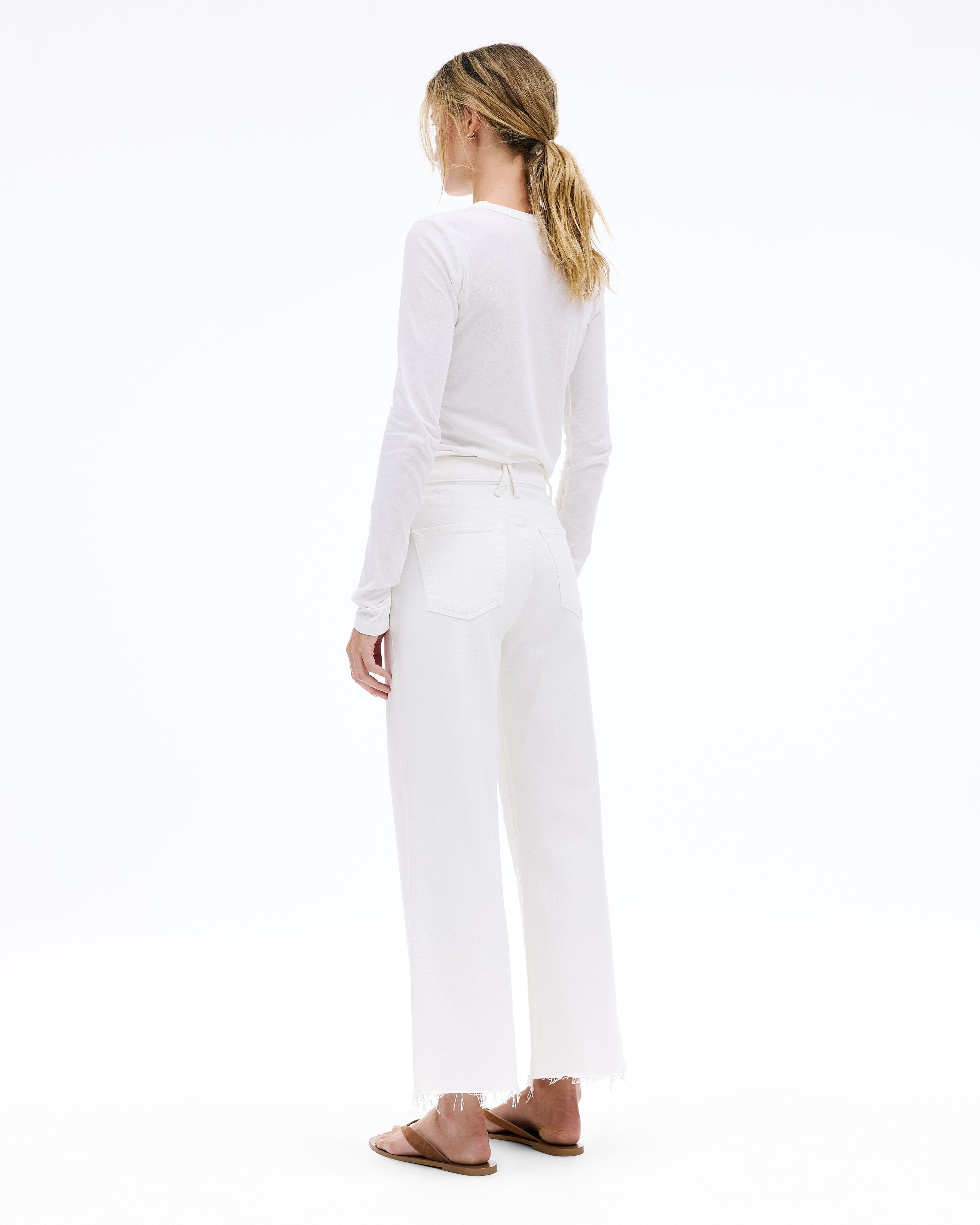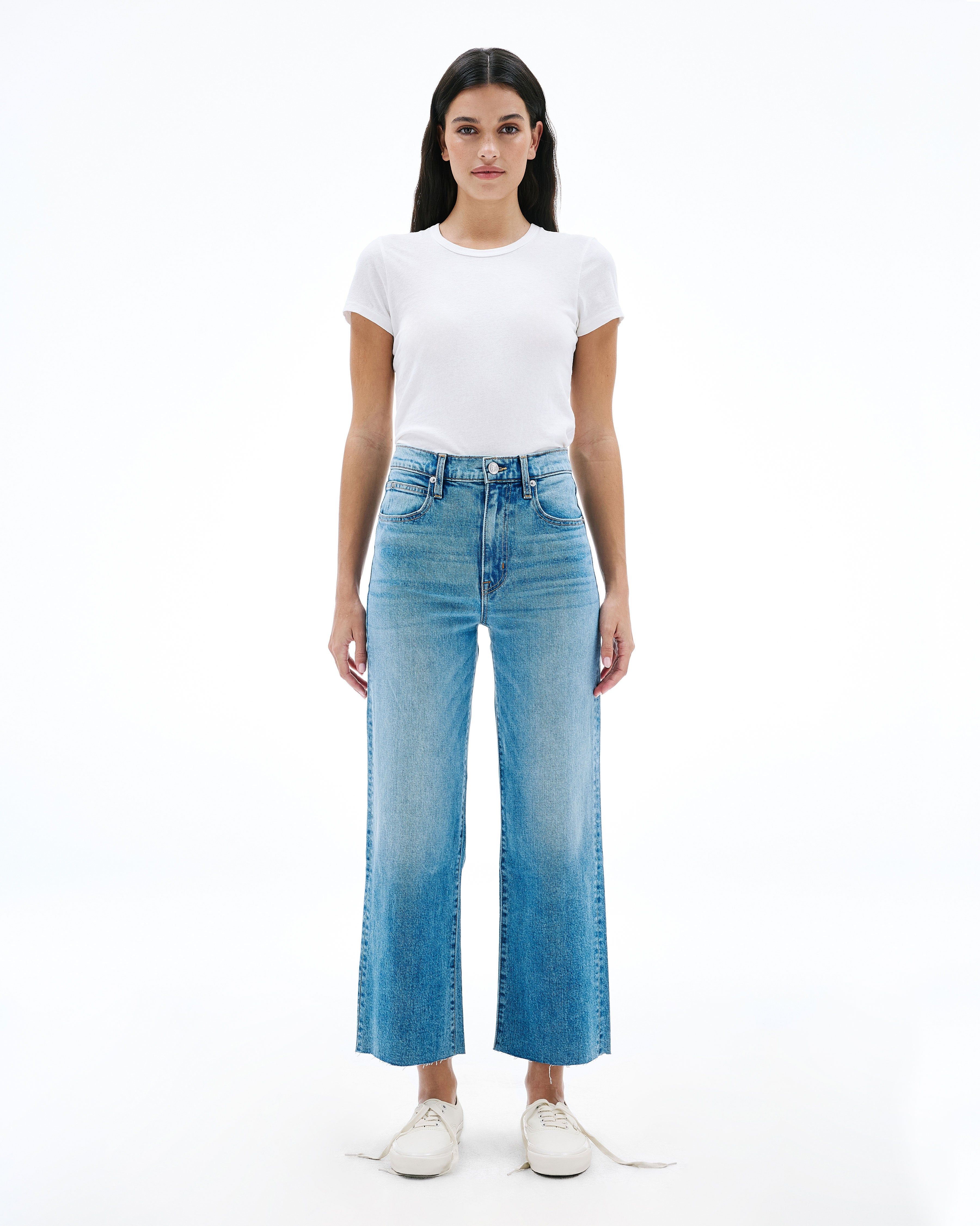 Grace is a SLVRLAKE signature style, offered in a cropped length designed to elongate the leg. Featuring a high-rise waist and wide-leg silhouette, it fits close through the waist and hip before flowing through the leg, finished with a raw hem. An essential style offering versatile styling options.