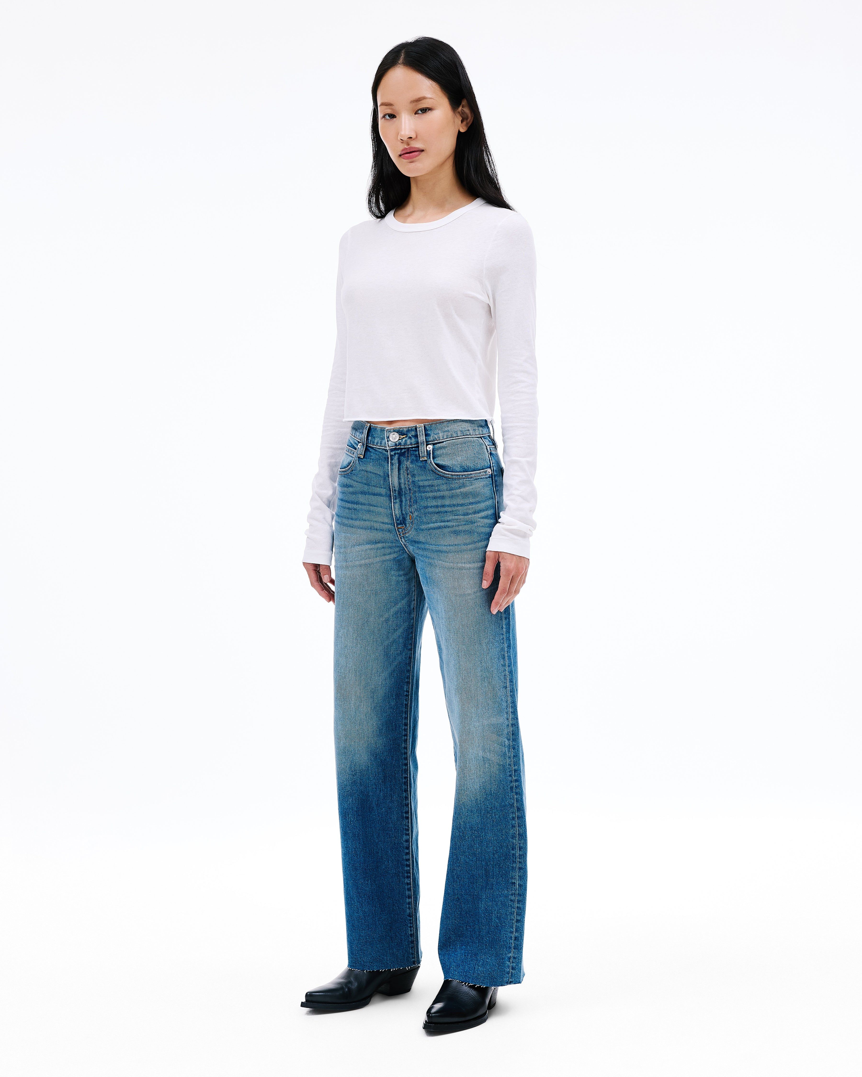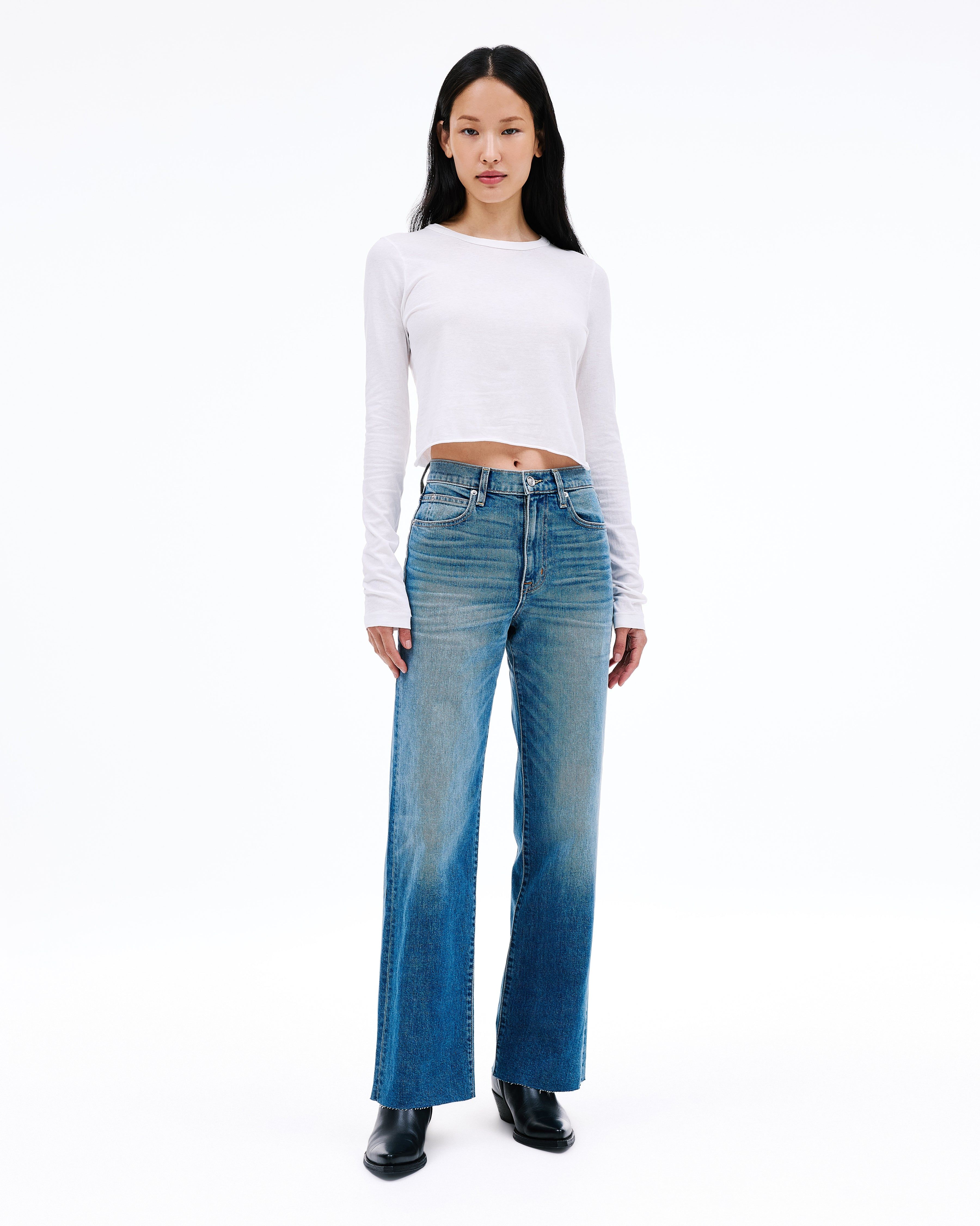Grace is a signature style designed to elongate the leg with a high-rise waist and a playful wide-leg silhouette.