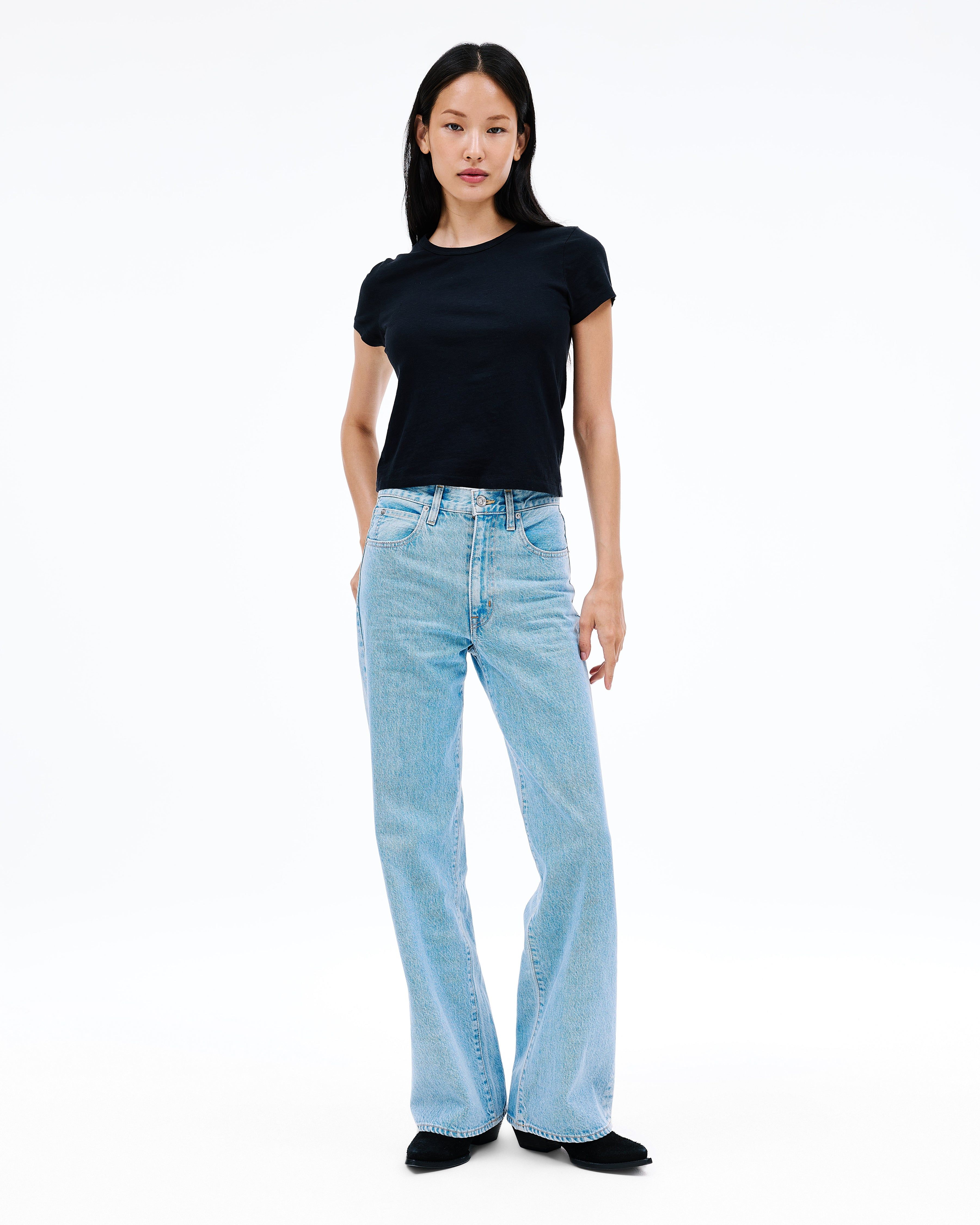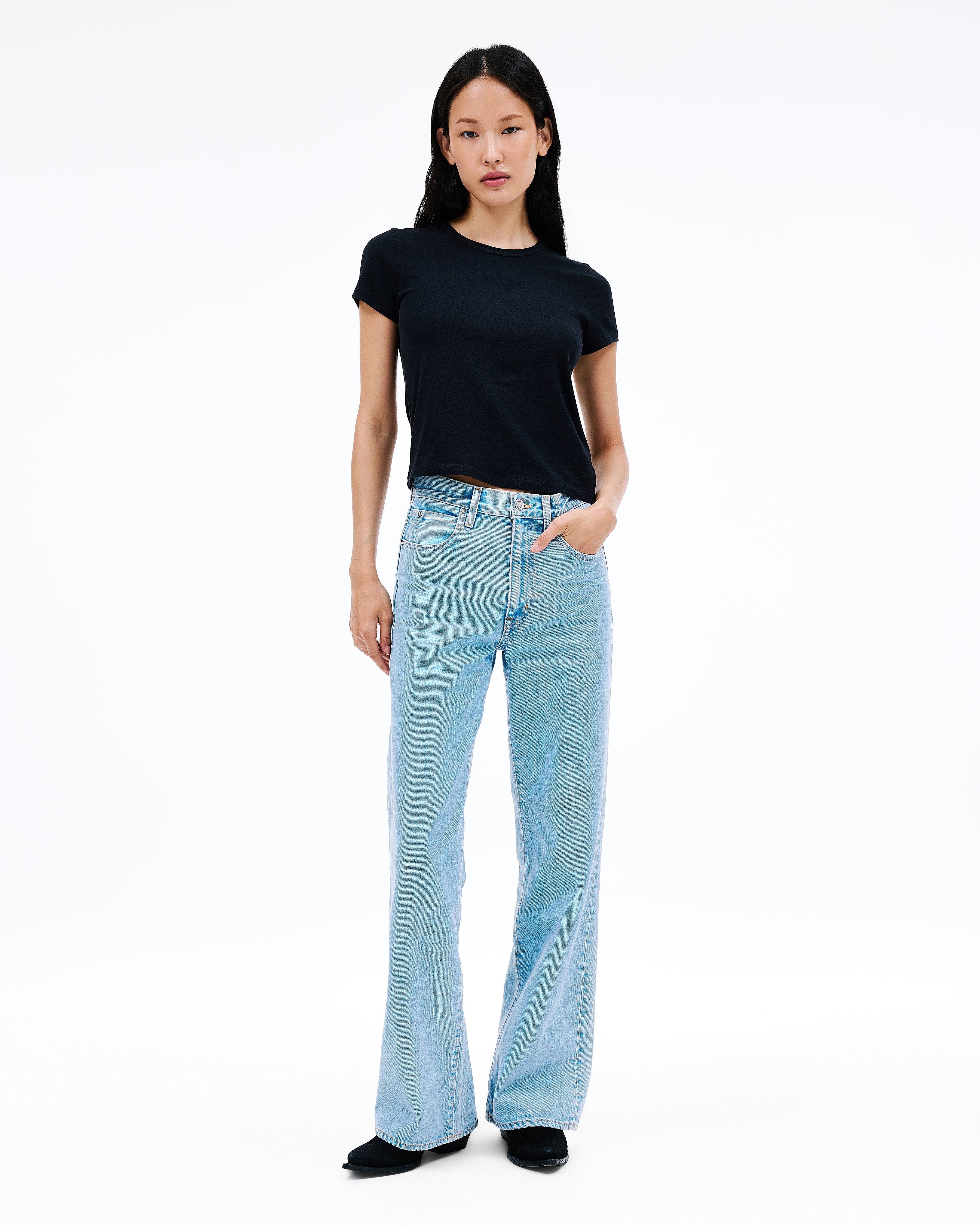 Grace is a SLVRLAKE signature style designed to elongate the leg. Featuring a high-rise waist and wide-leg silhouette, it fits close through the waist and hip before flowing through the leg, finished with a raw hem. An essential style offering versatile styling options.