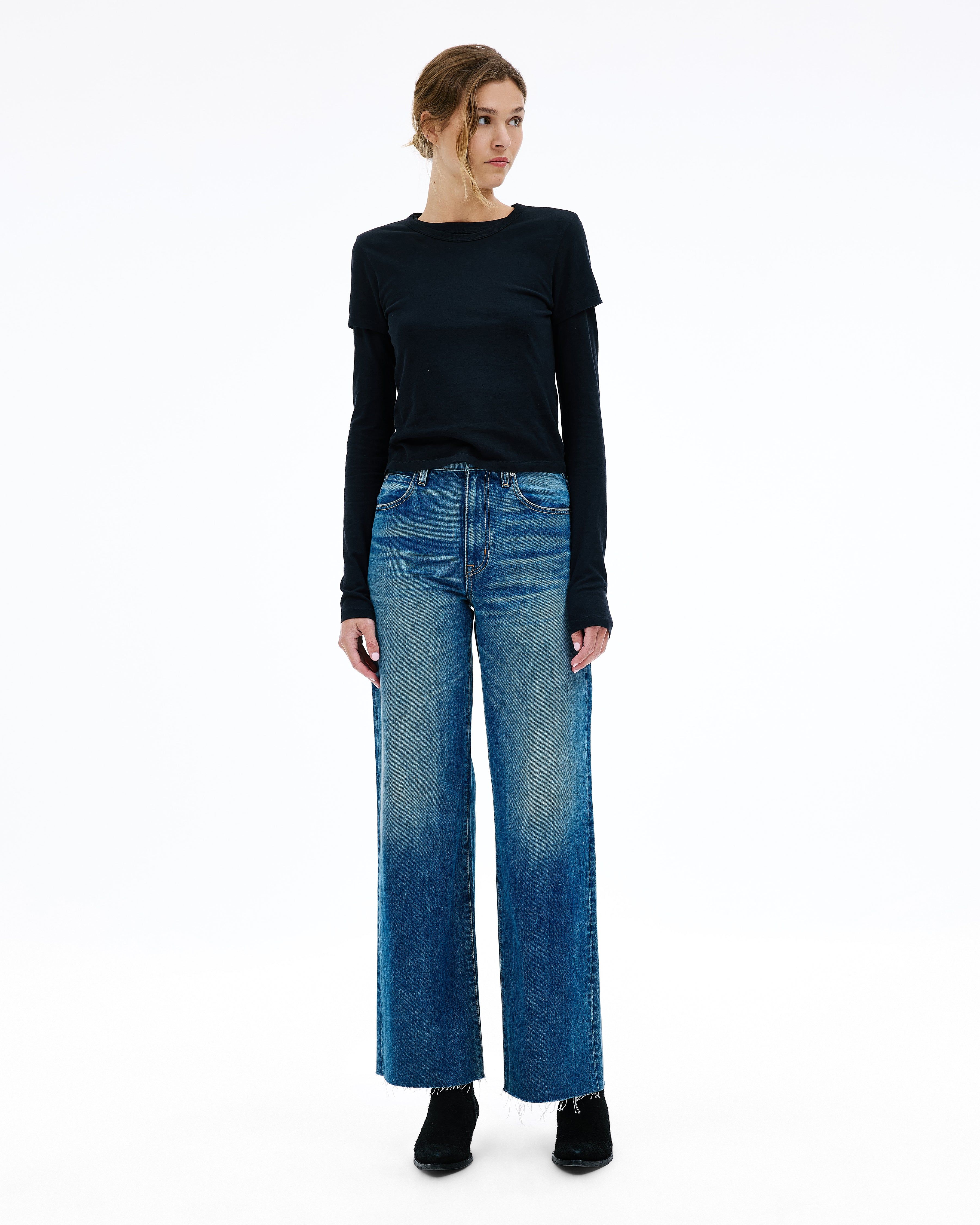 Grace is a signature style designed to elongate the leg with a high-rise waist and a playful wide-leg silhouette.