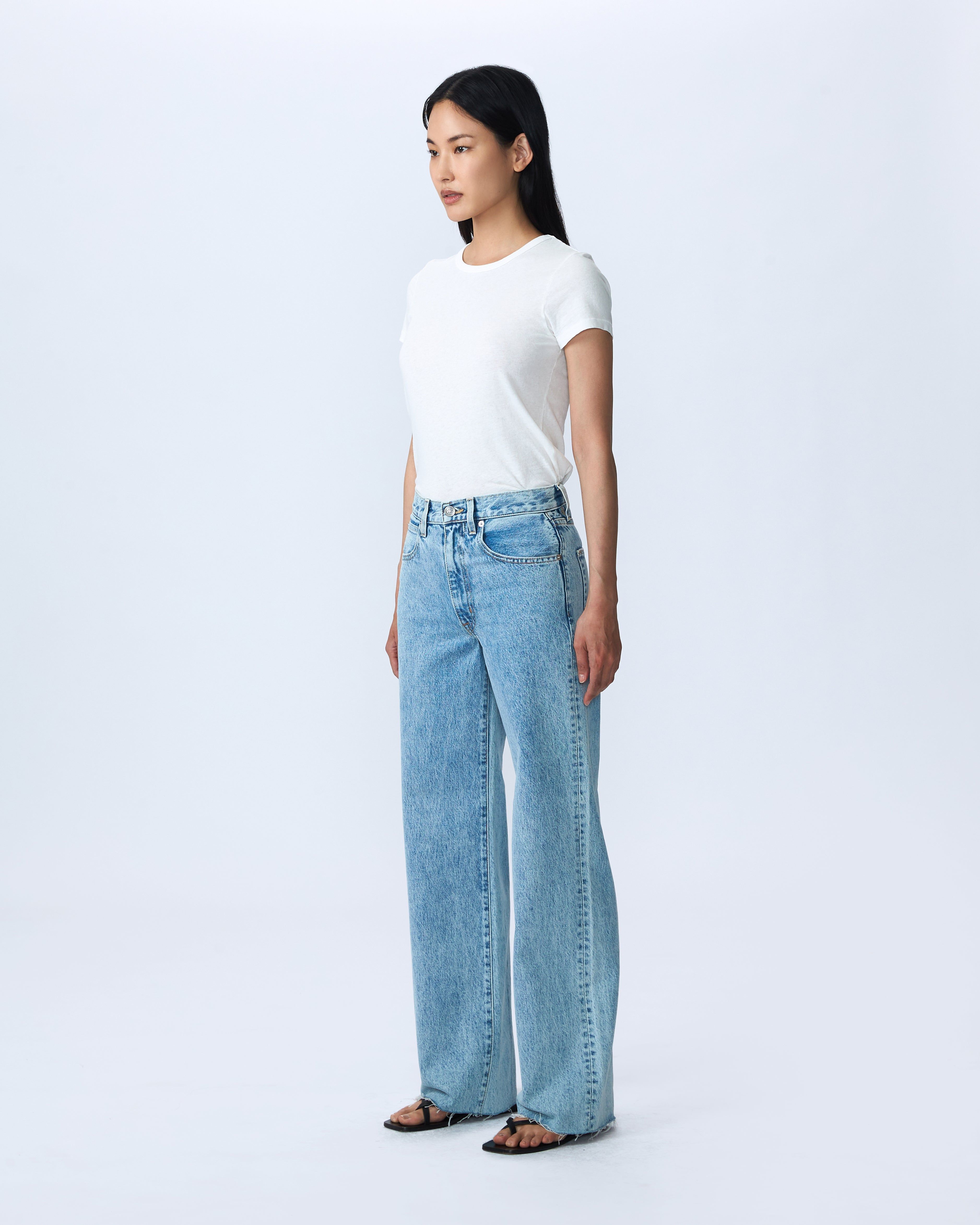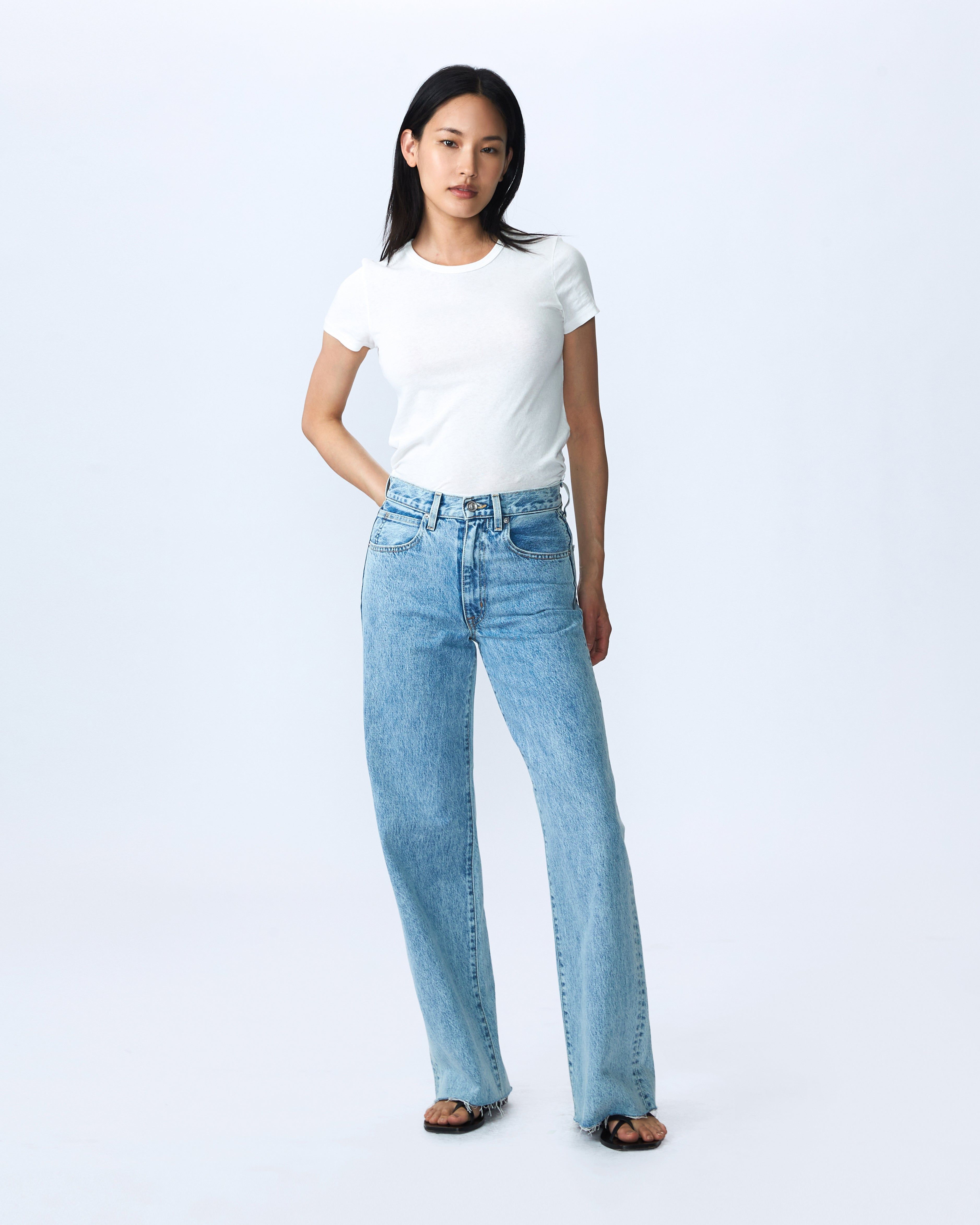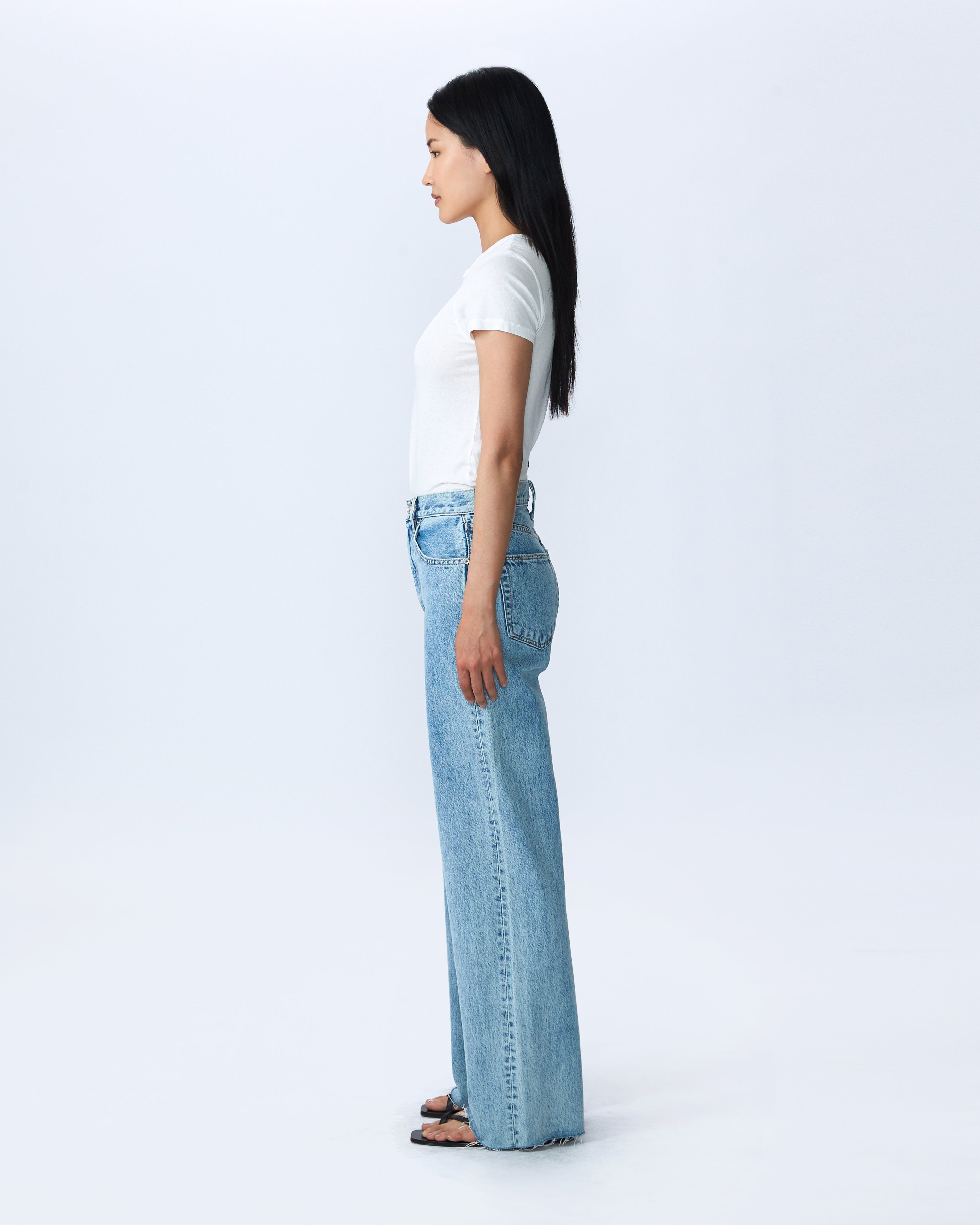 Grace is a signature style designed to elongate the leg with a high-rise waist and a playful wide-leg silhouette.