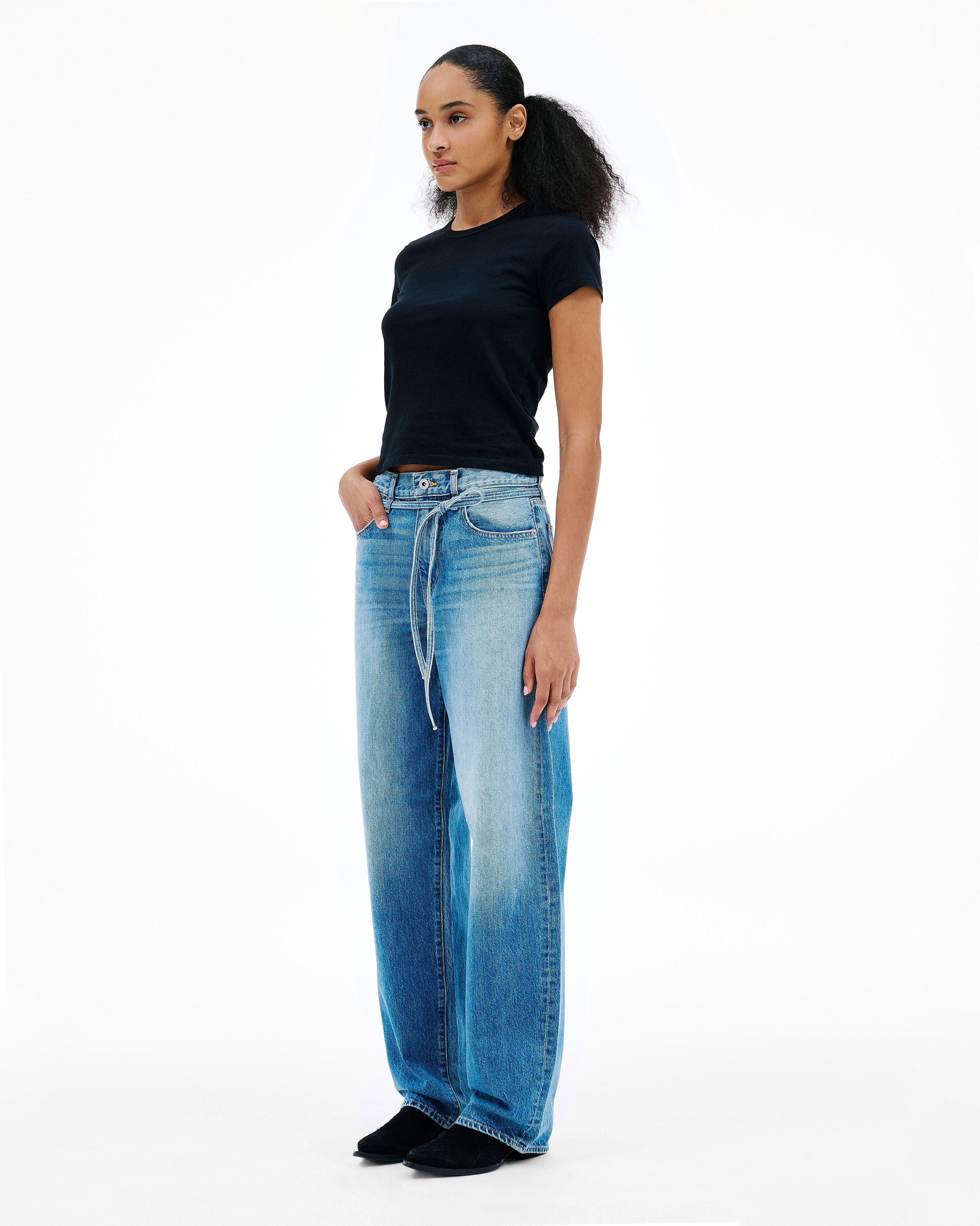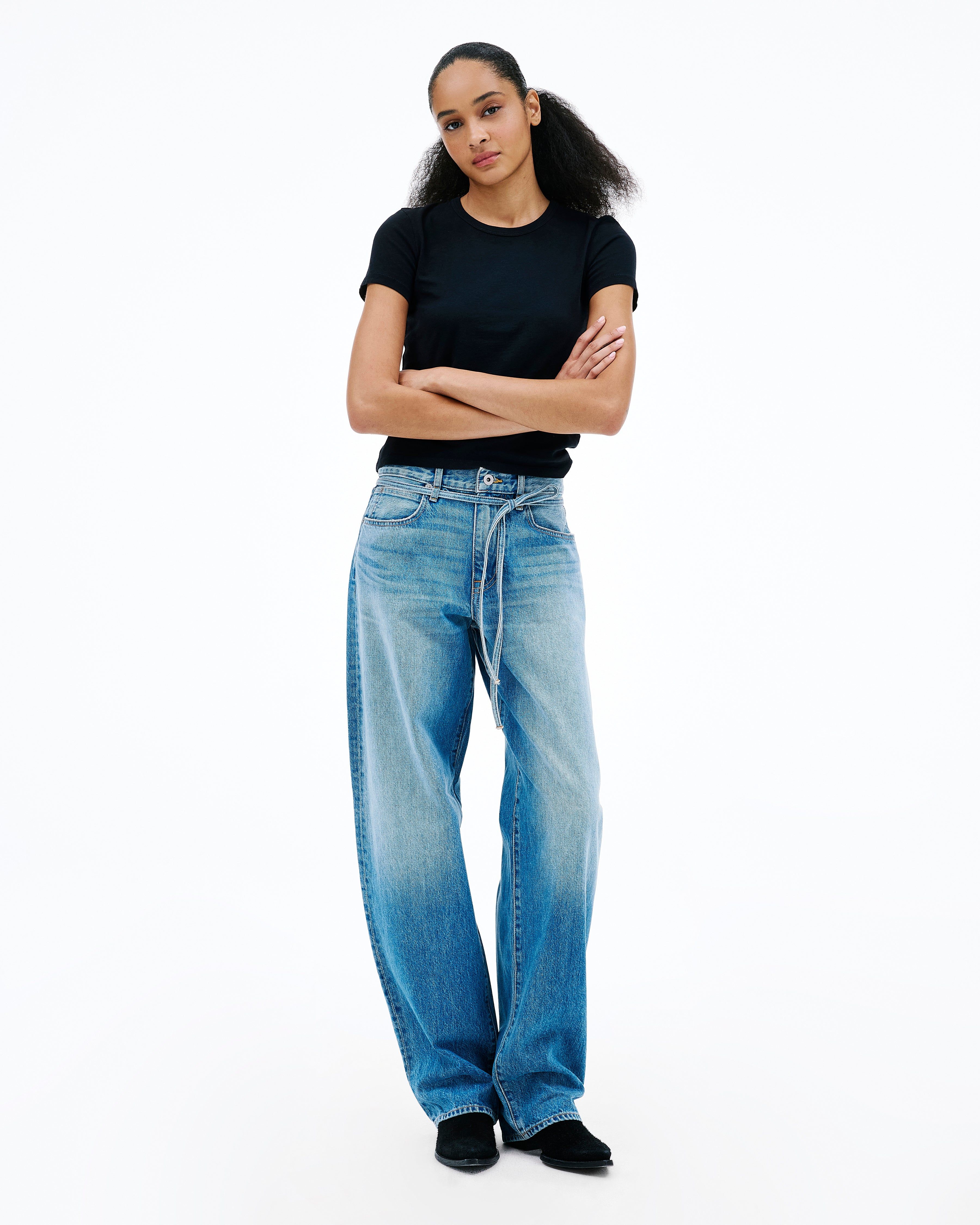 Hailey features a relaxed curved leg that creates a polished, effortless silhouette. Designed with a low rise and finished with an adjustable belt for a refined yet versatile fit.
