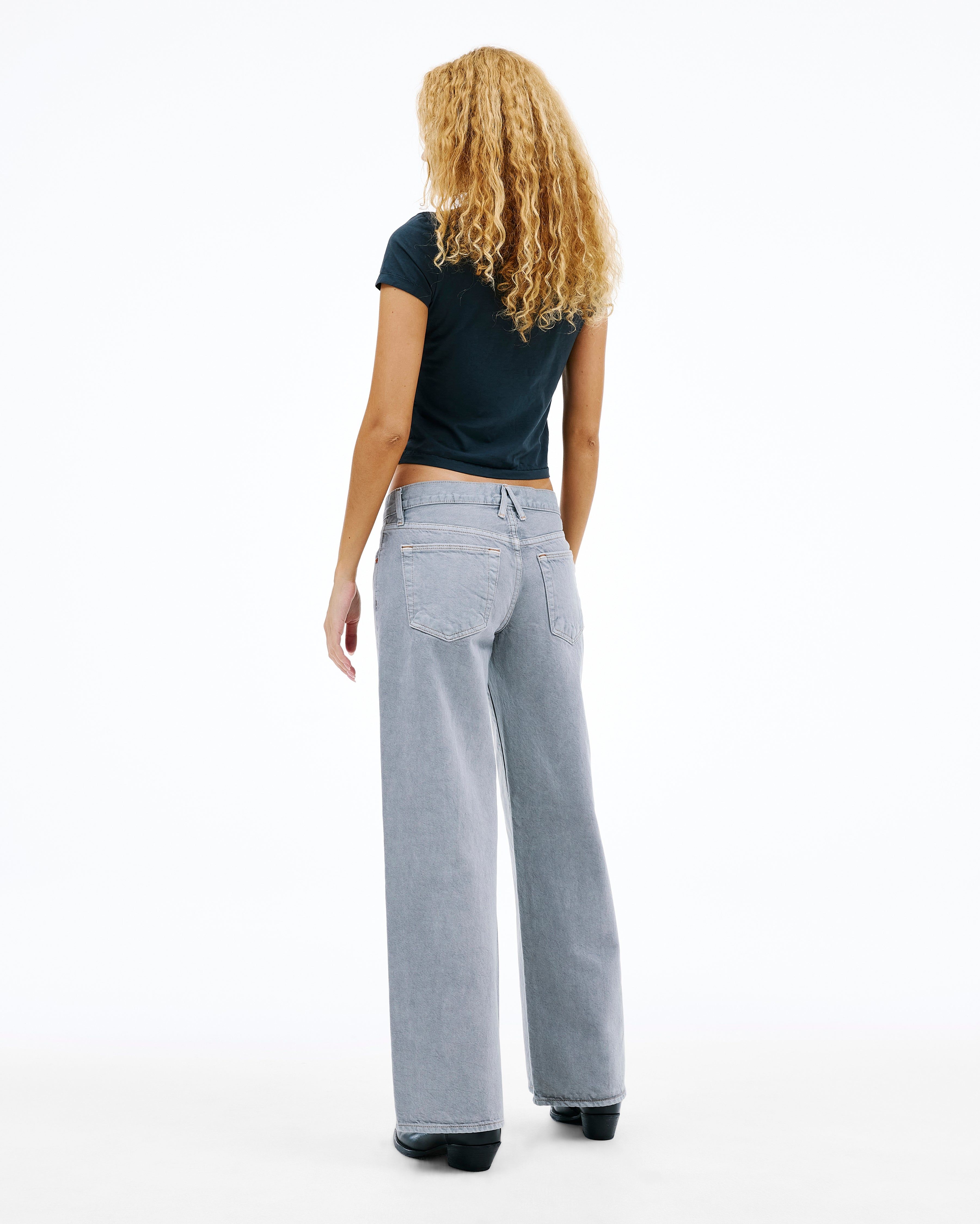 Lexi jean is featured in relaxed silhouette with a low-rise waist and a softly curved wide leg. Designed to sit lower on the hips, this style offers an elevated take on casual denim.