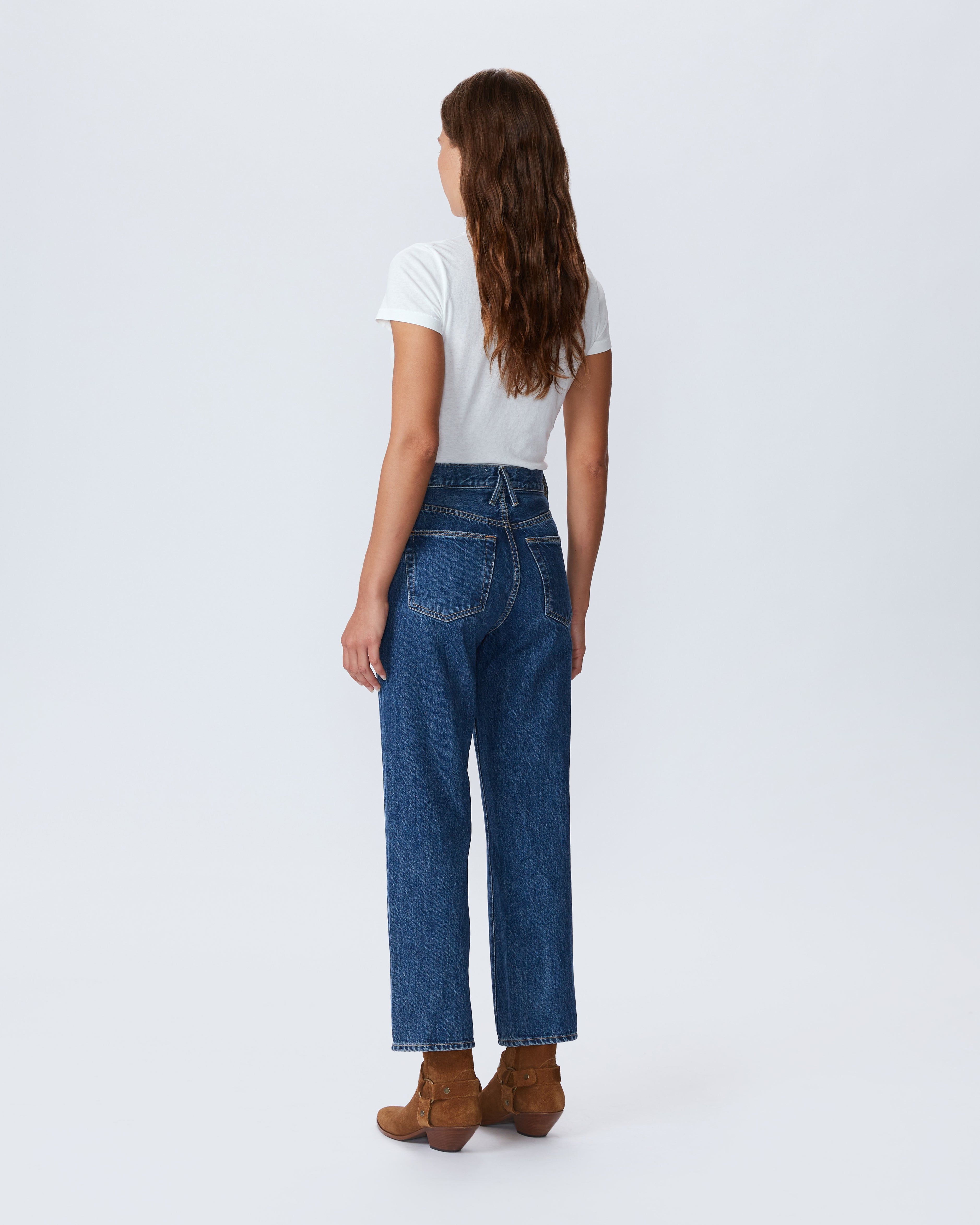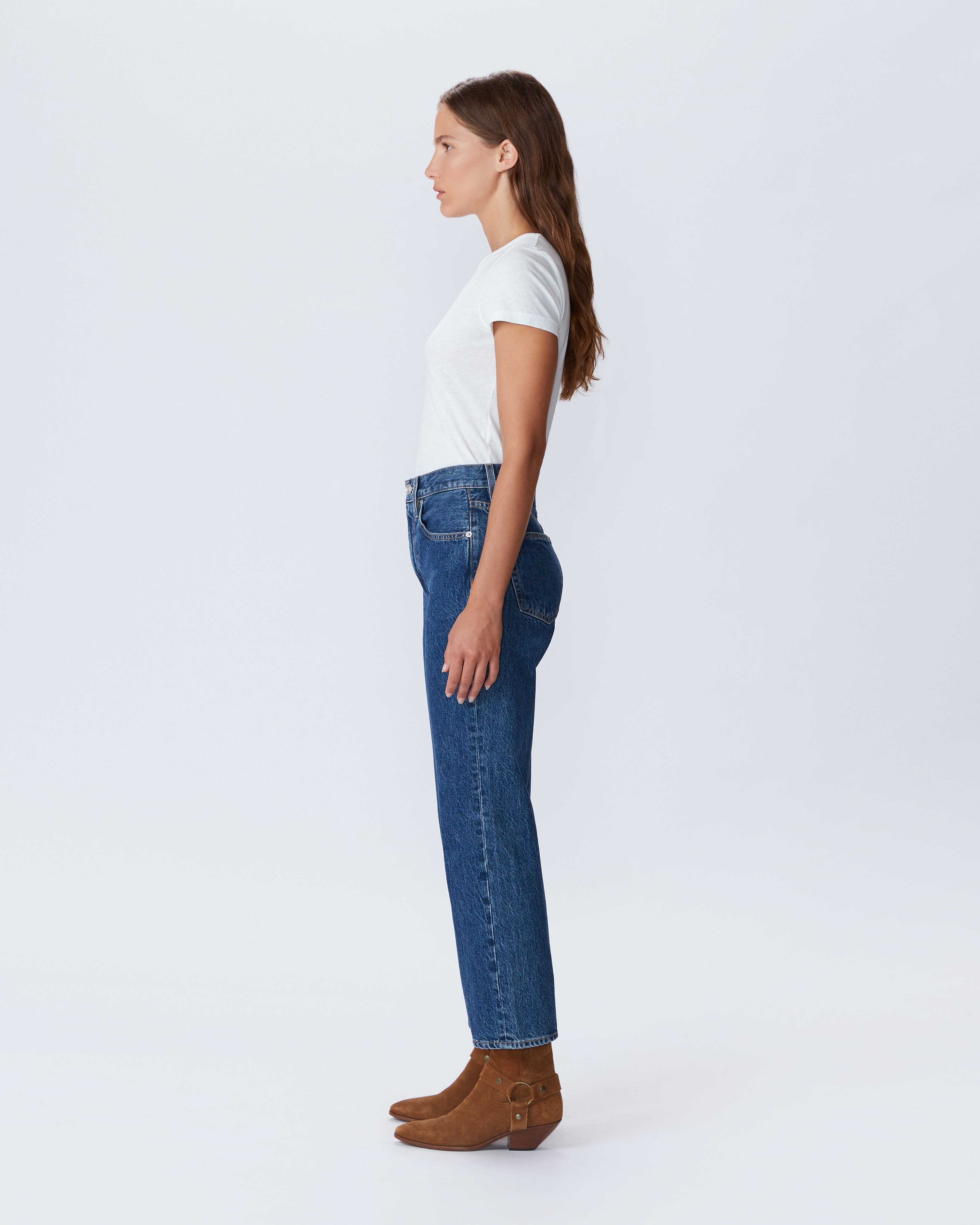 SLVRLAKE's most coveted jean is featured in a cropped length. This signature style is designed to fit and flatter the feminine form, visually elongating the leg with a straight leg silhouette.