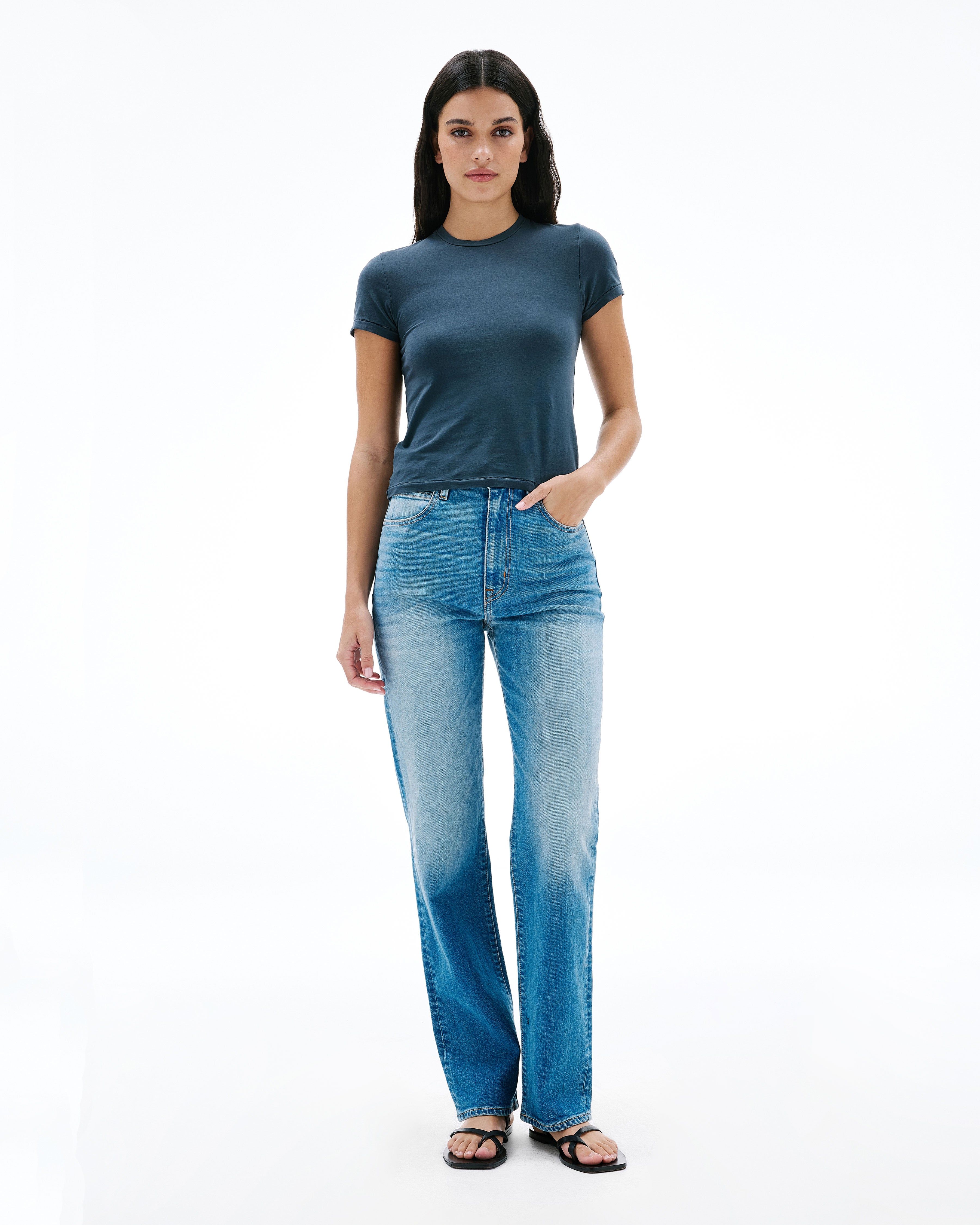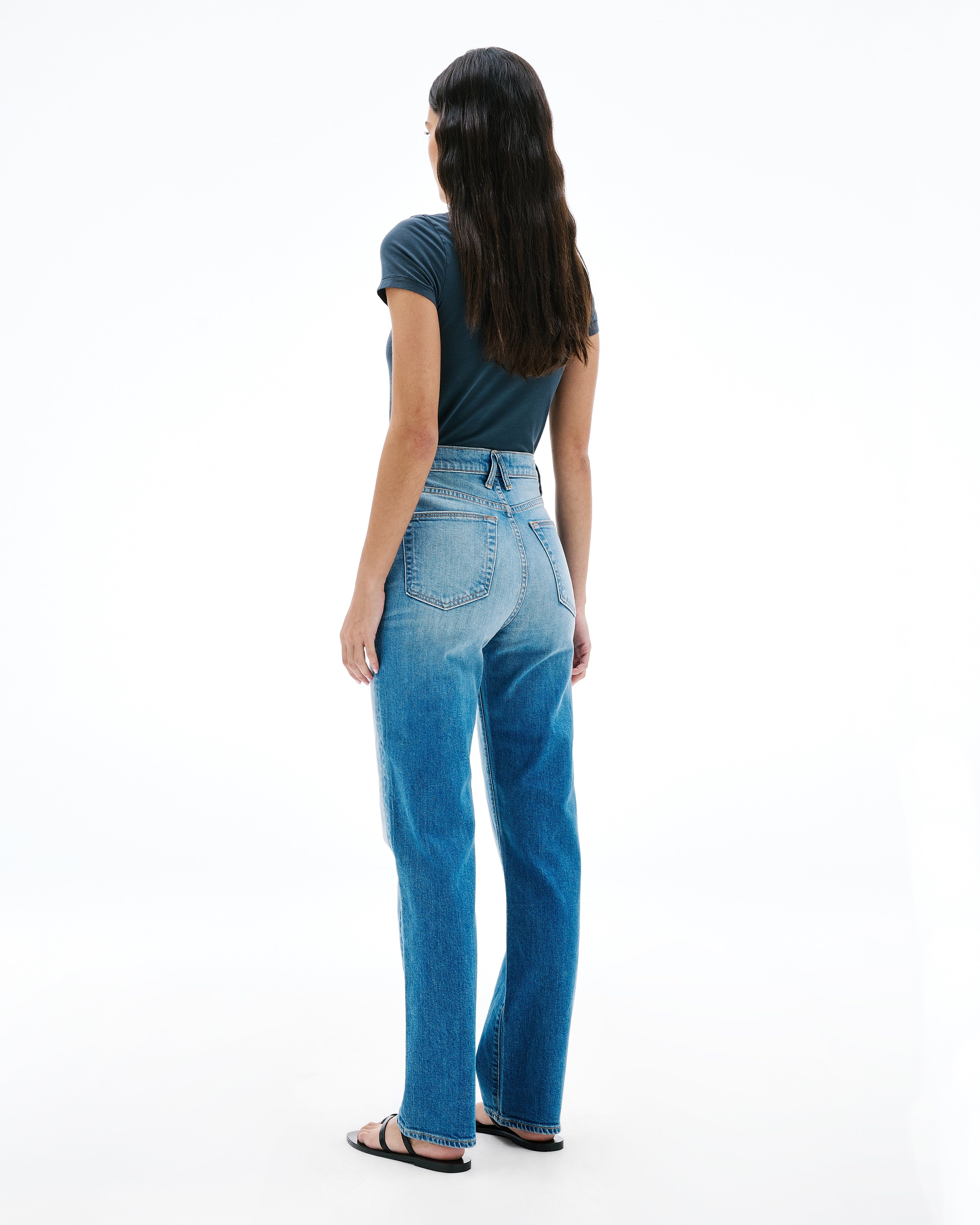 This signature style is designed to fit and flatter the feminine form, visually elongating the leg with a straight leg silhouette and high rise.