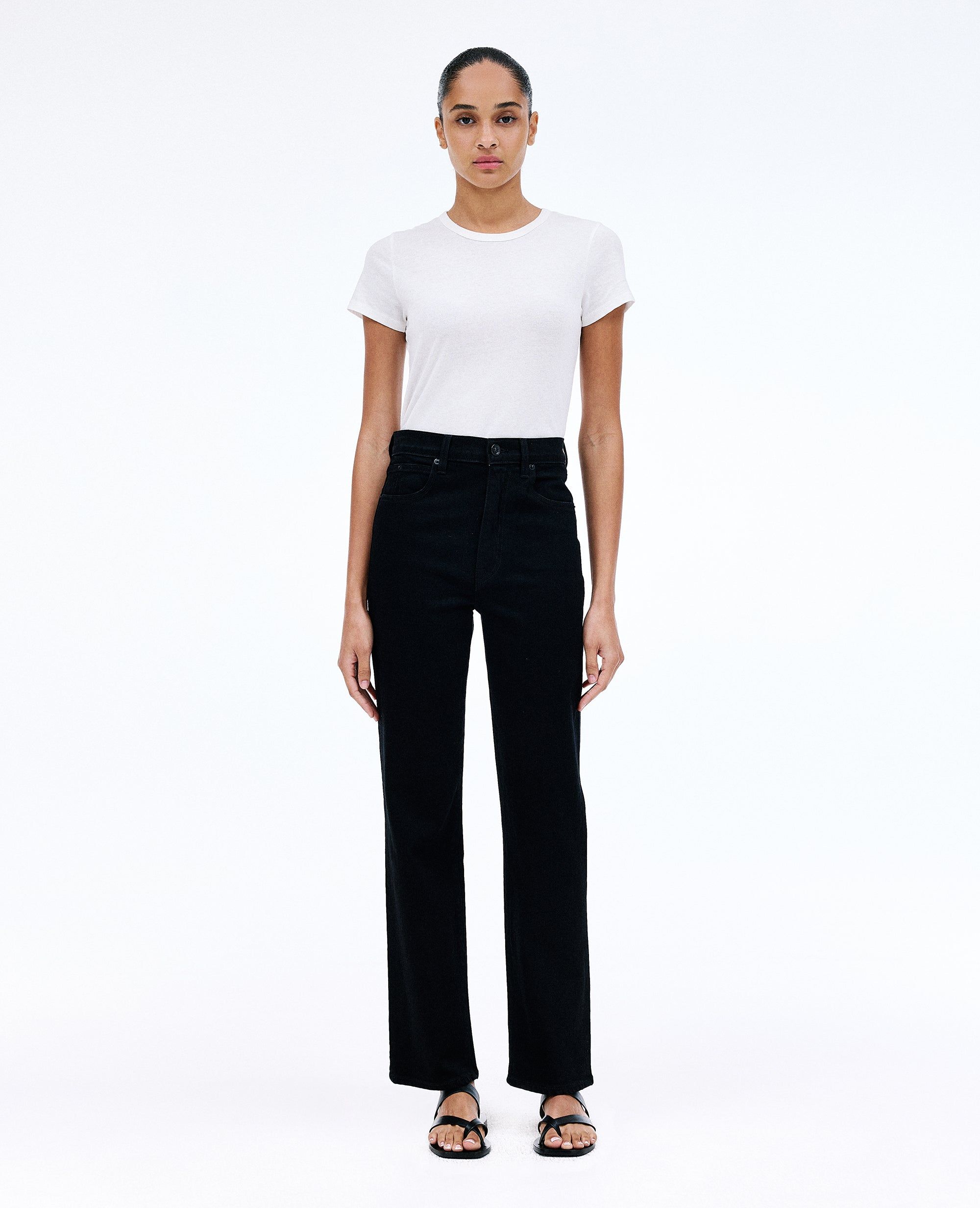 This signature style is designed to fit and flatter the feminine form, visually elongating the leg with a straight leg silhouette and high rise.