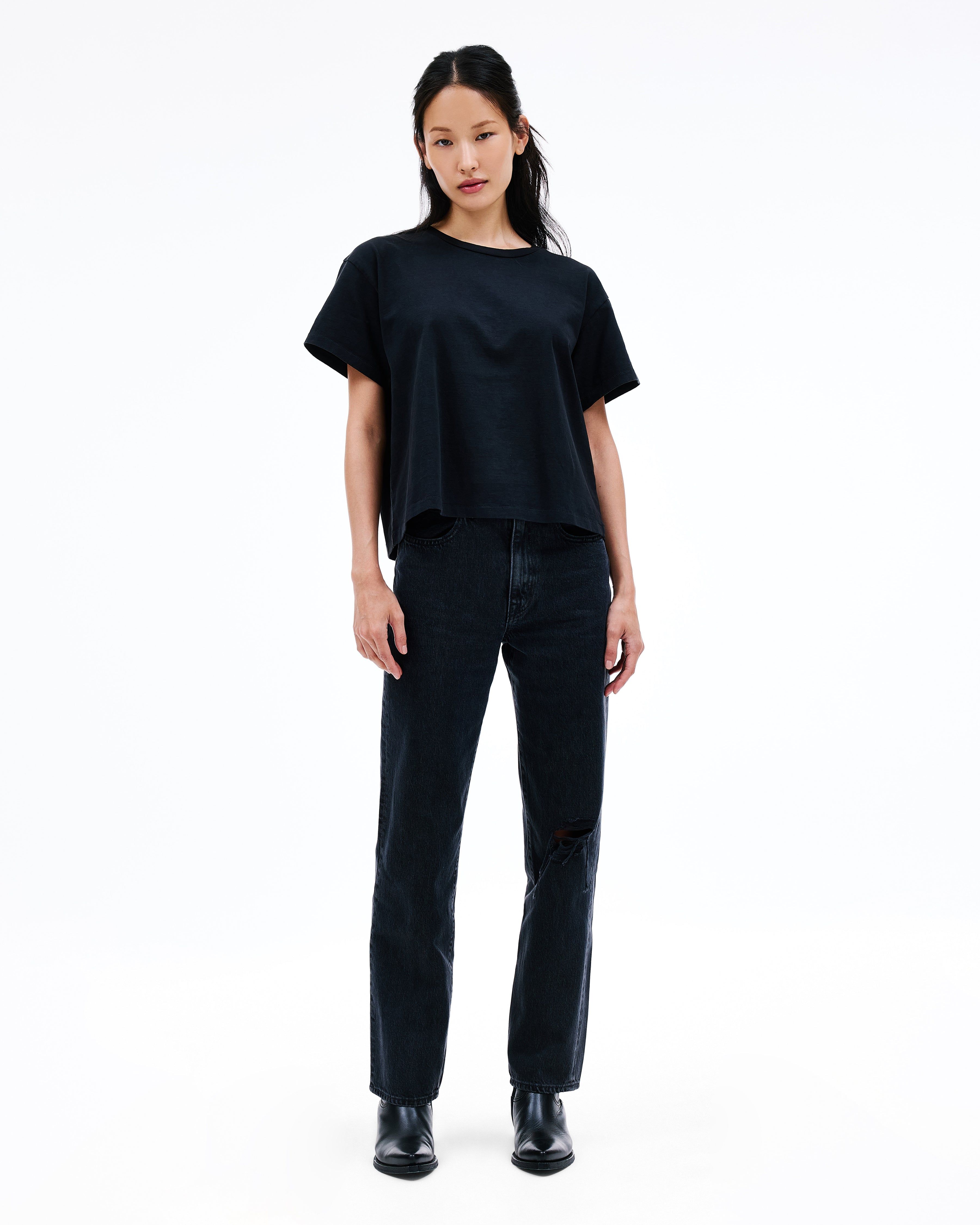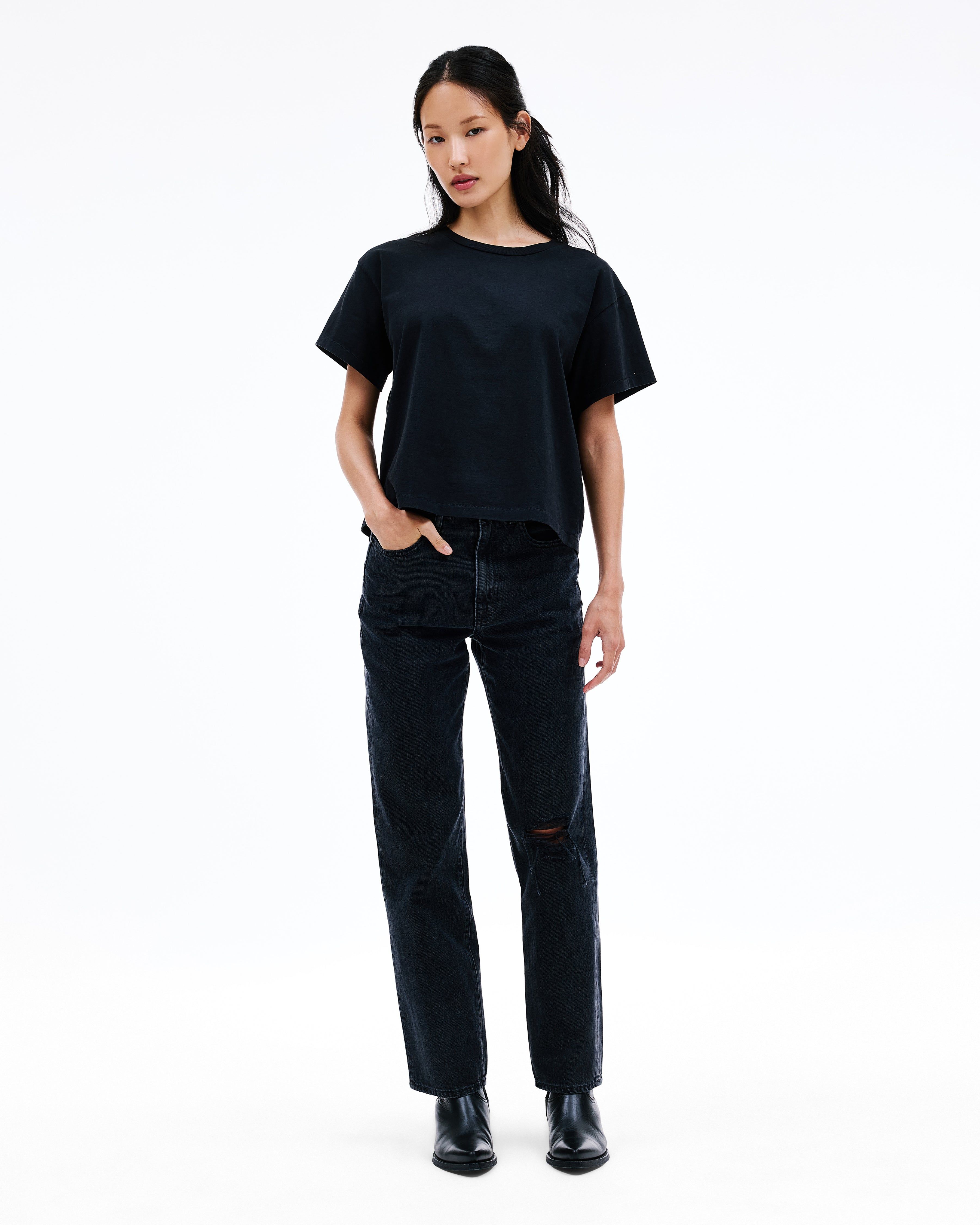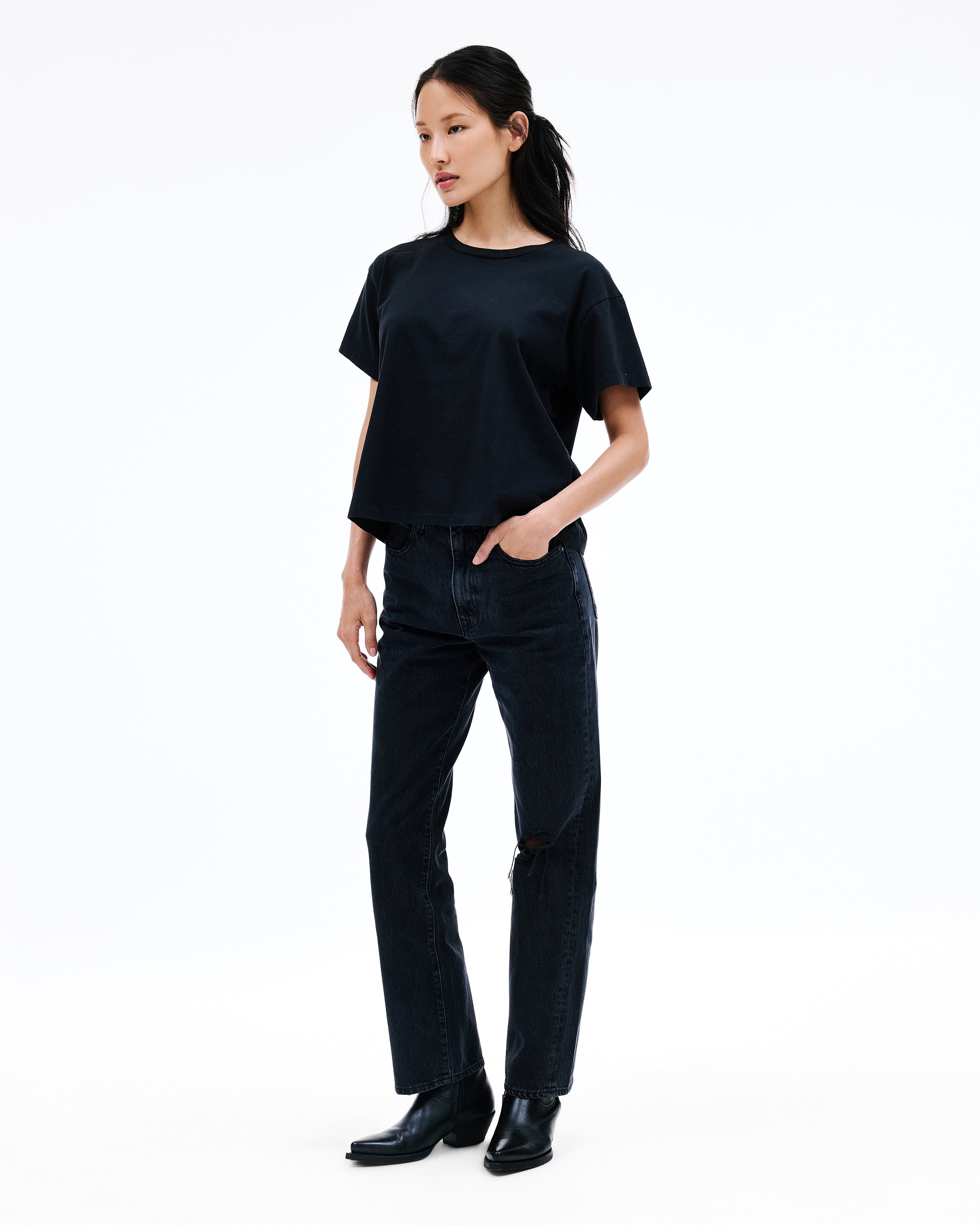 This signature style is designed to fit and flatter the feminine form, visually elongating the leg with a straight leg silhouette and high rise.