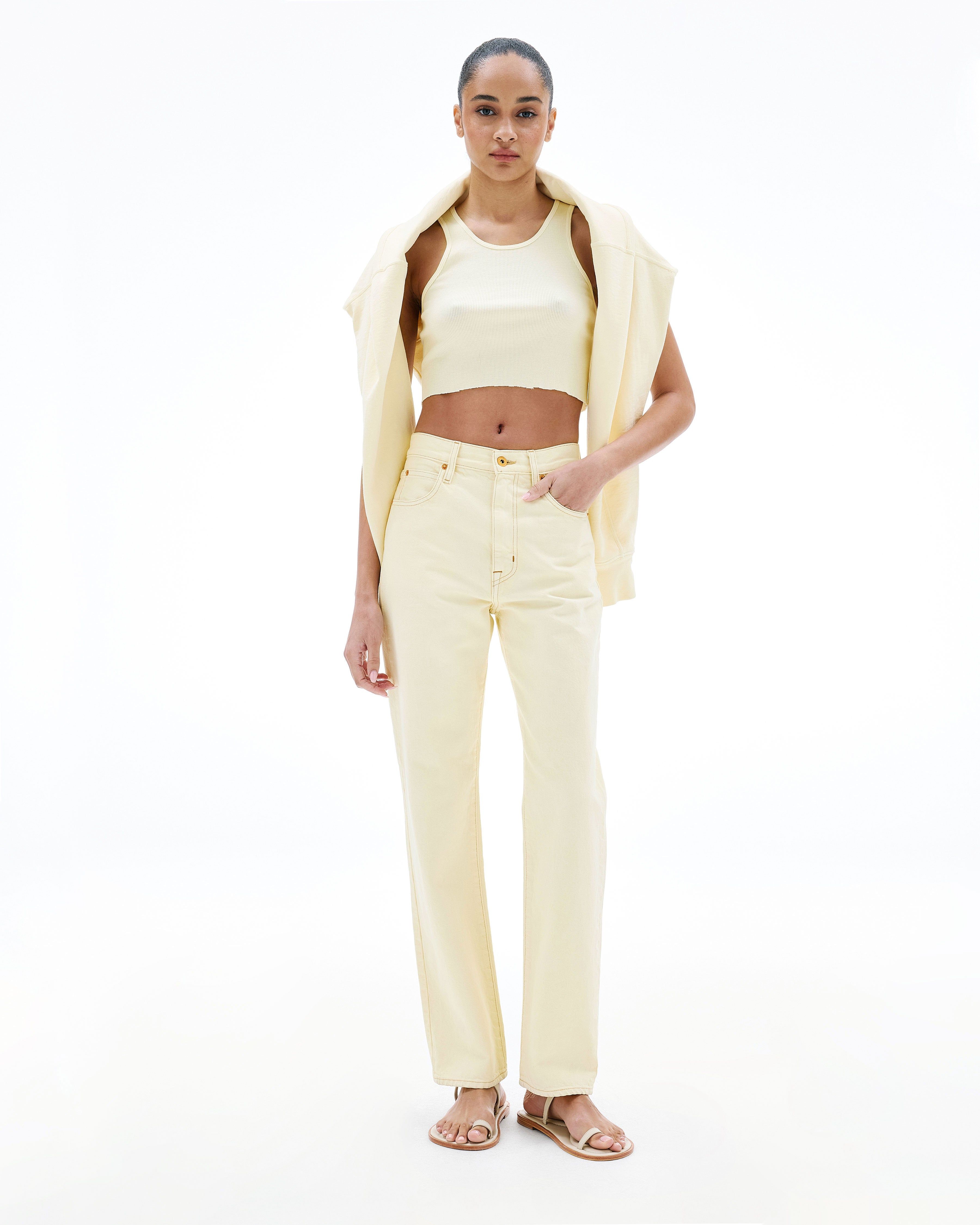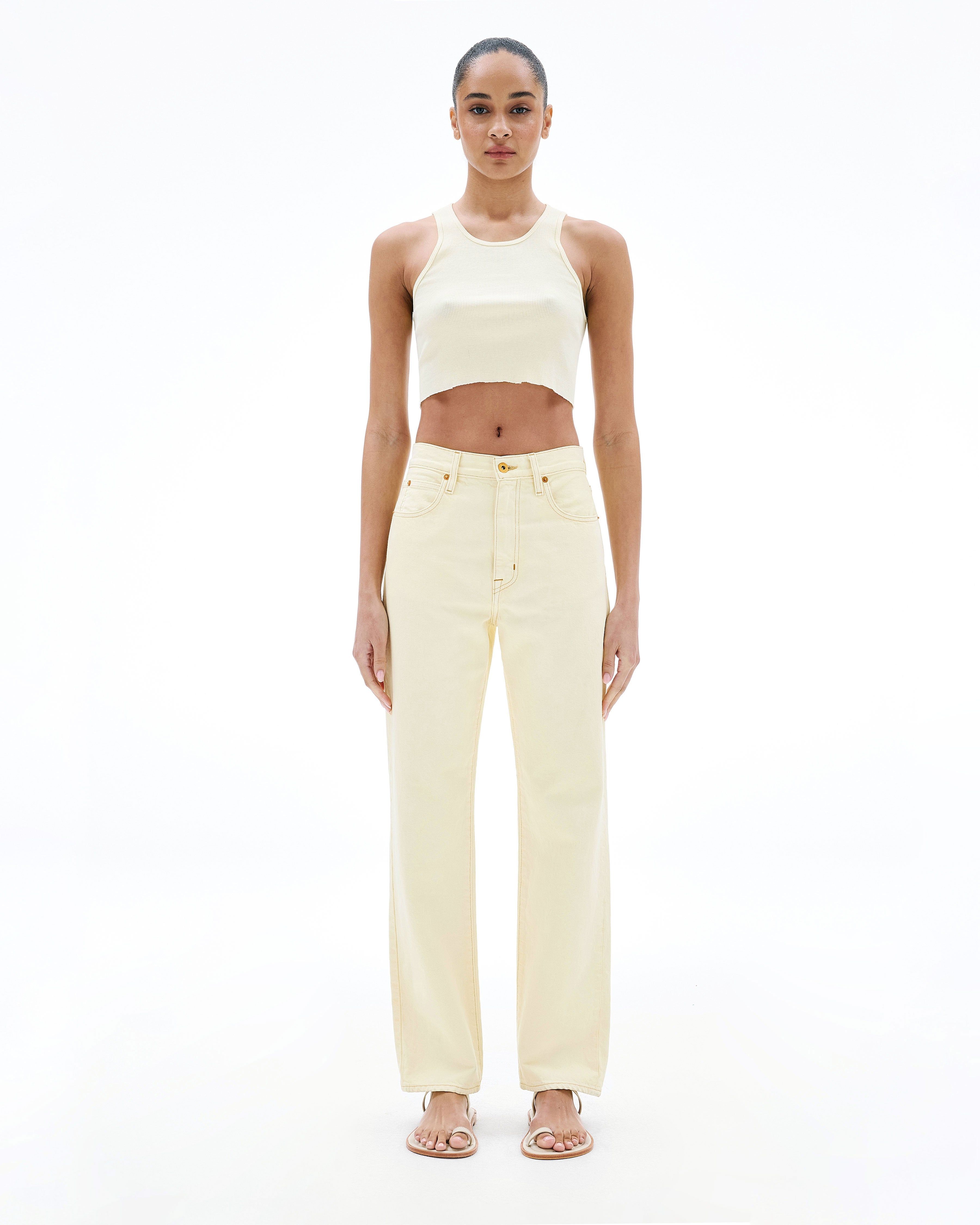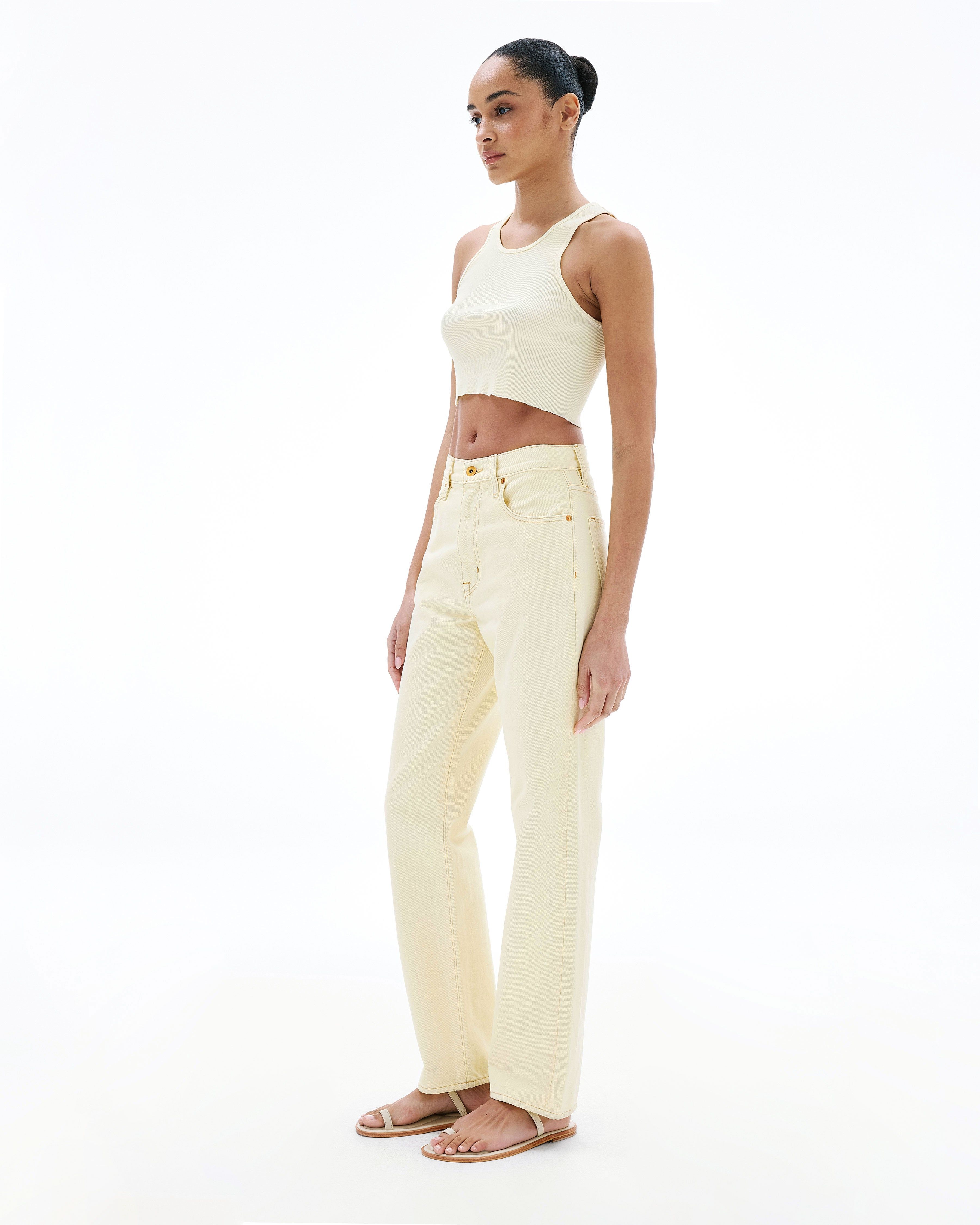 This signature style is designed to fit and flatter the feminine form, visually elongating the leg with a straight leg silhouette and high rise.