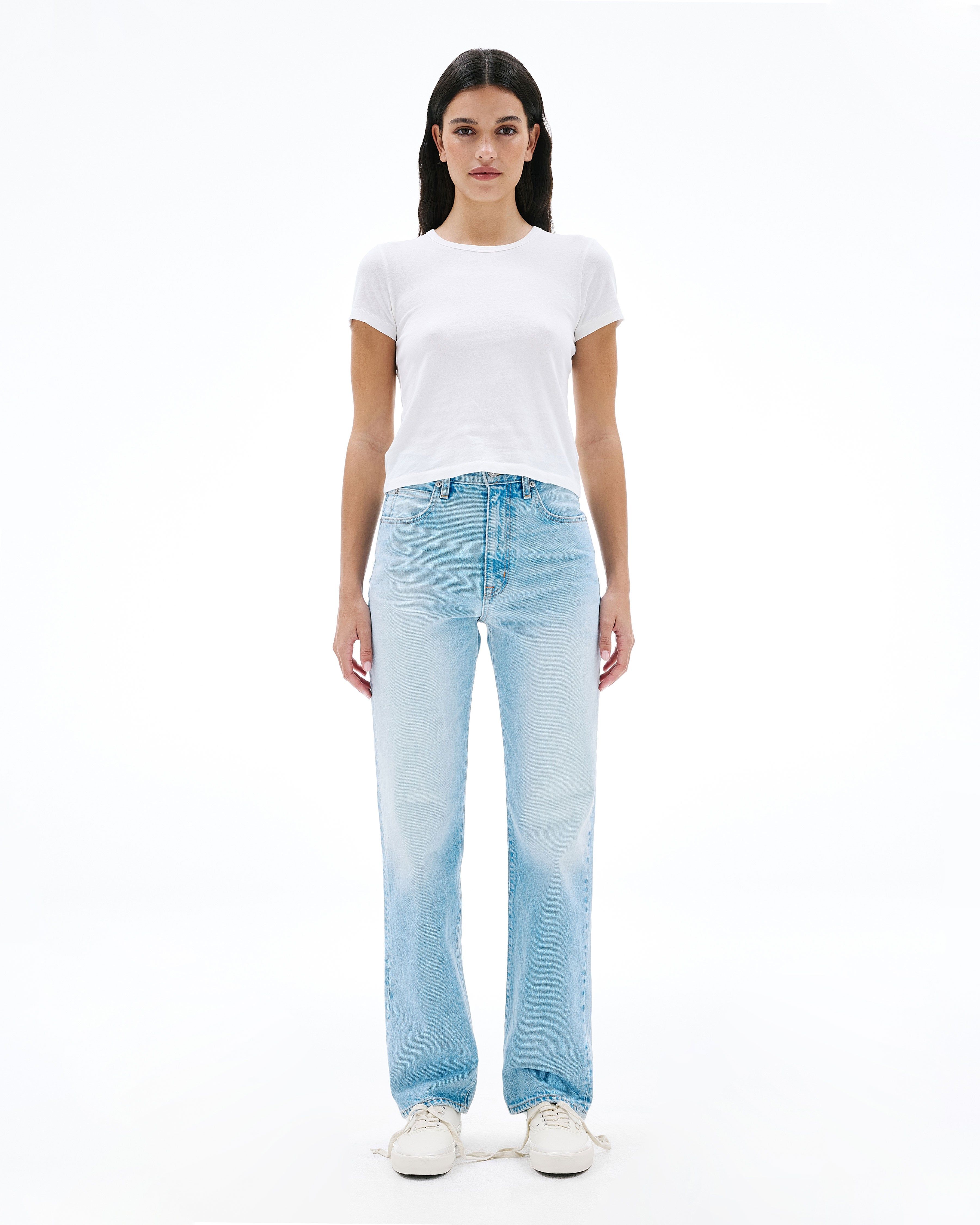 This signature style is designed to fit and flatter the feminine form, visually elongating the leg with a straight leg silhouette and high rise.