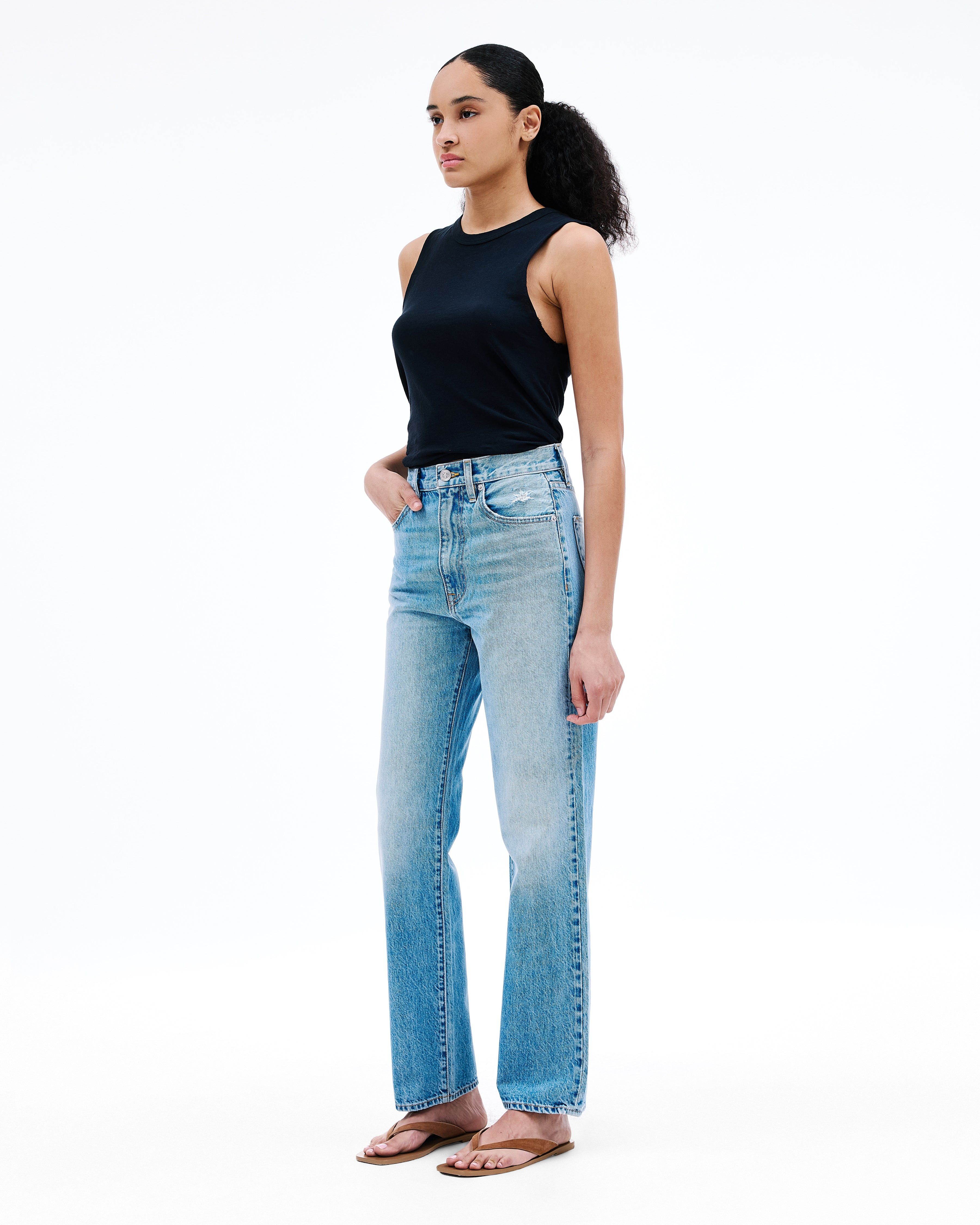 This signature style is designed to fit and flatter the feminine form, visually elongating the leg with a straight leg silhouette and high rise.