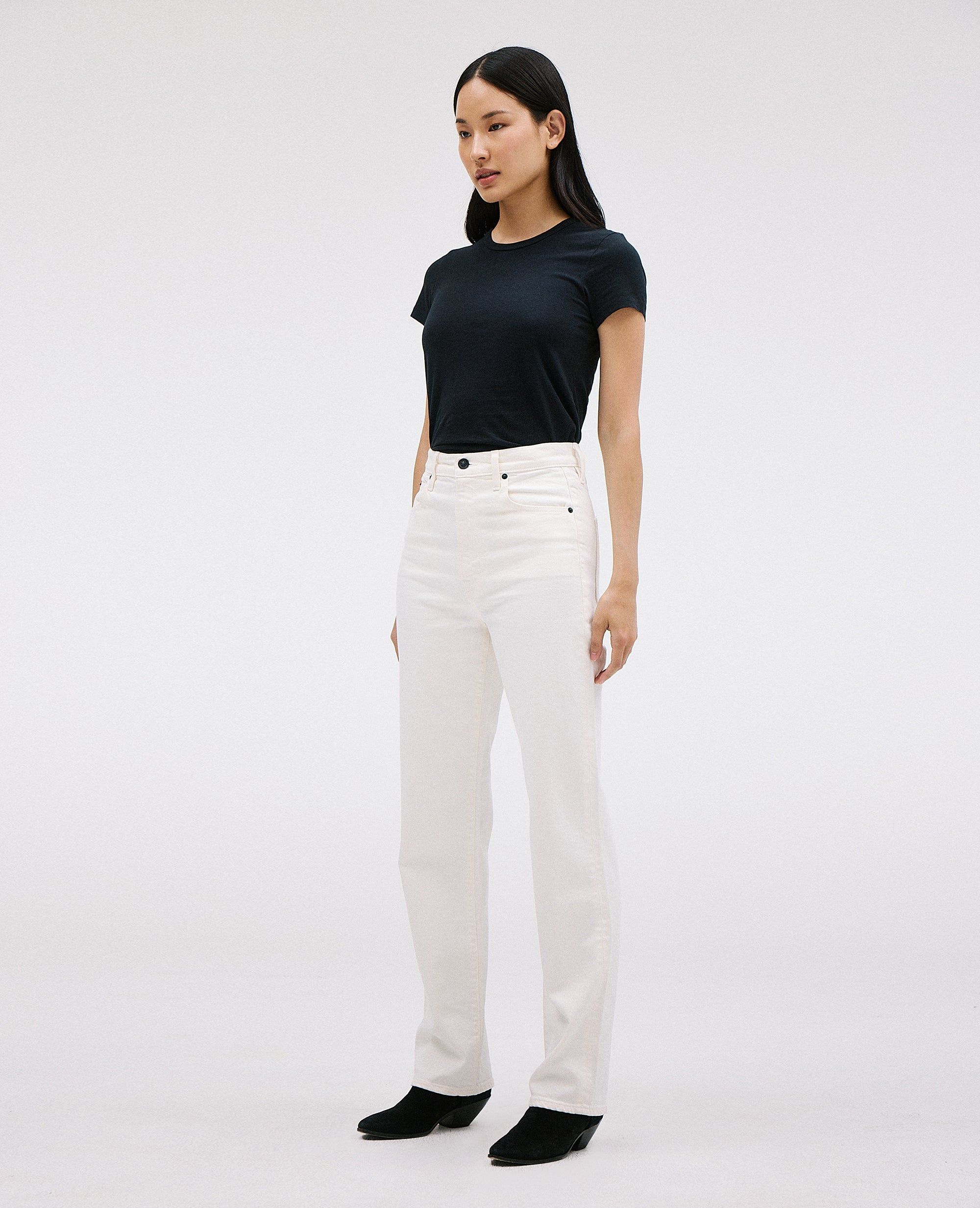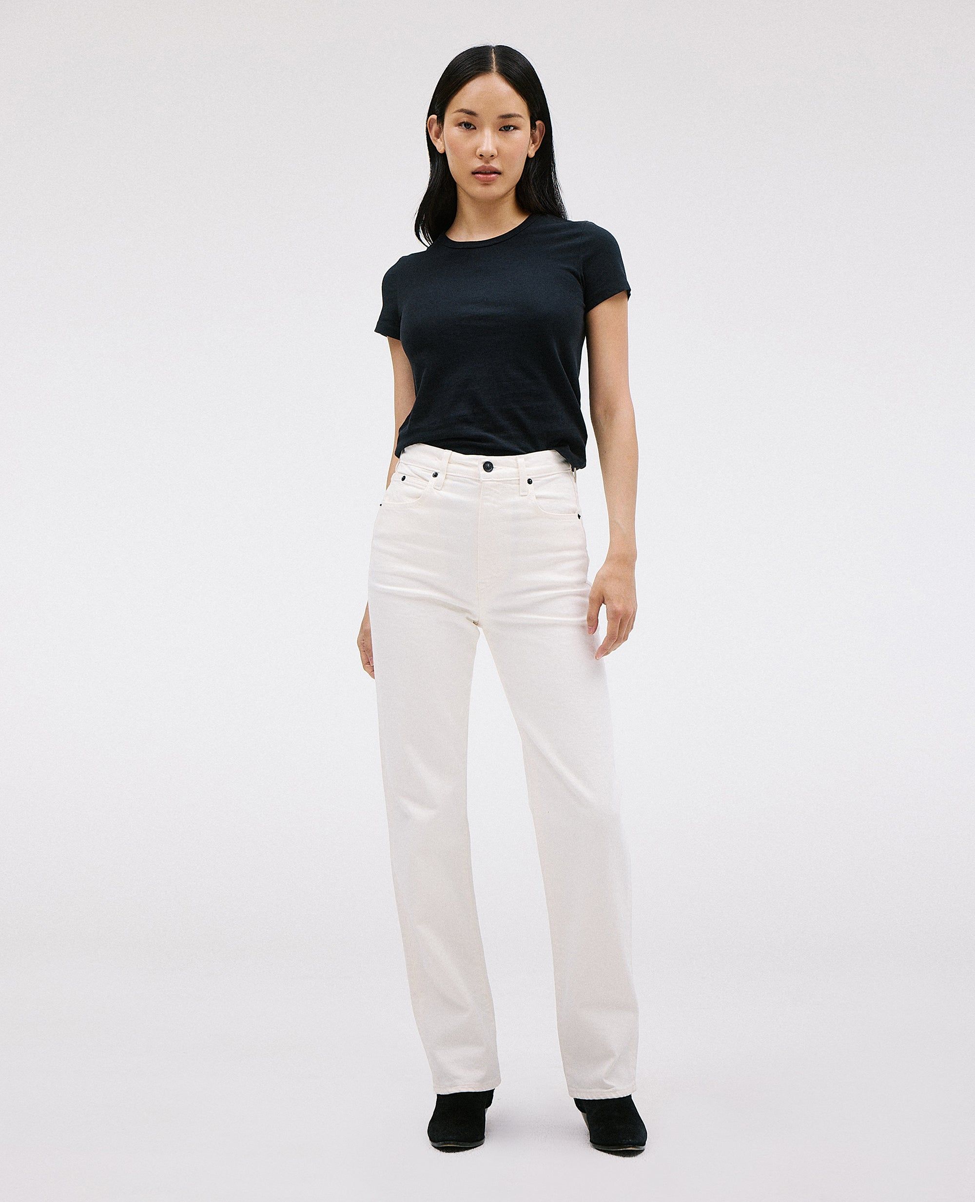 This signature style is designed to fit and flatter the feminine form, visually elongating the leg with a straight leg silhouette and high rise.