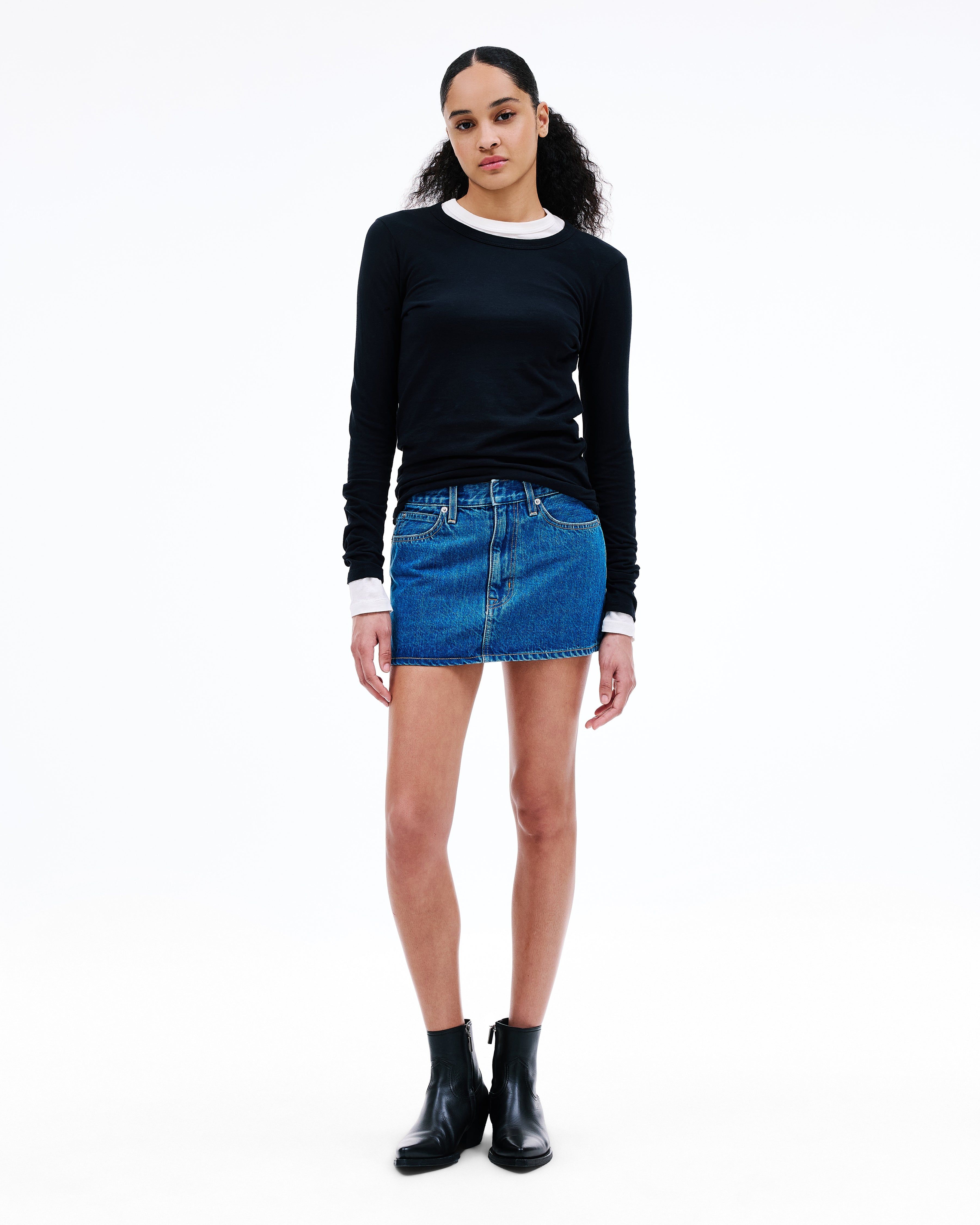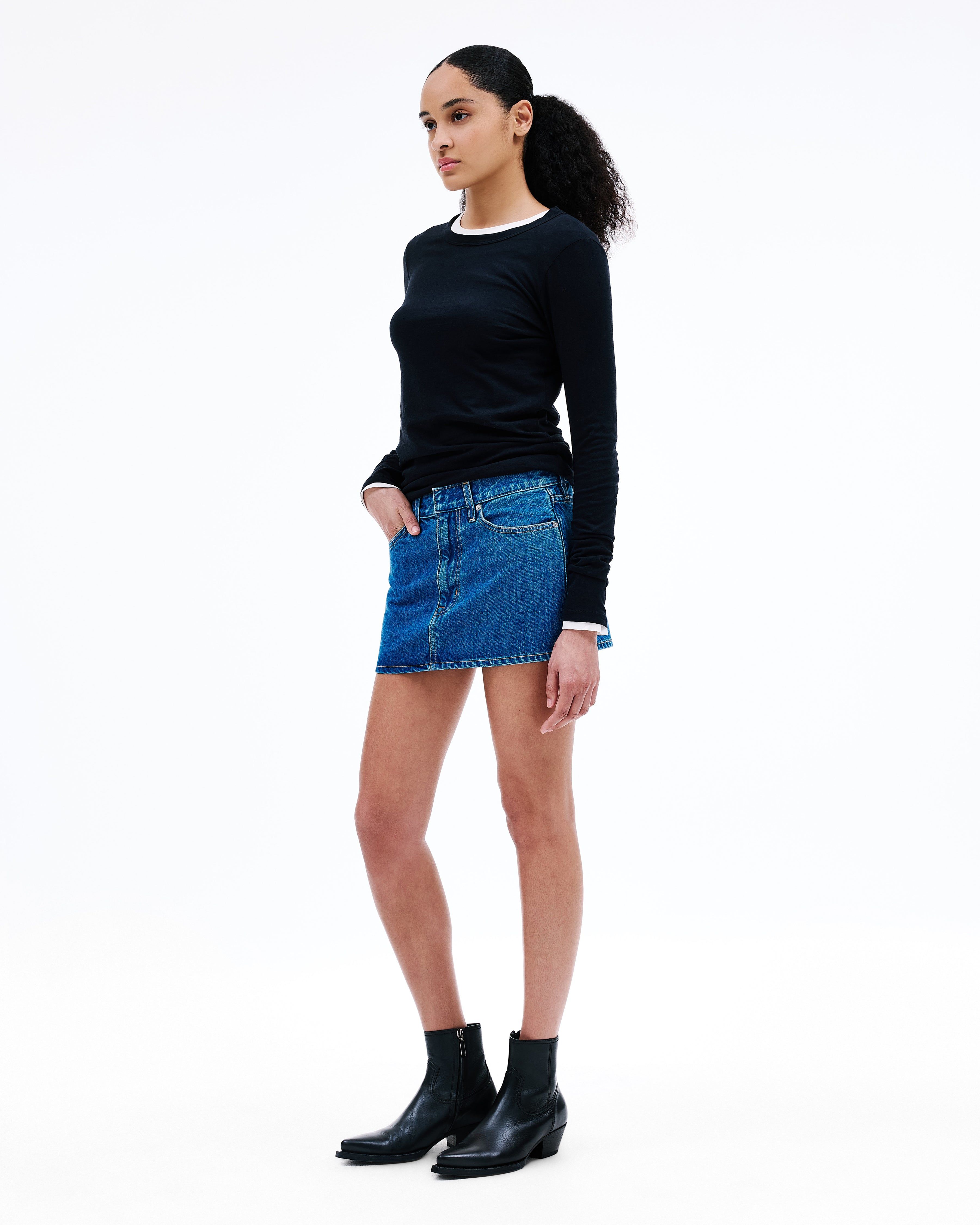 Micro Mini skirt features a low rise, five pocket, and signature SLVRLAKE hardware in brushed antique nickel. Crafted from a luxuriously soft pure cotton fabric. Quality and craftsmanship are at the heart of SLVRLAKE.