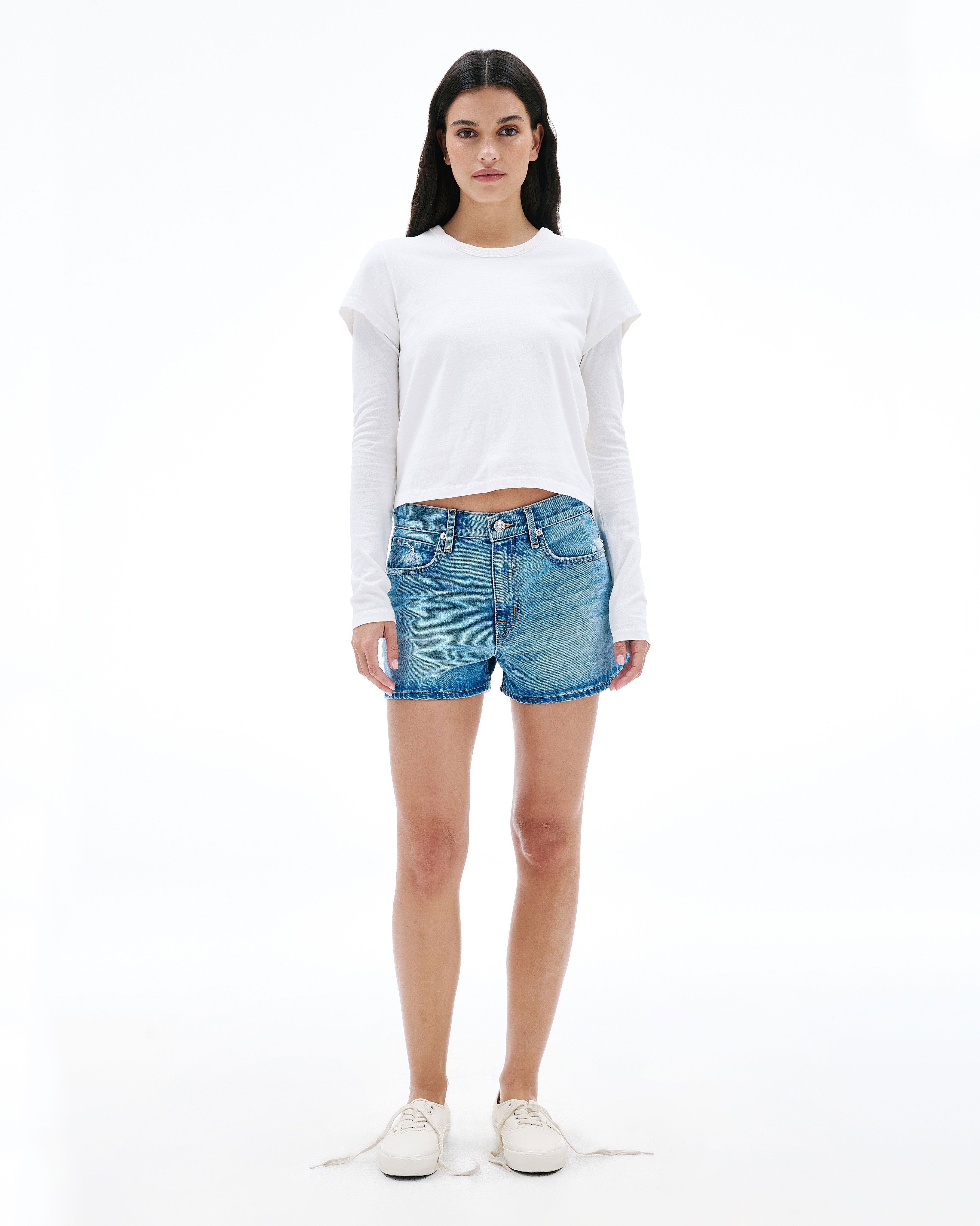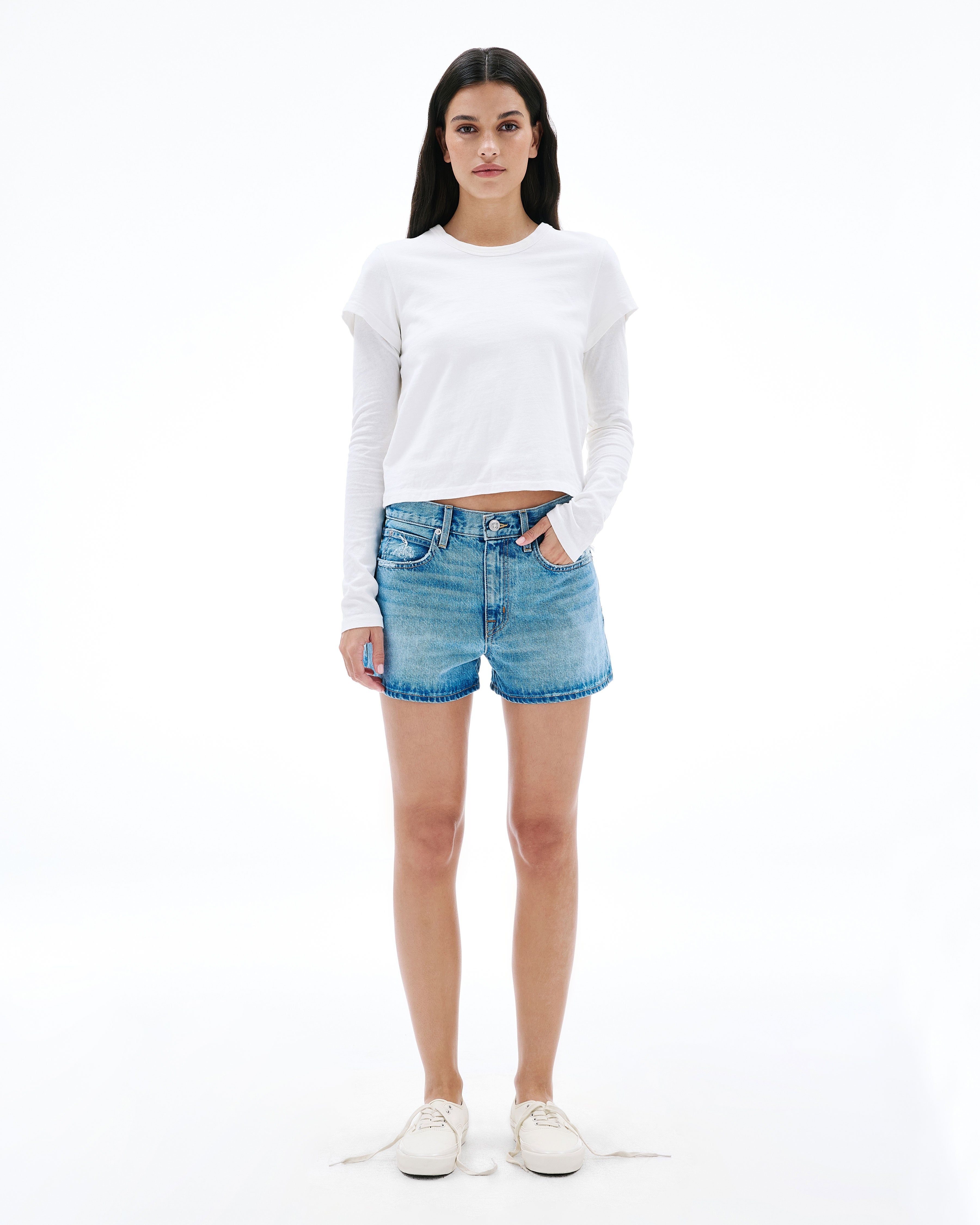 Mila Short is a classic mini style, featuring a mid-rise waist and offering a timeless, relaxed feel.