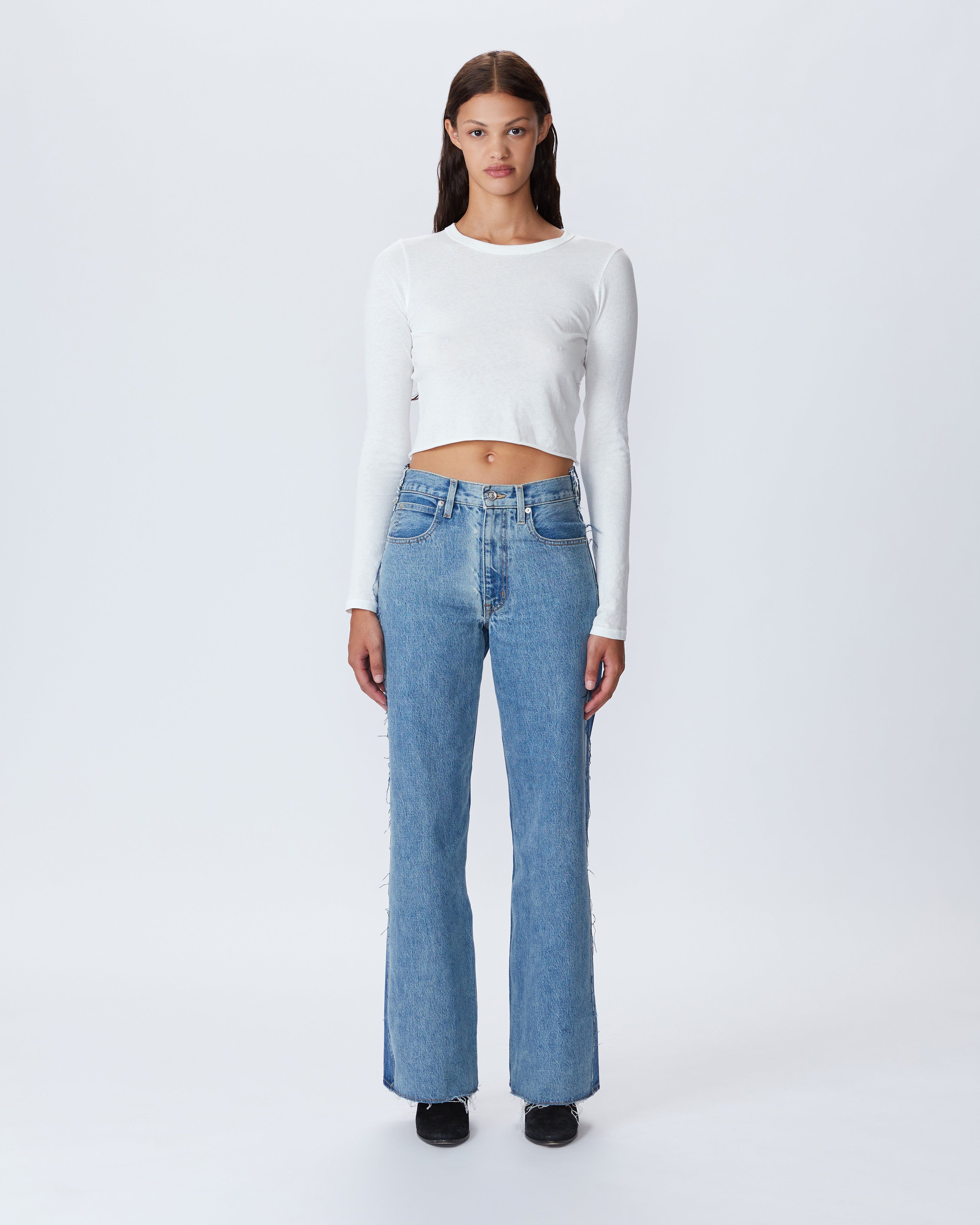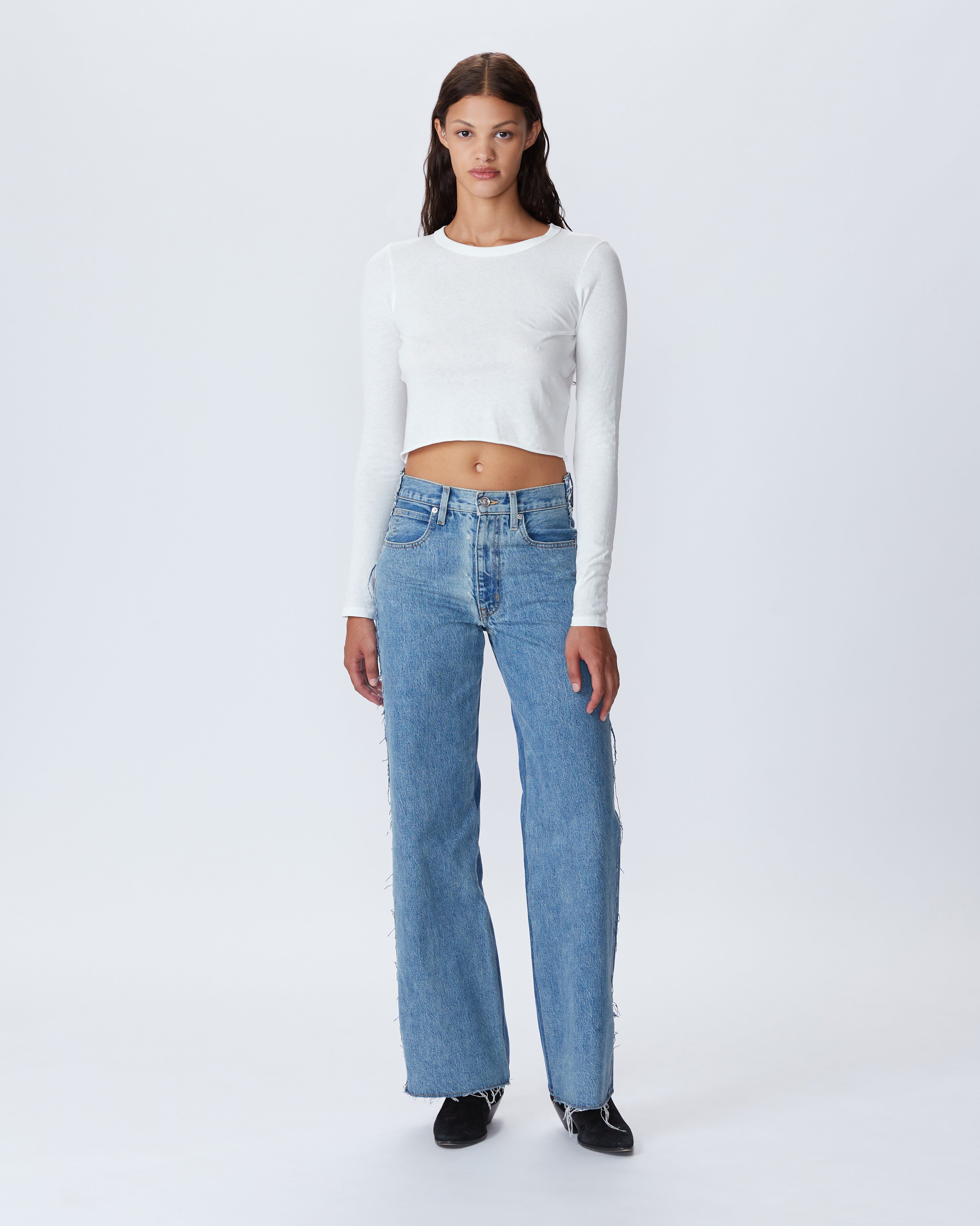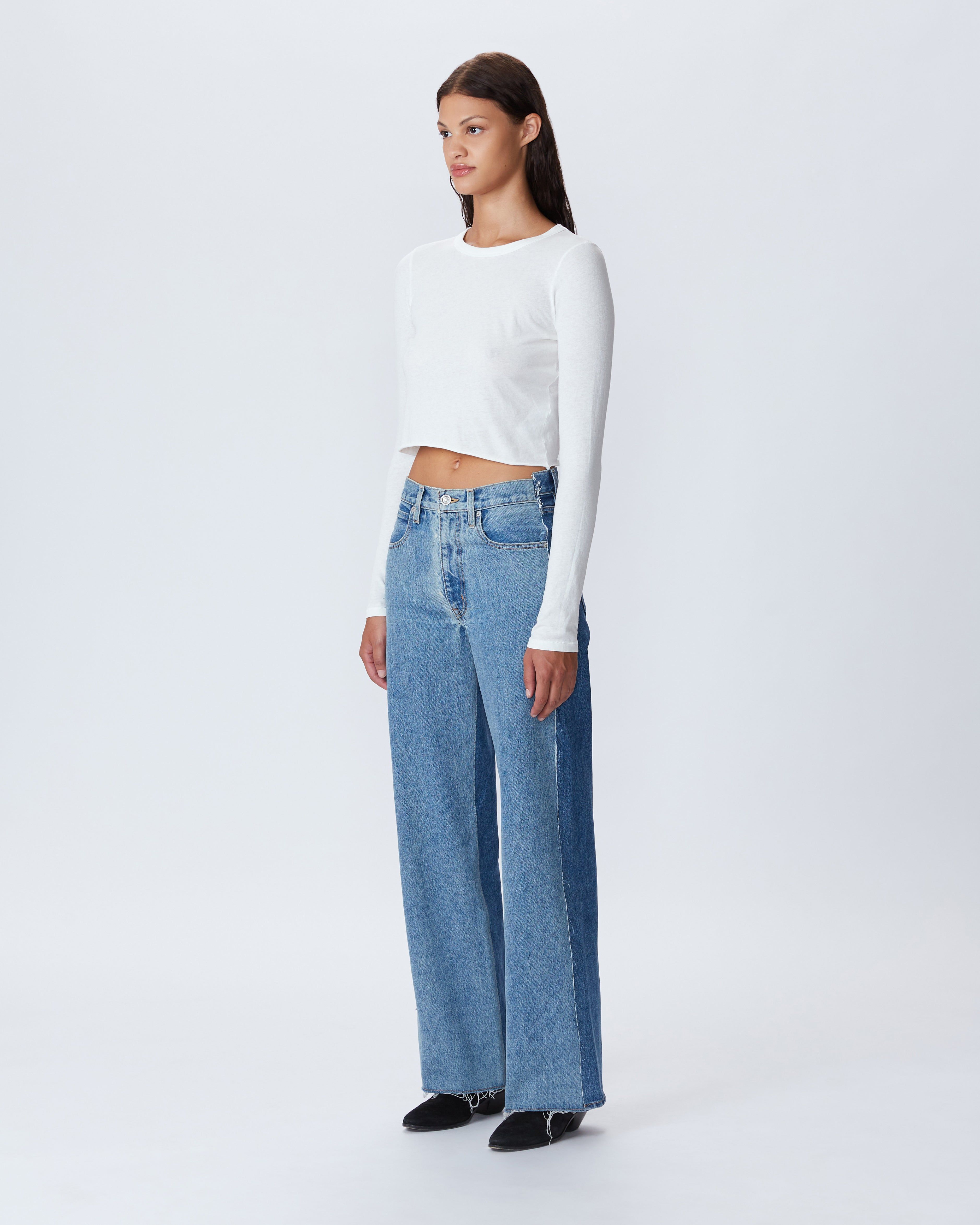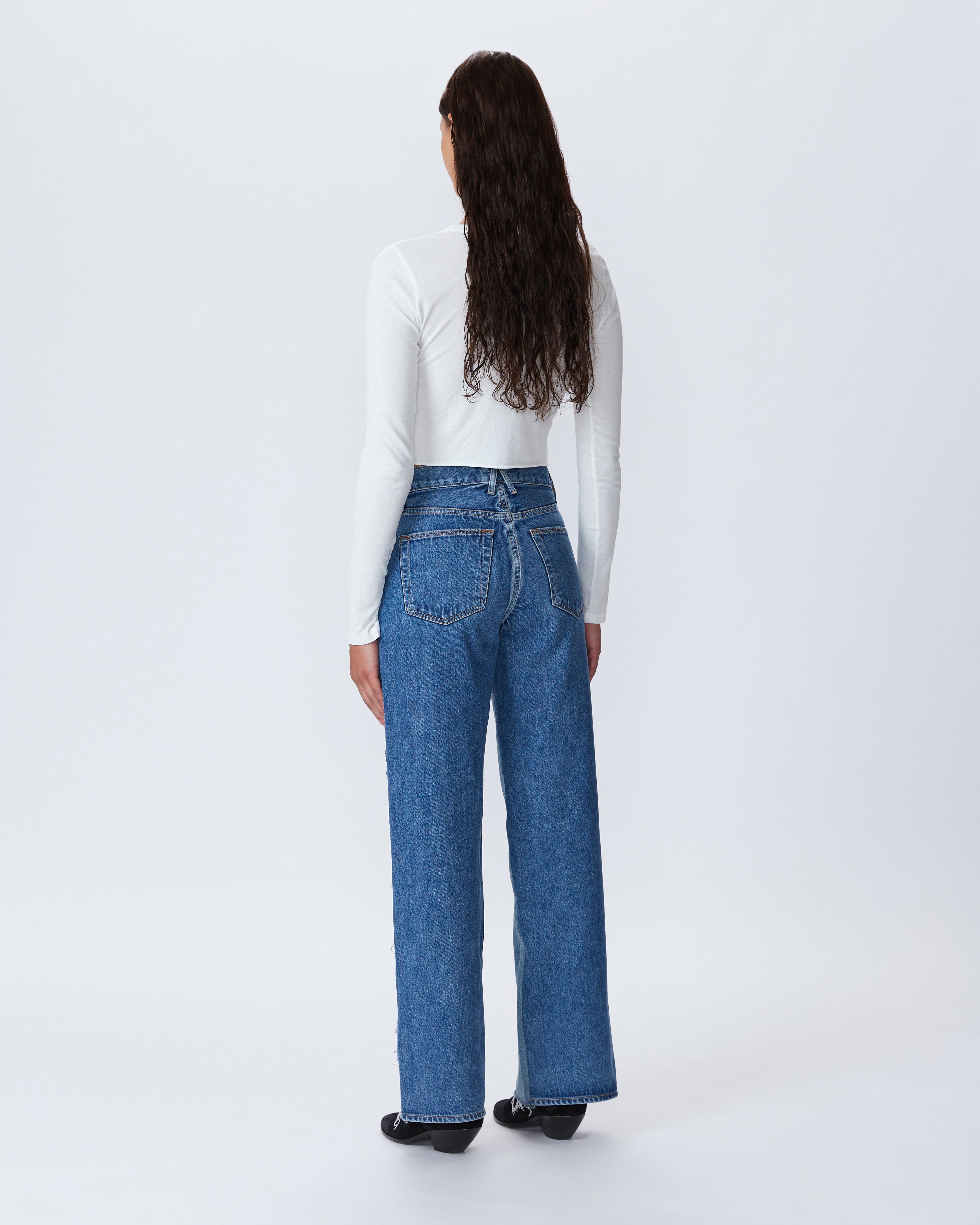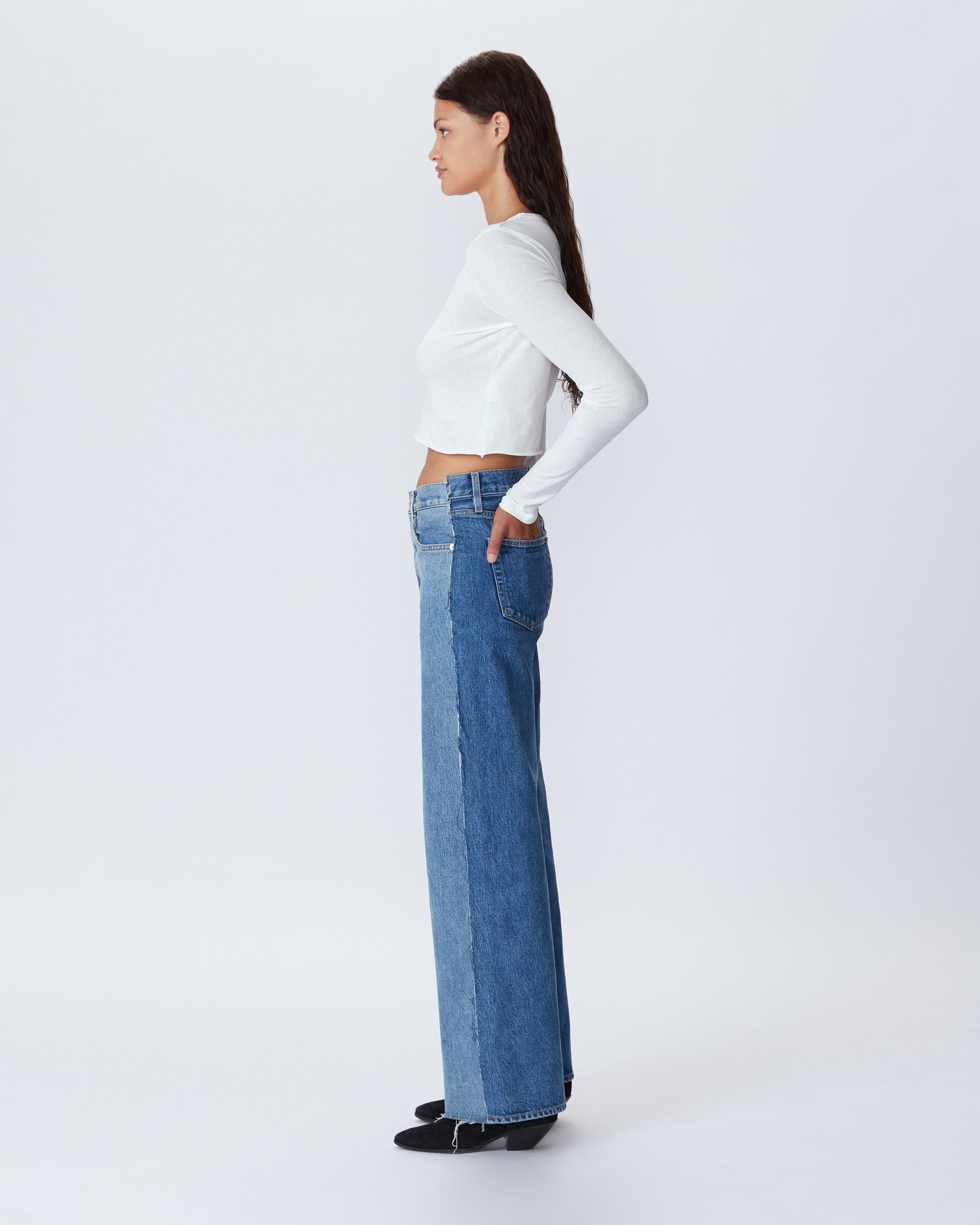 Re-Work Panel Grace is a signature style designed to elongate the leg with a high-rise waist and a playful wide-leg silhouette featured in reworked two paneled denim.