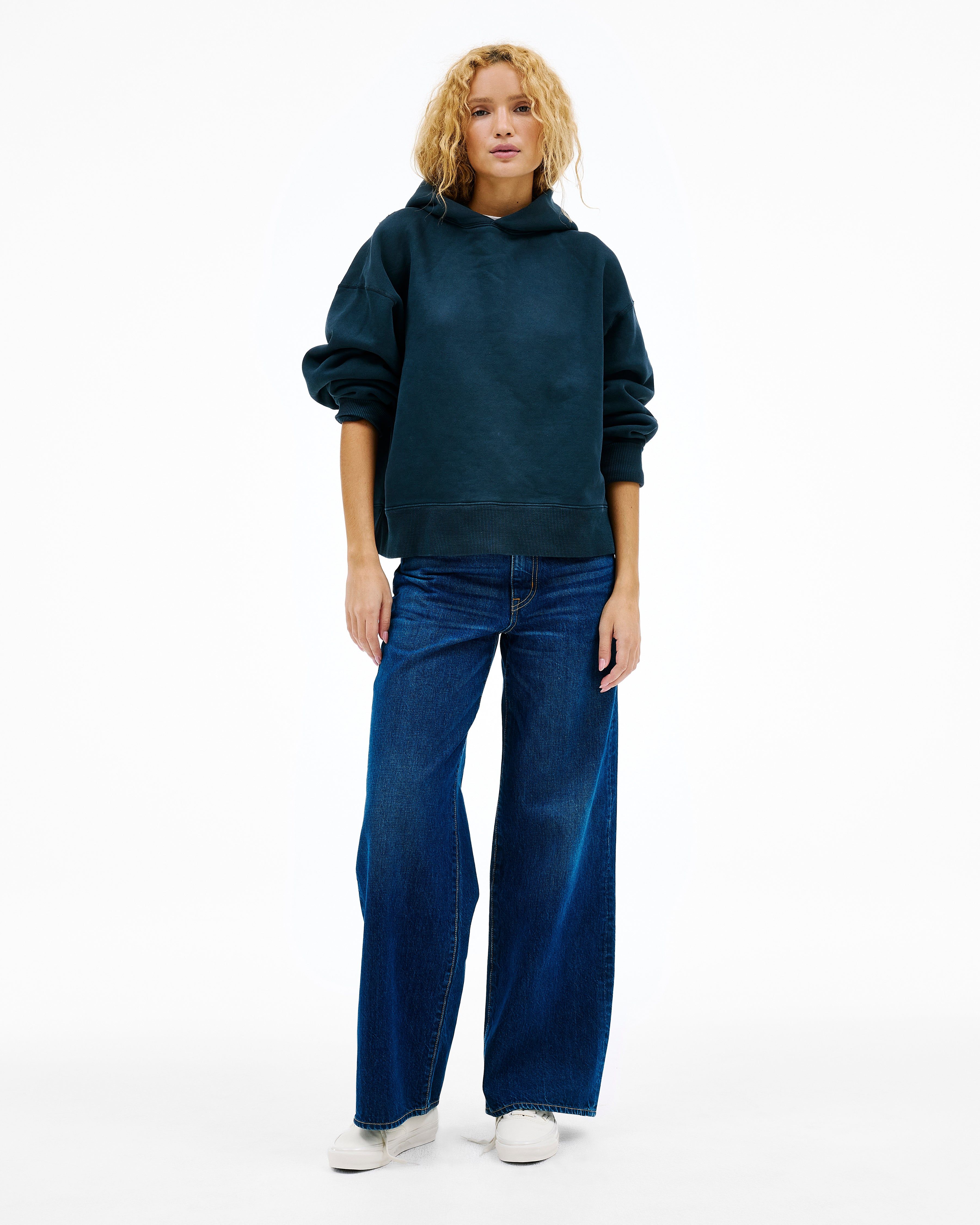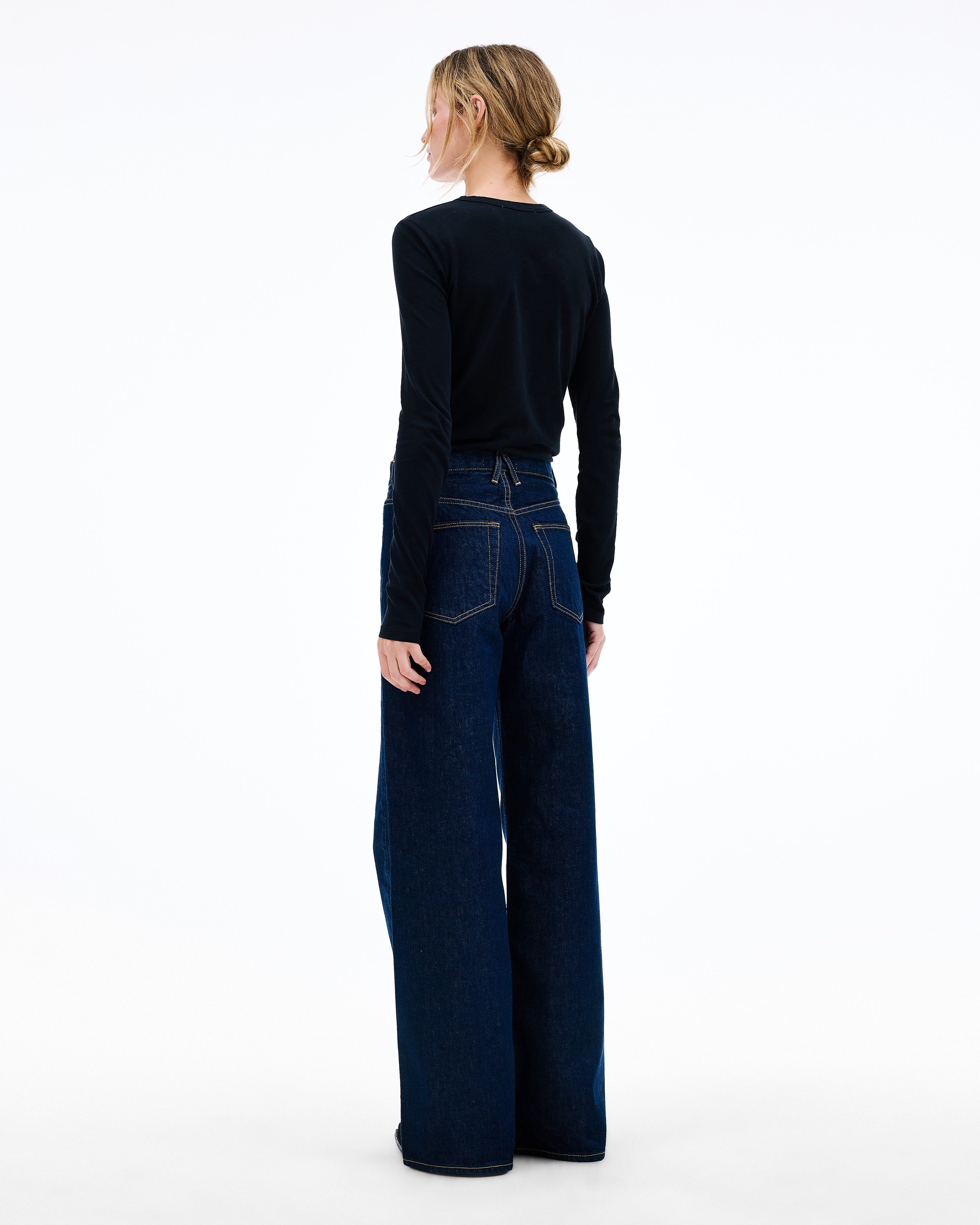 Selena features a relaxed silhouette with a mid-rise waist and wide-leg design, combining effortless comfort with a refined look.