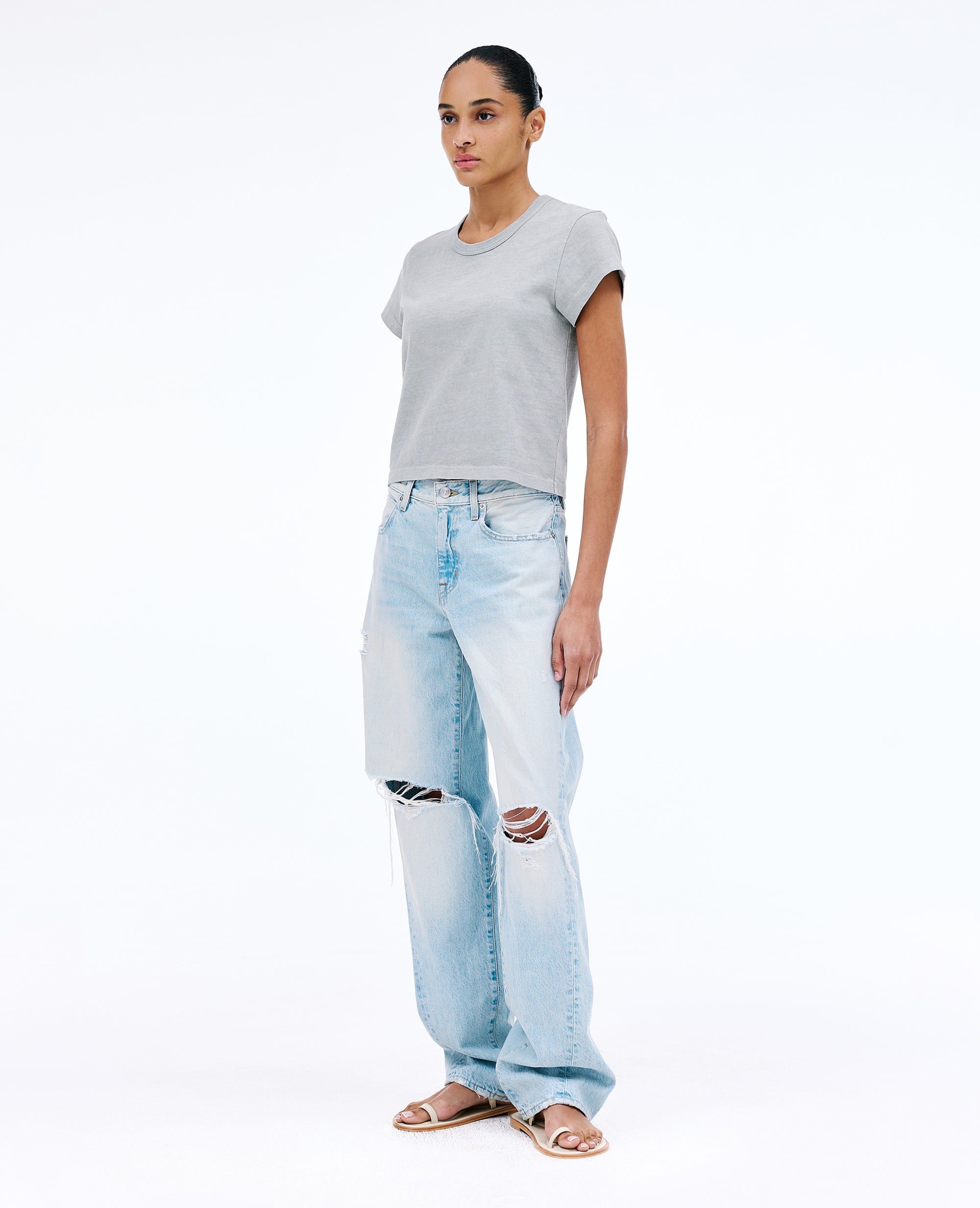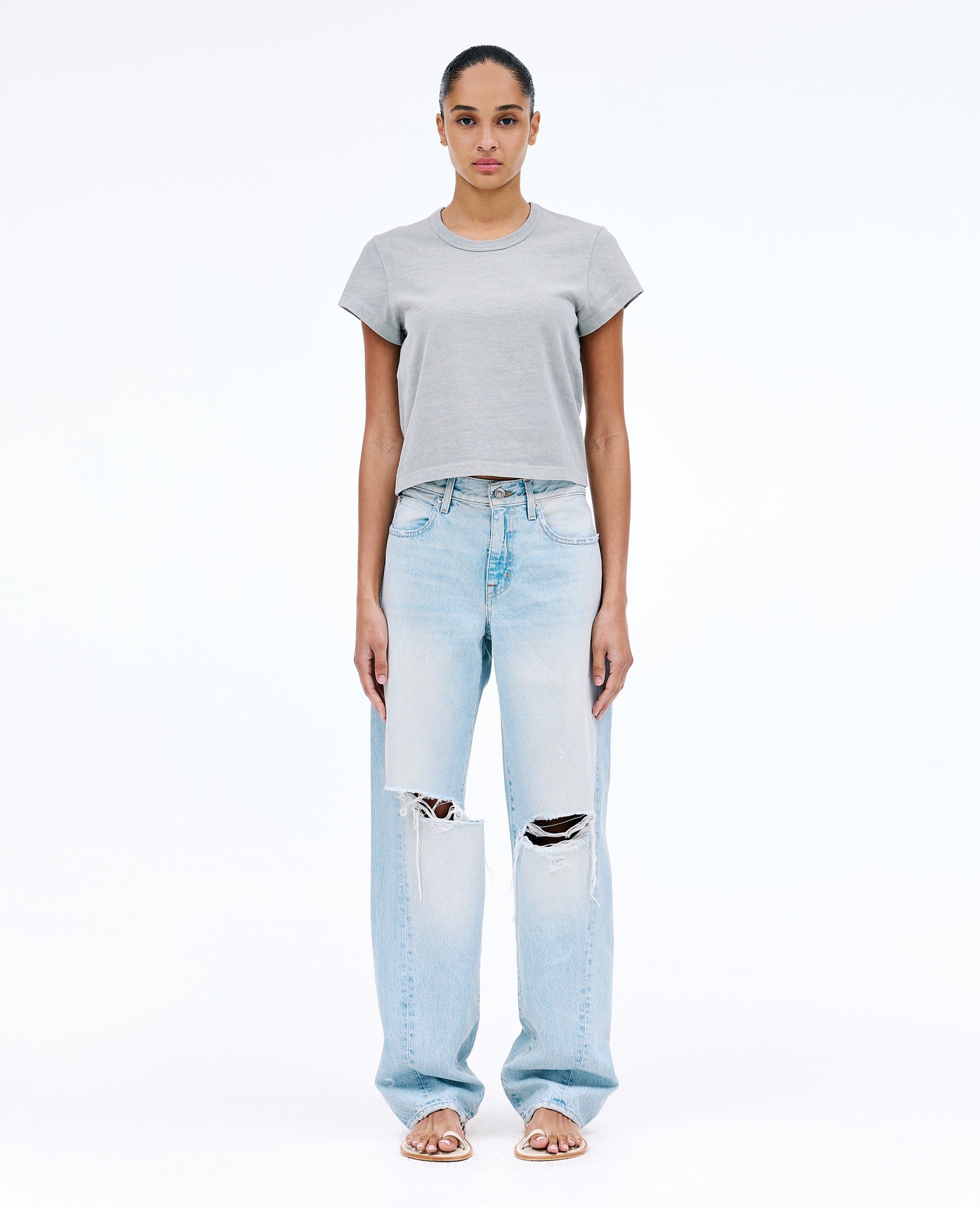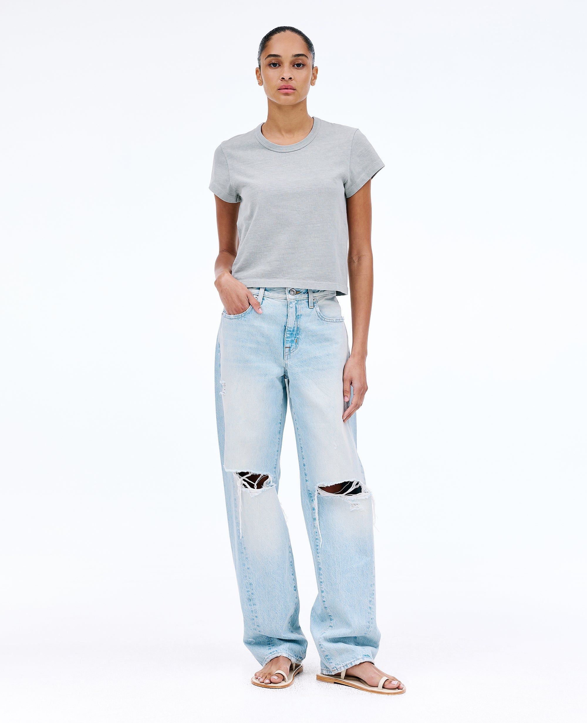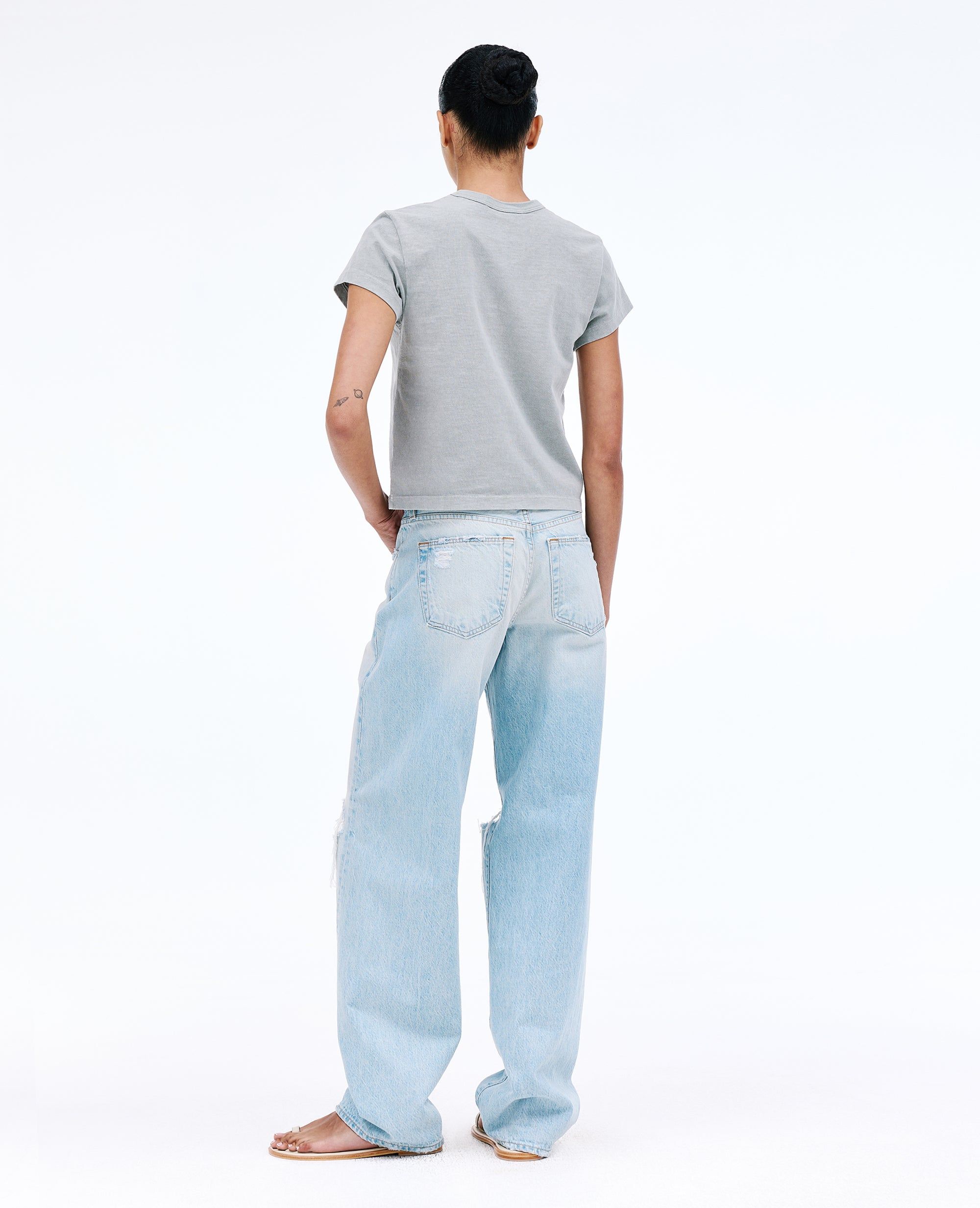 Heartbreak Hotel wash is is made from 100% rigid cotton and features a powdery blue stone wash and distressed knee rips for a vintage inspired finish.