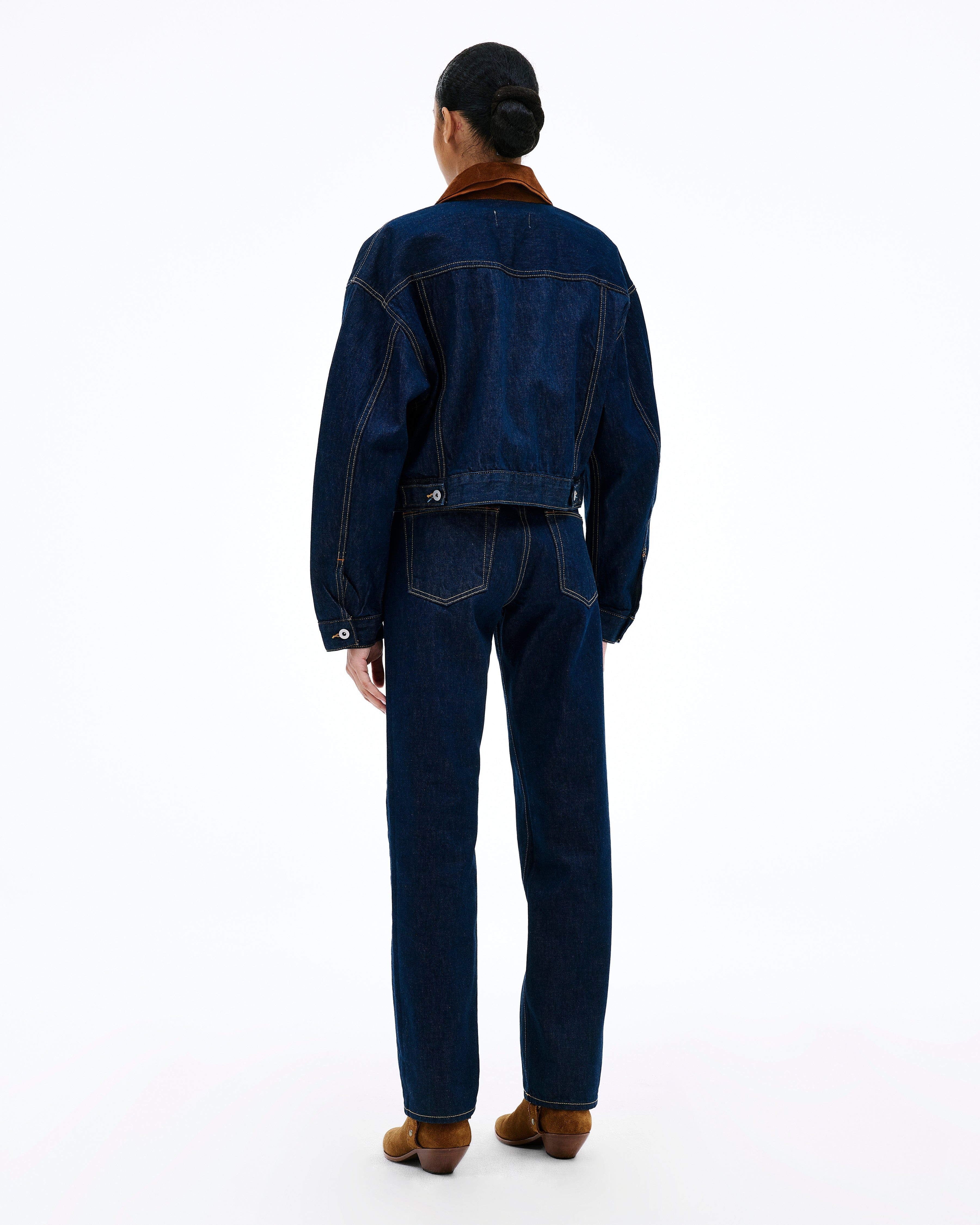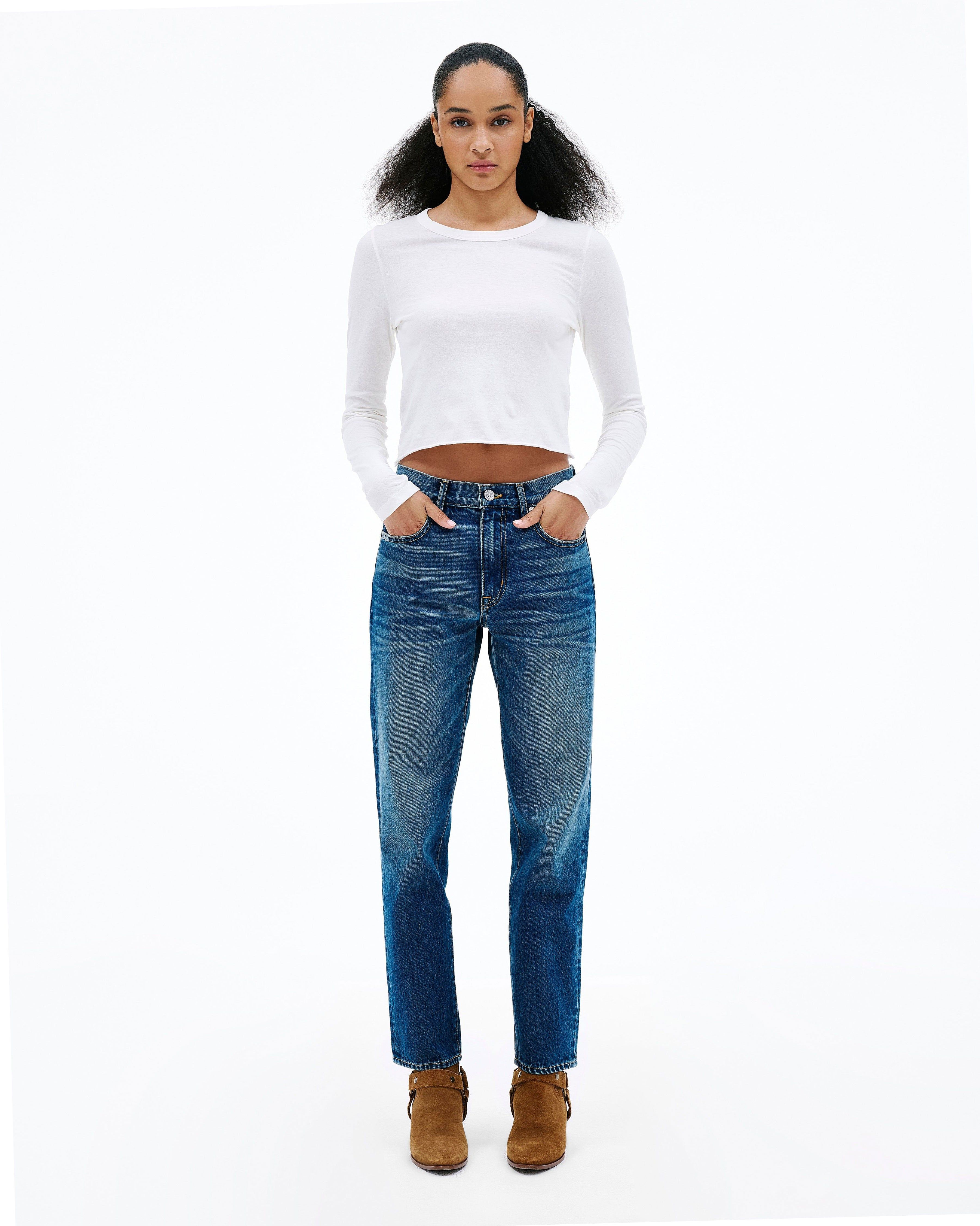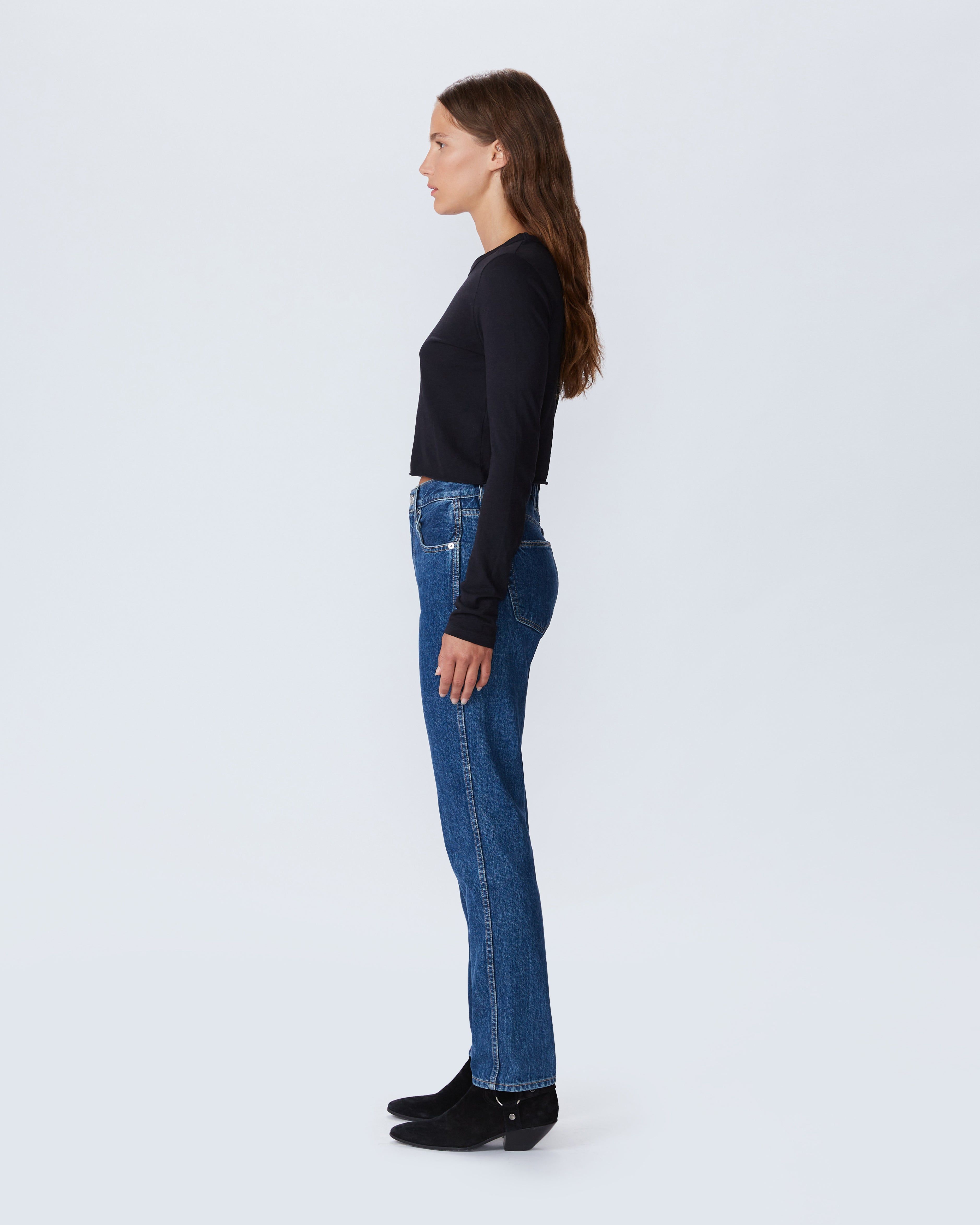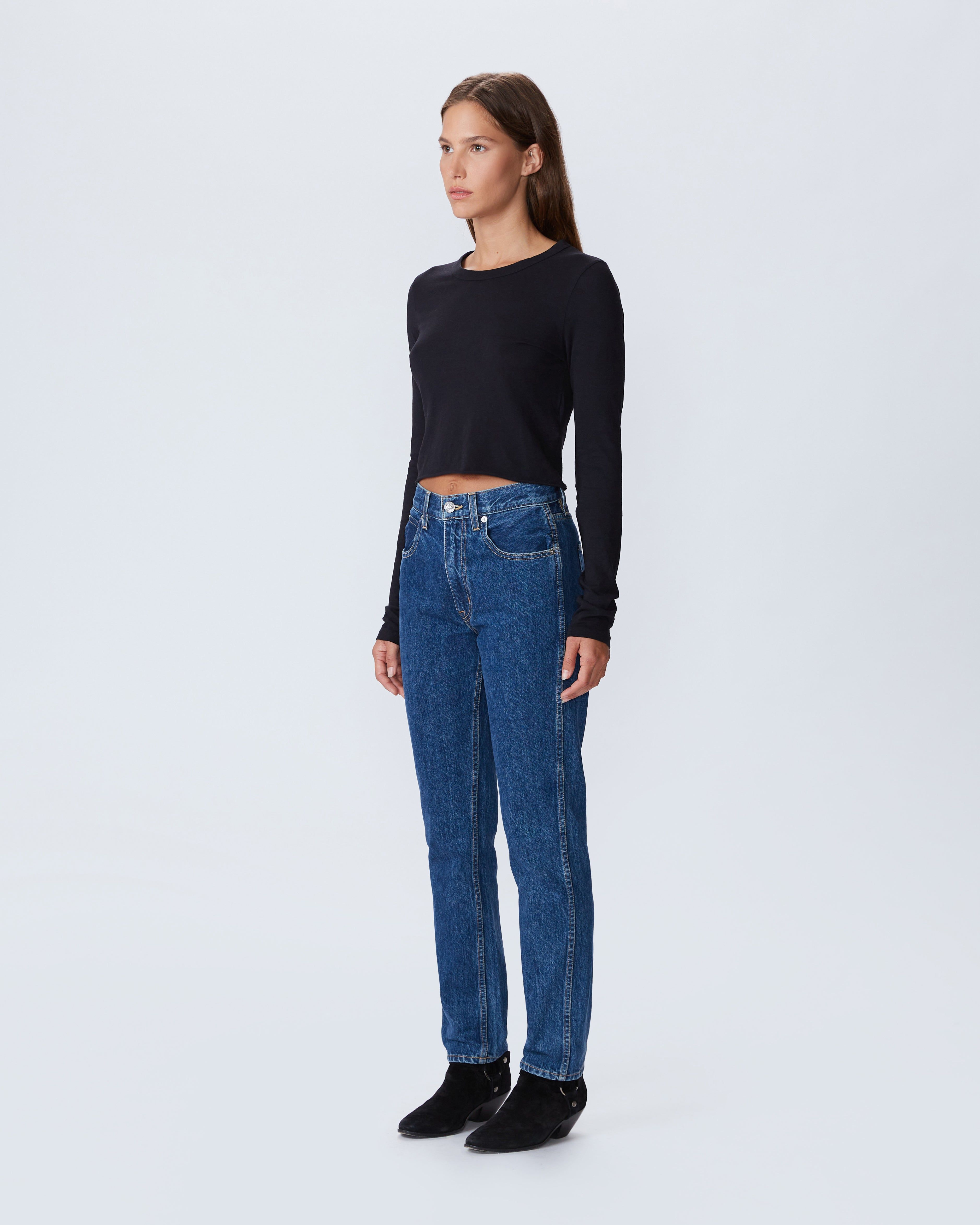 The Virginia Slim features a high rise, slim fit, and double topstitched inseam and outseam. Offering a sleek, cigarette silhouette for a modern, timeless look.