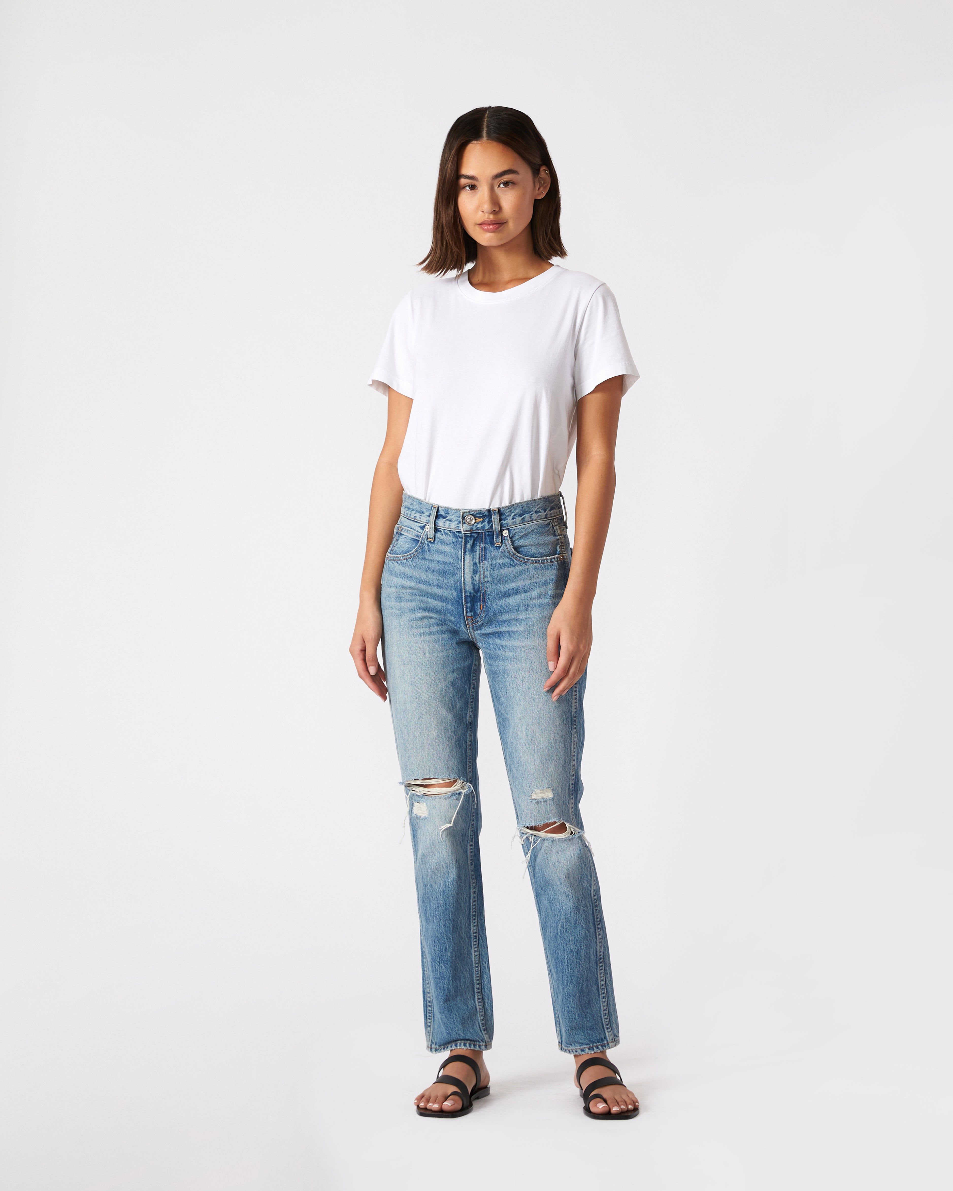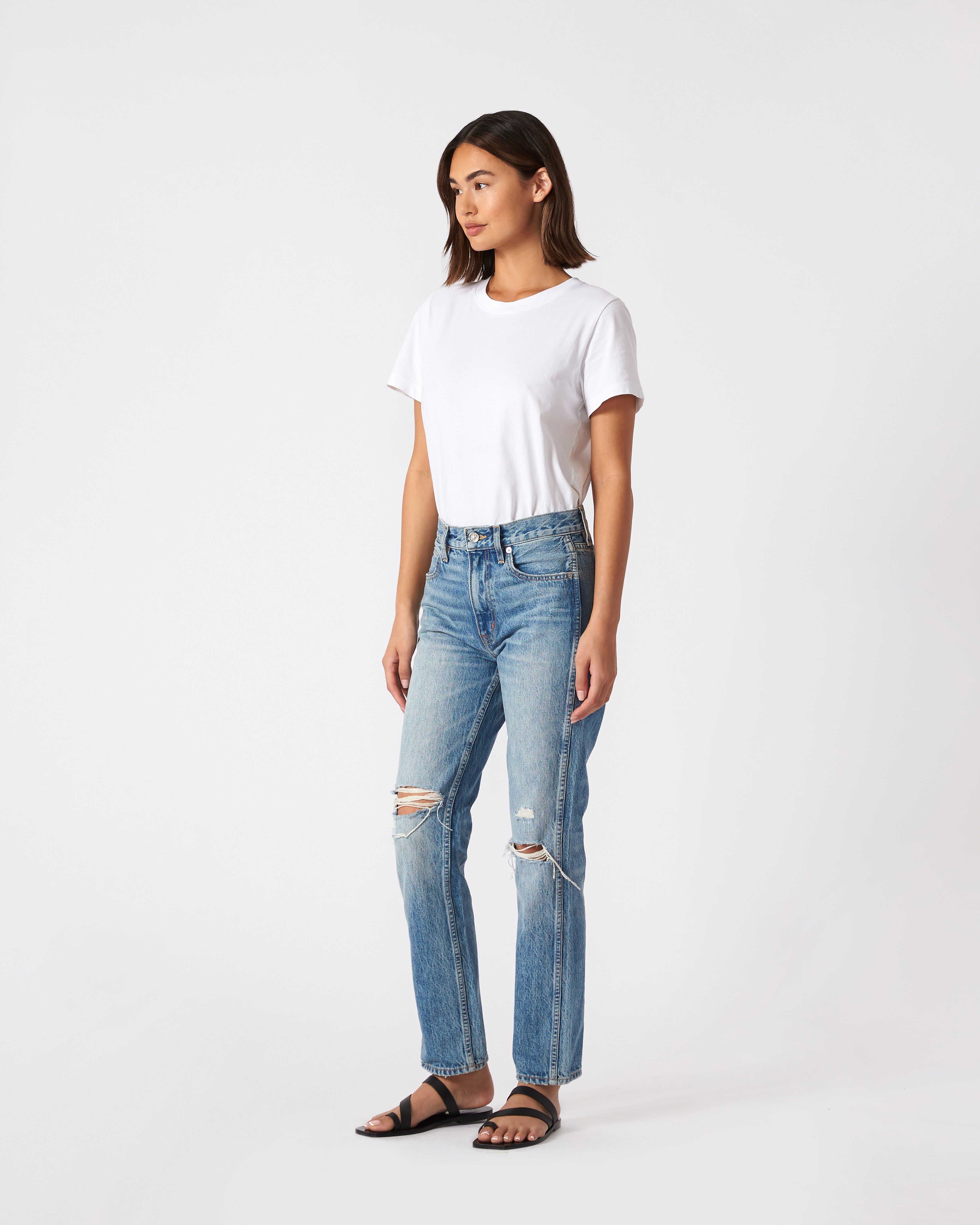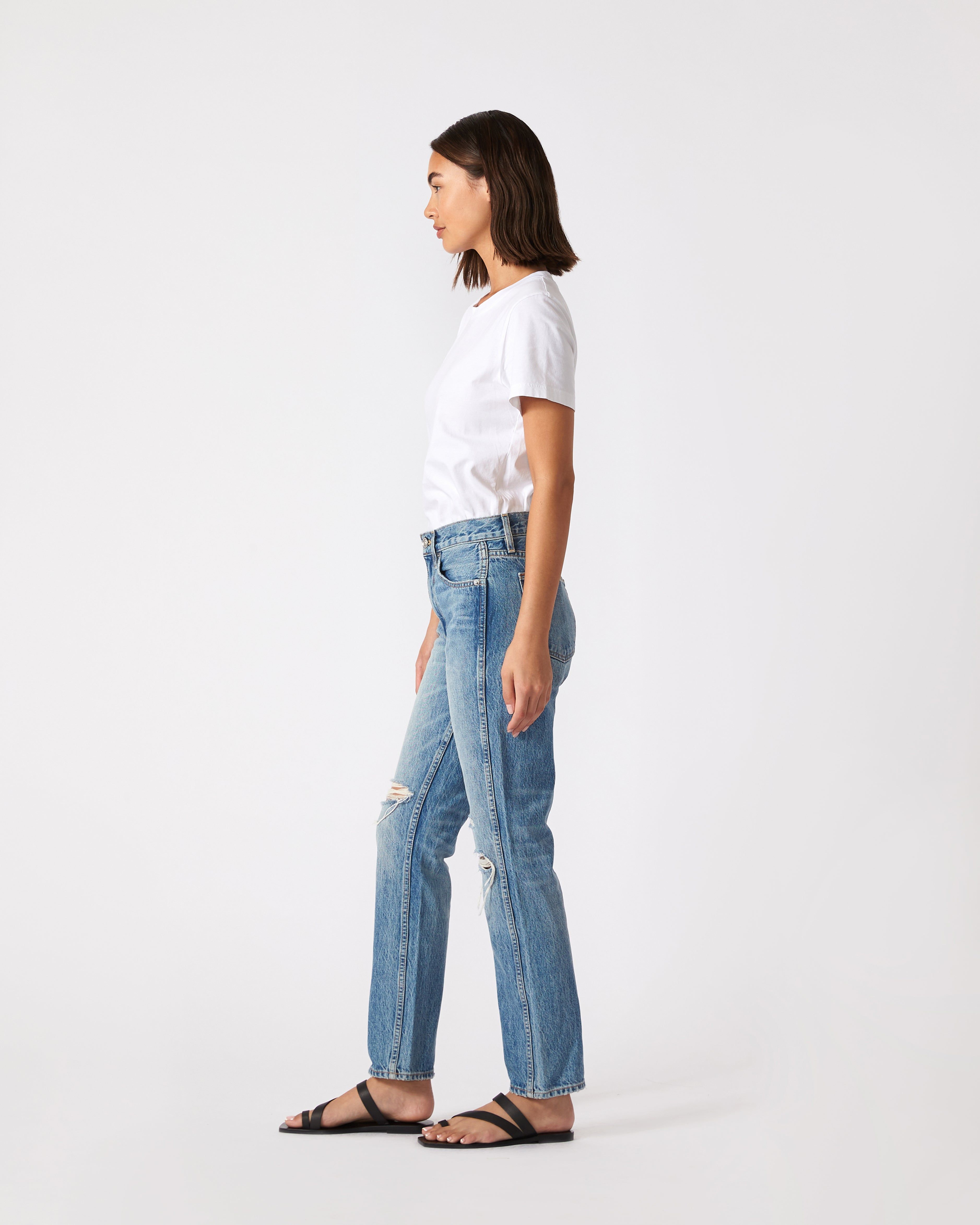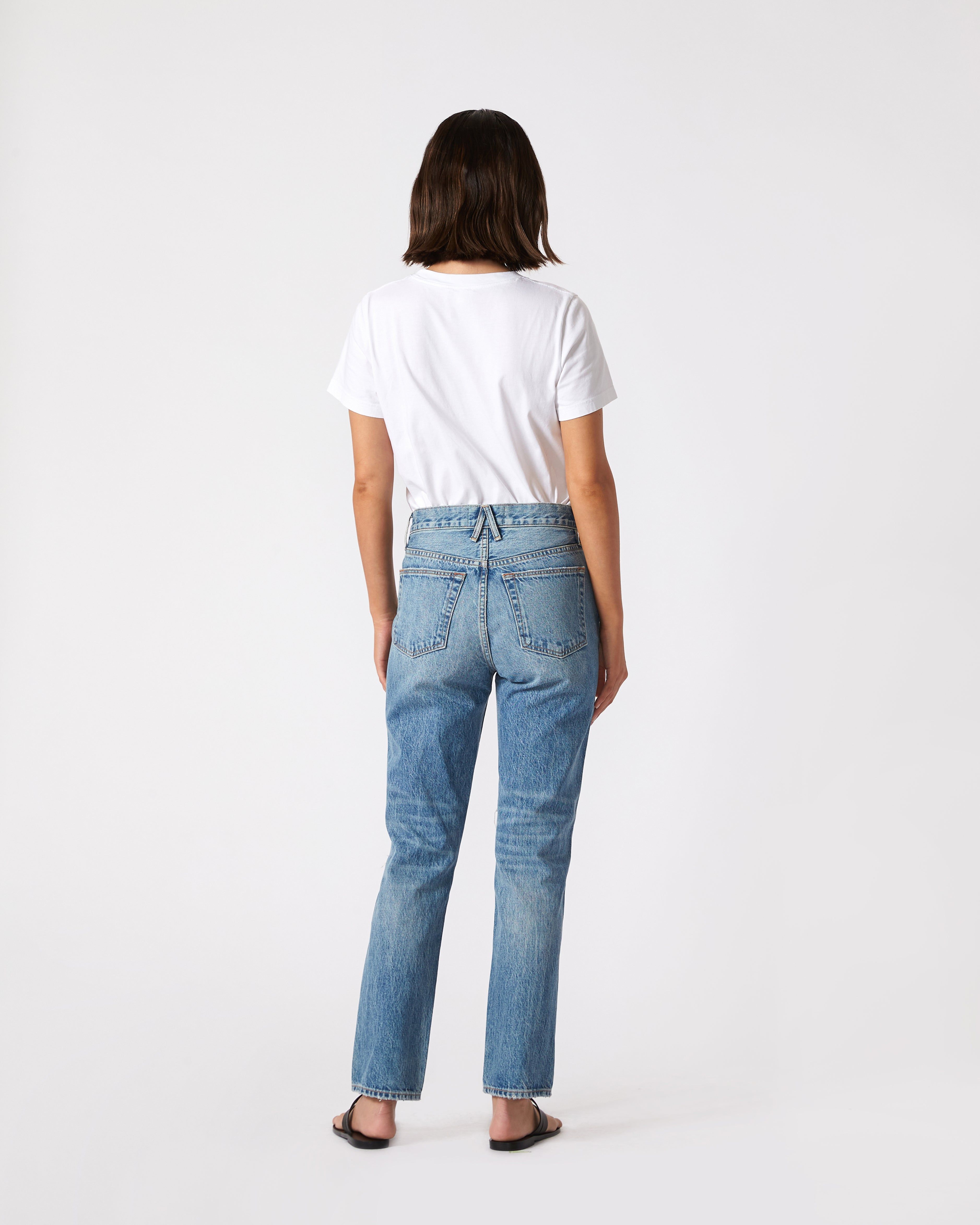 The Virginia Slim features a high rise, slim fit, and double topstitched inseam and outseam. Offering a sleek, cigarette silhouette for a modern, timeless look.