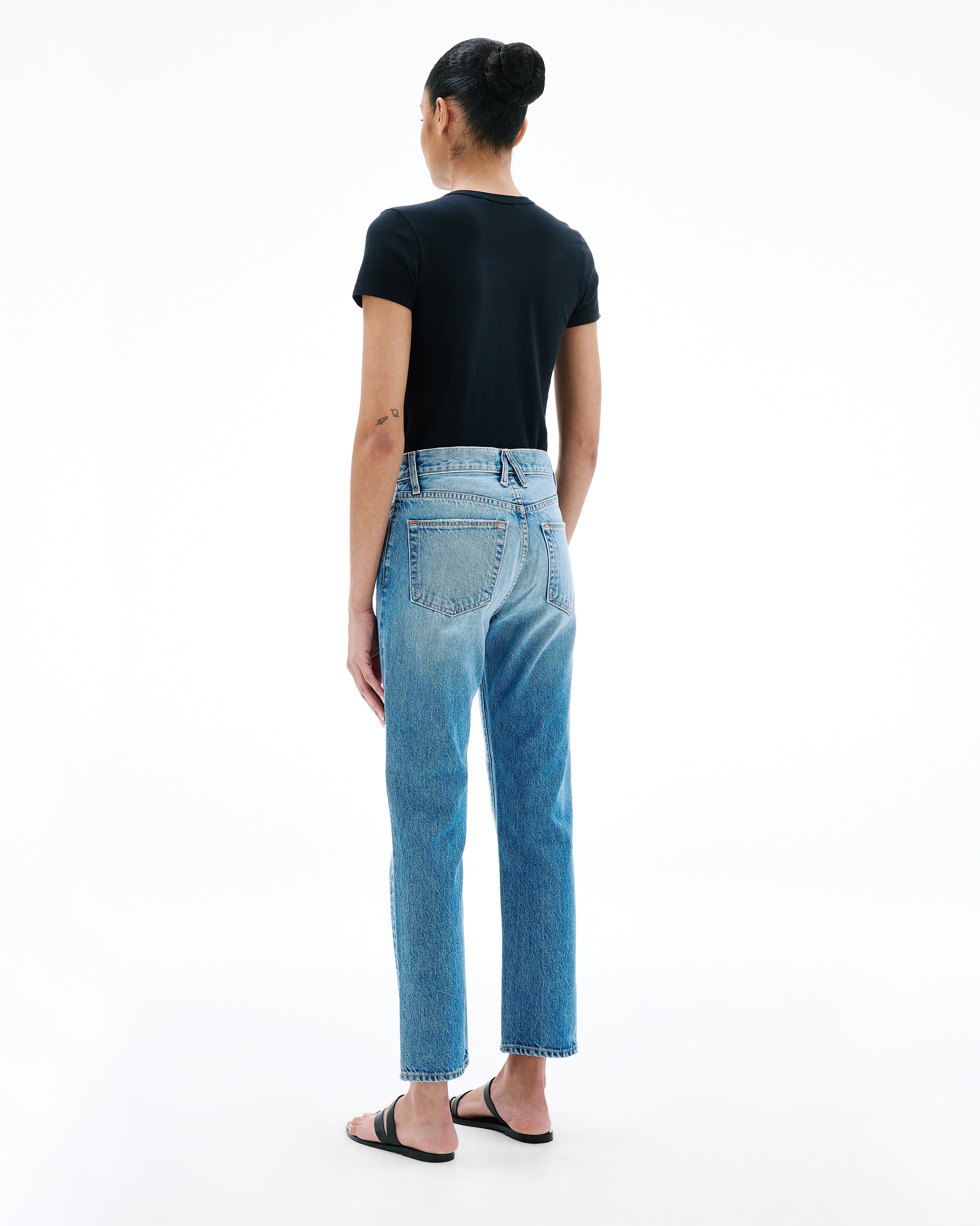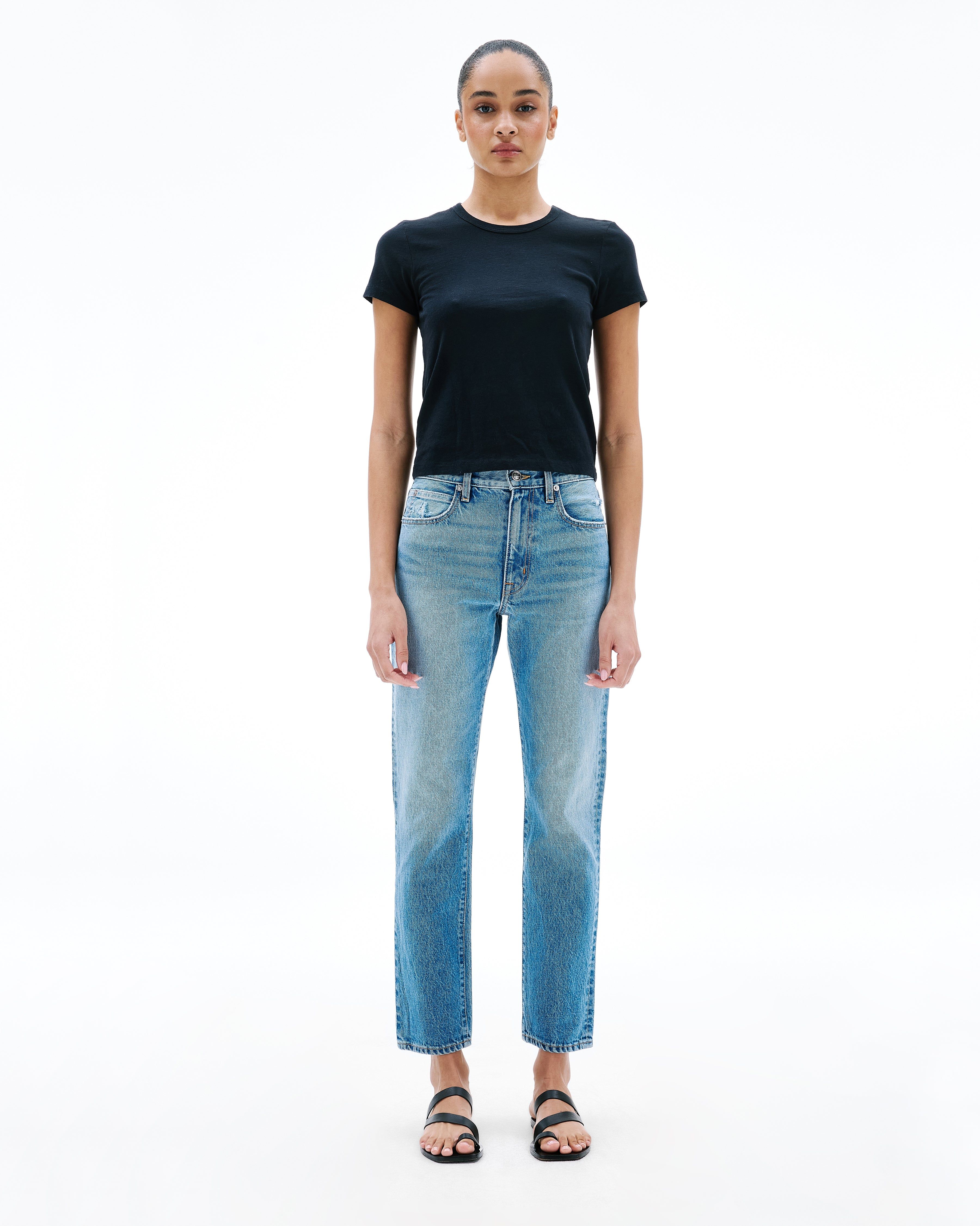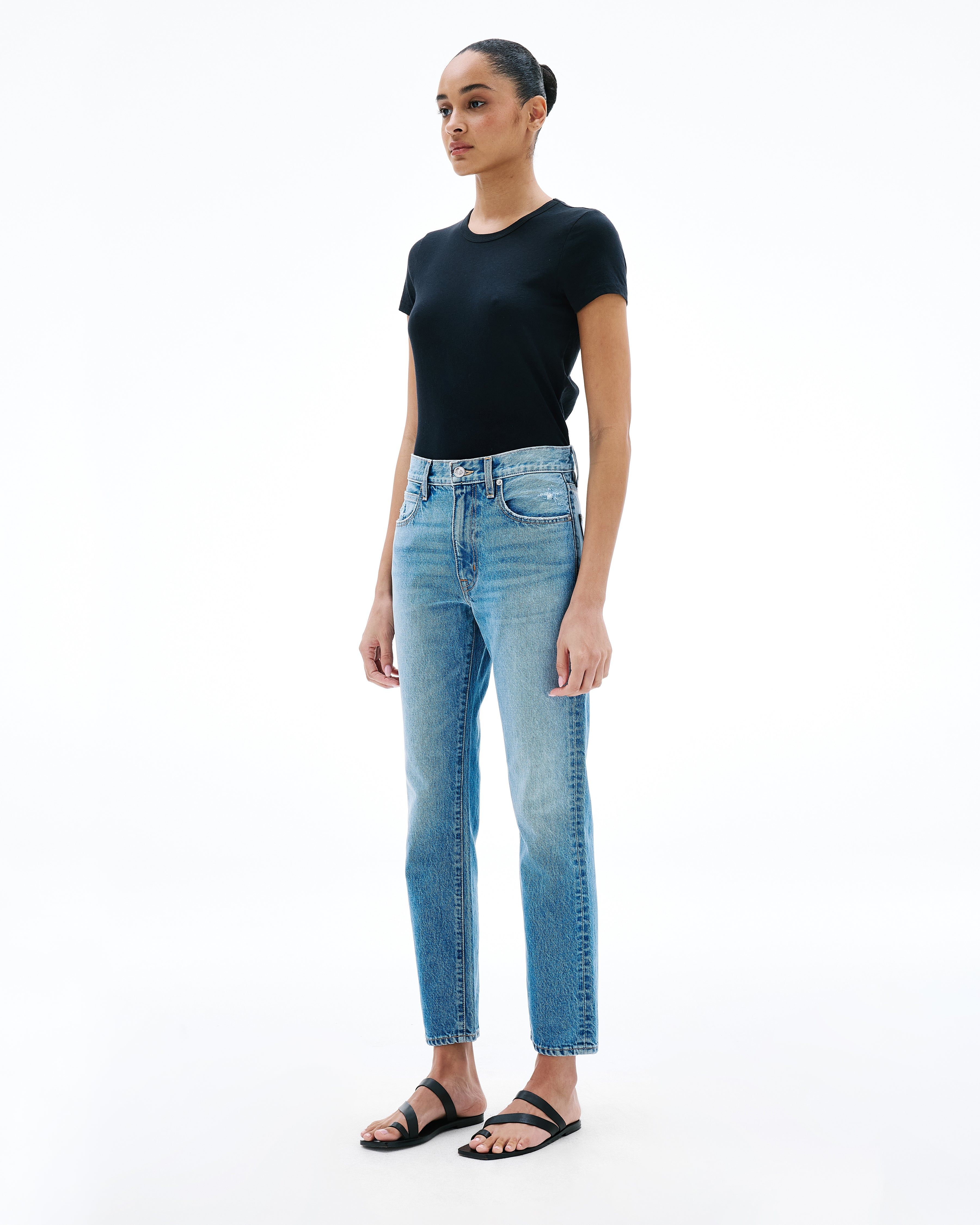 The Virginia Slim features a high rise, slim fit, and double topstitched inseam and outseam. Offering a sleek, cigarette silhouette for a modern, timeless look.