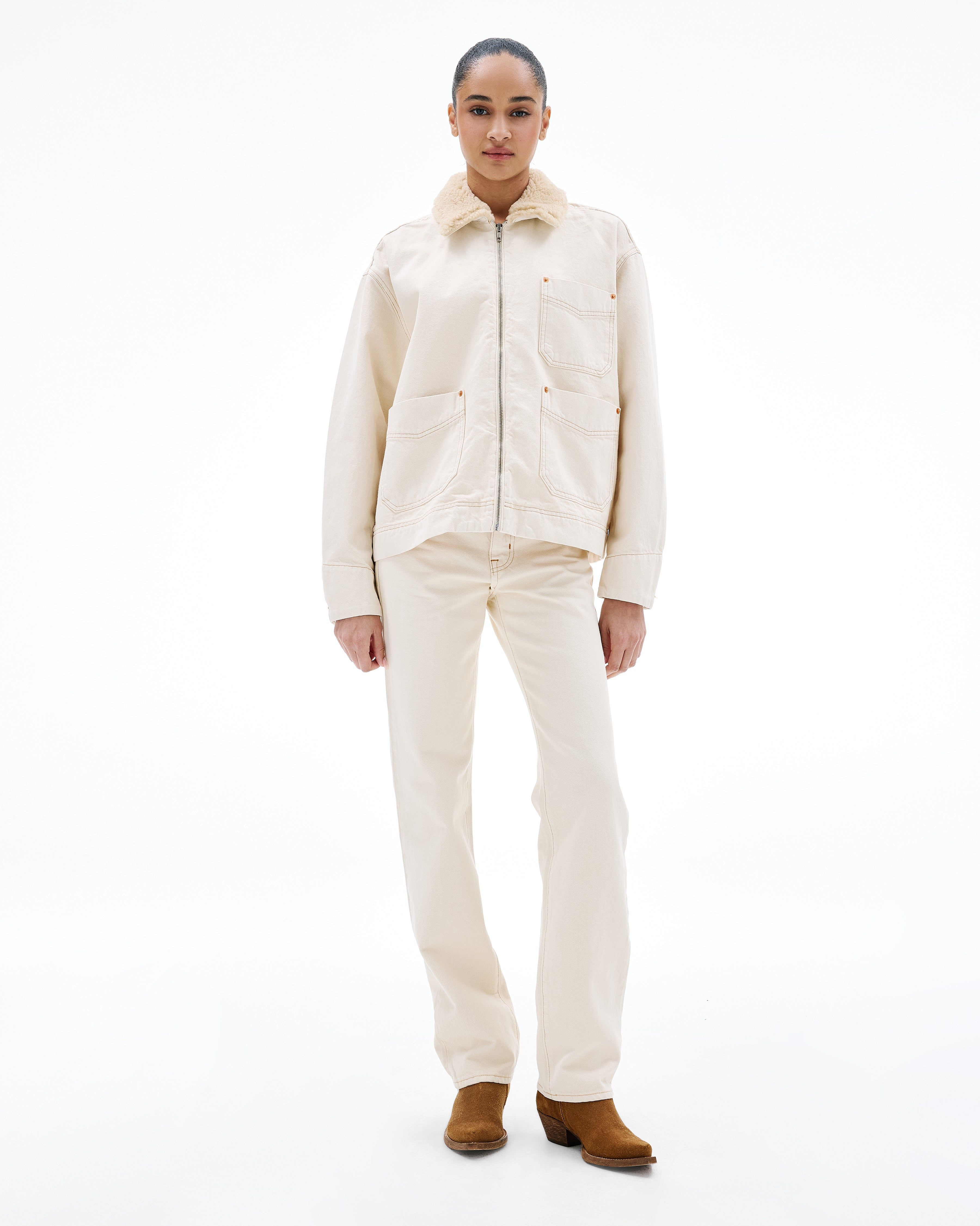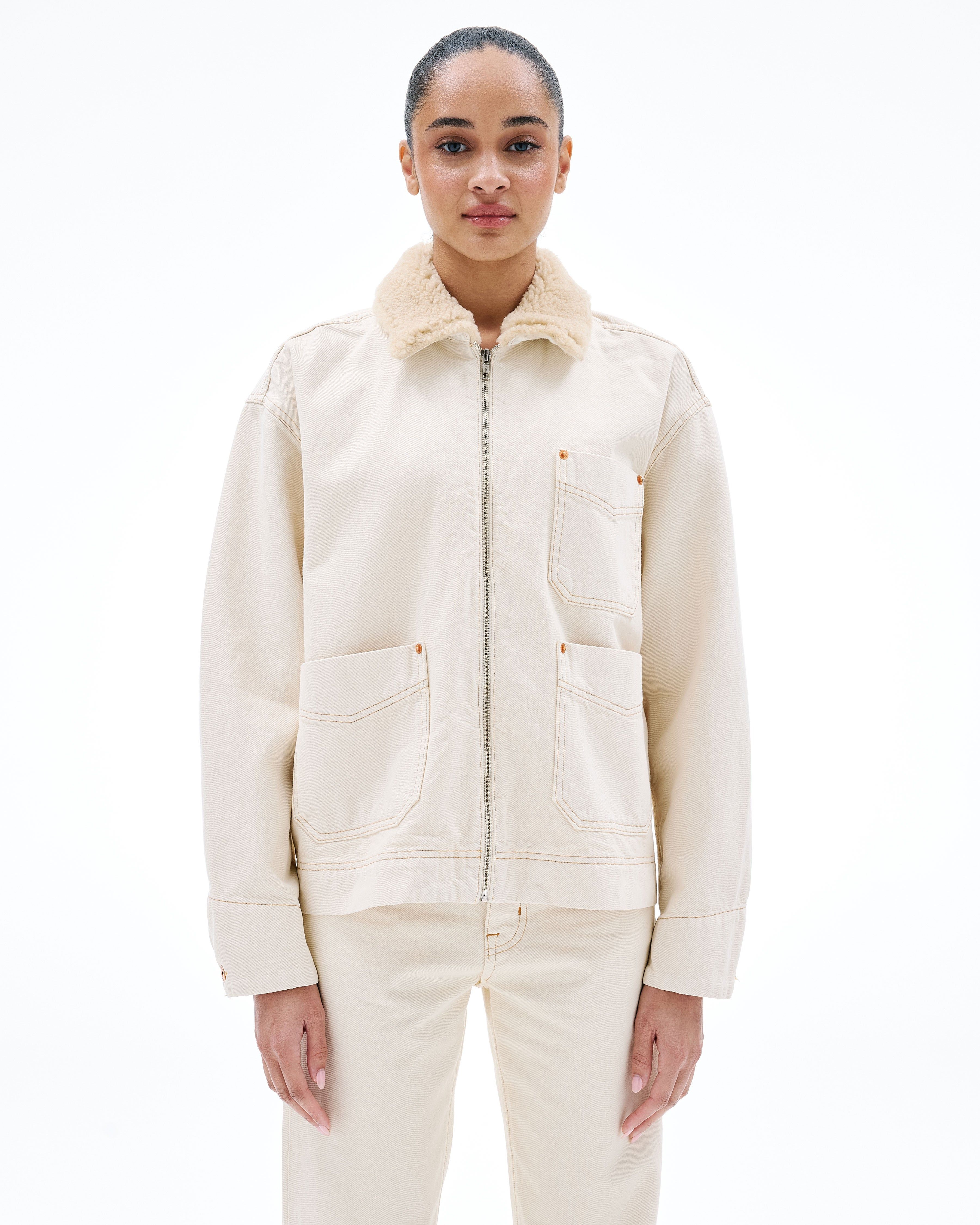 Worker Jacket is crafted from a 100% cotton fabric. This relaxed jacket is a reinterpretation of the French utilitarian classic. Elevated through patch pocket detail and contrast topstitch finished with burnt orange hardware.